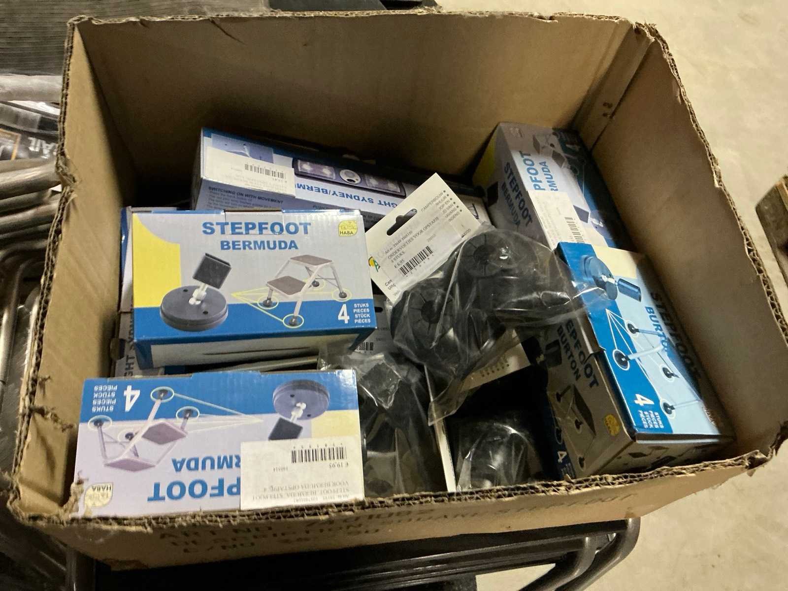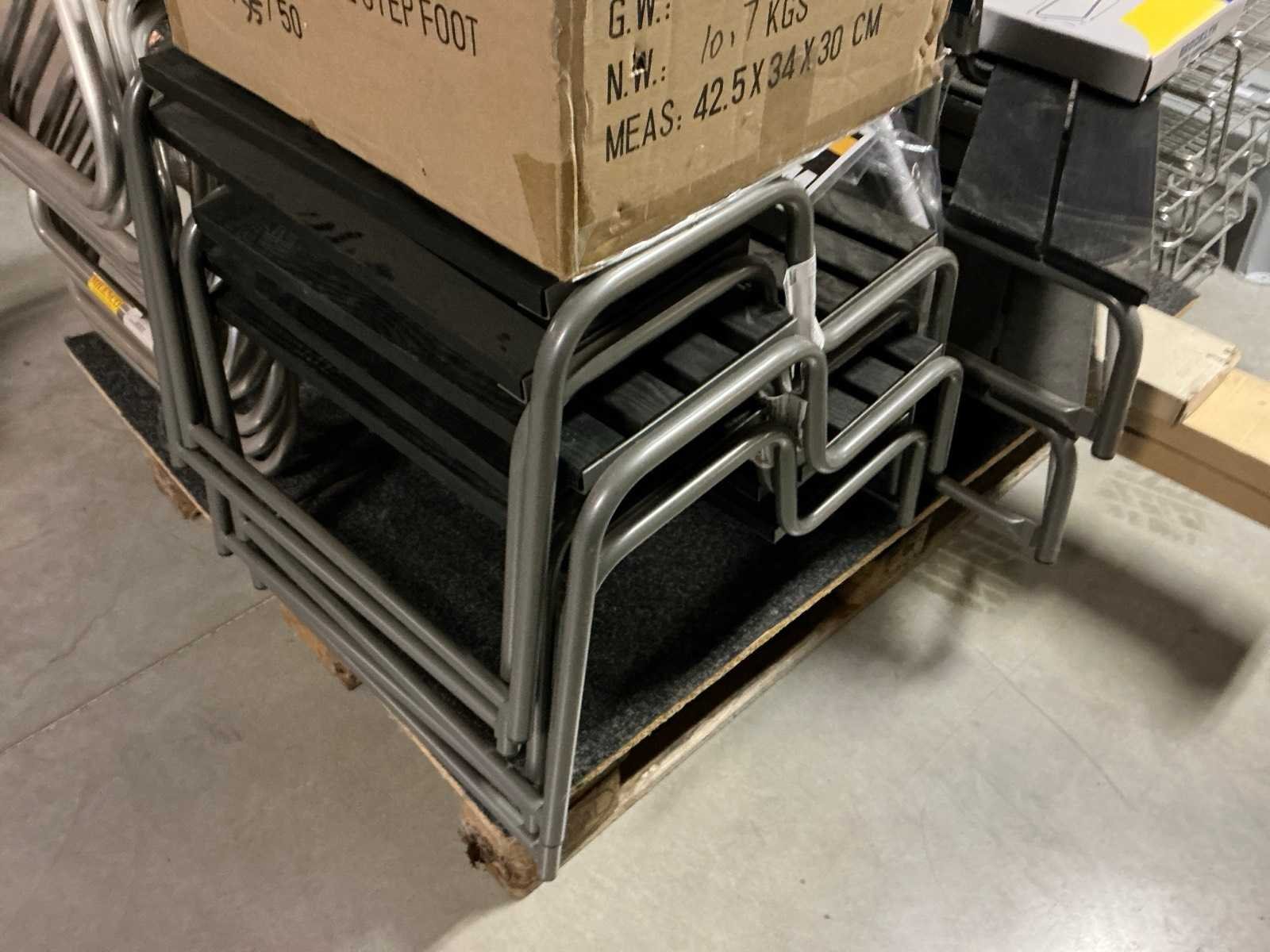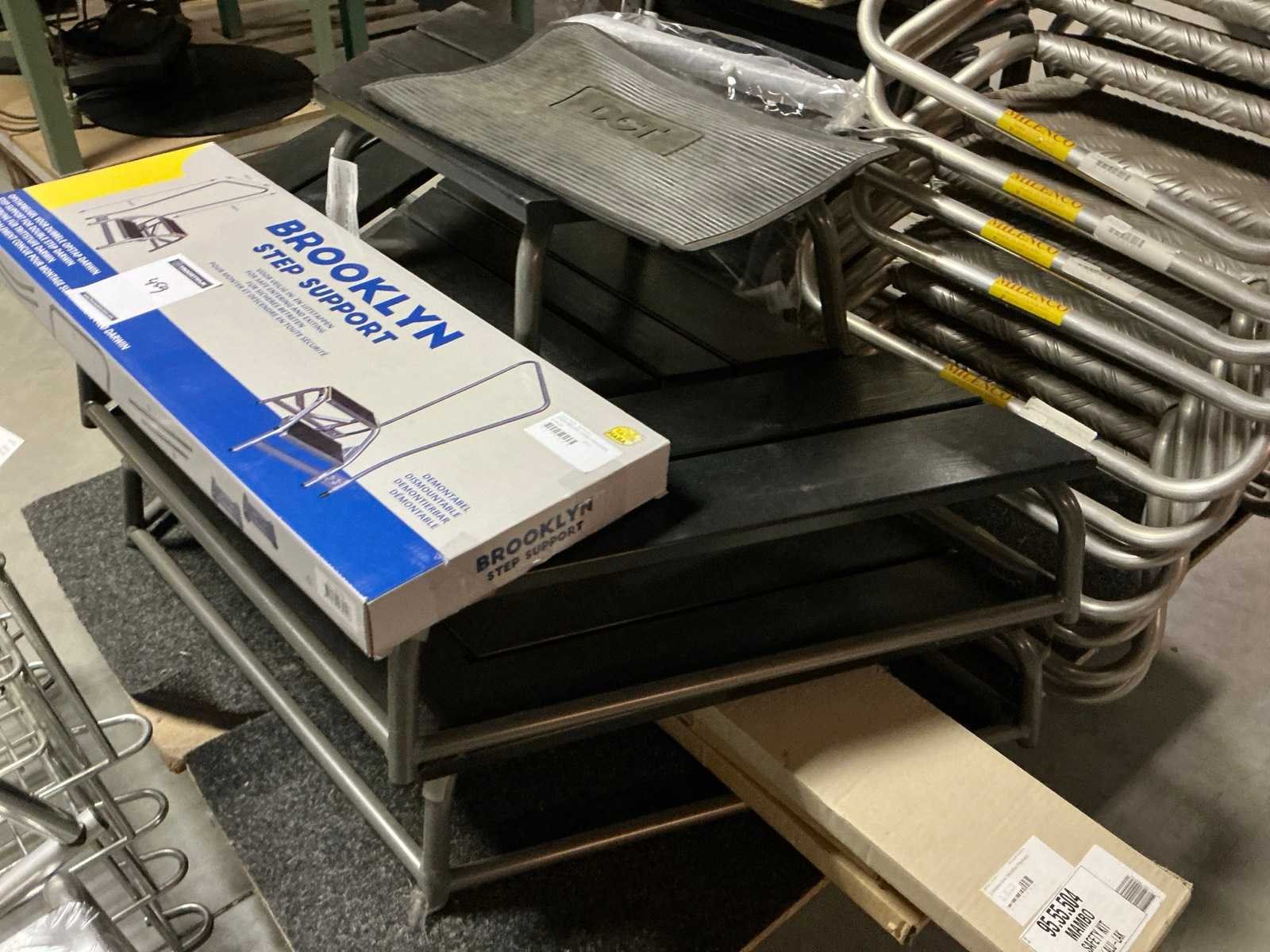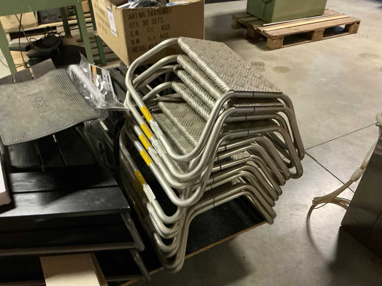 Kunststof en aluminium, met zijsteunen en stelpoten