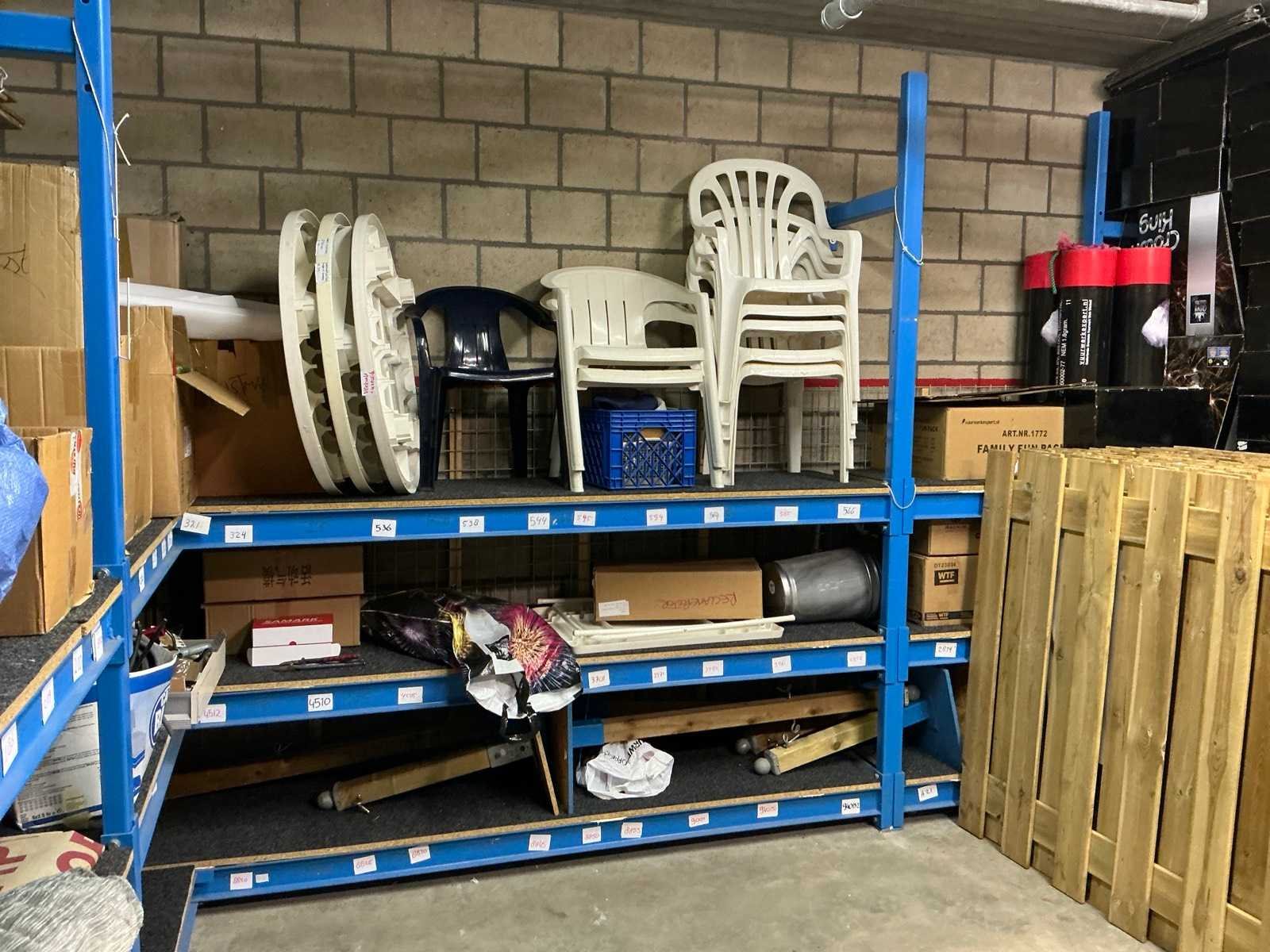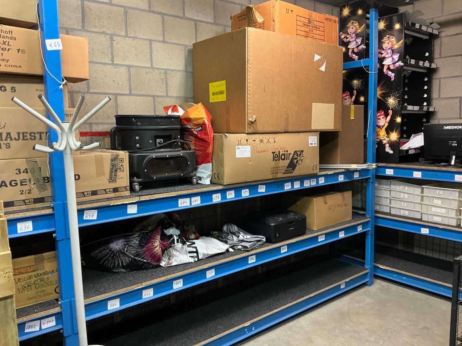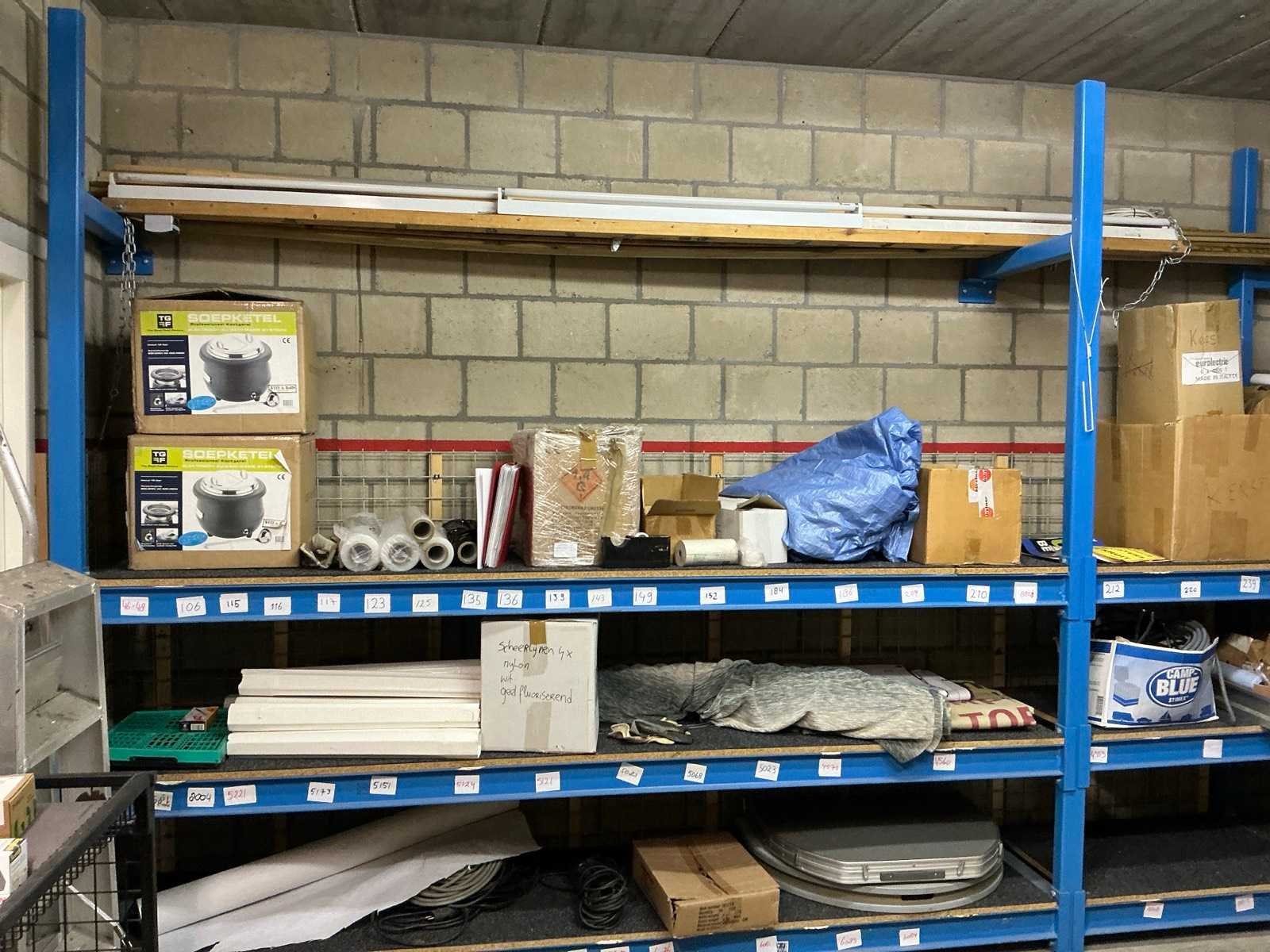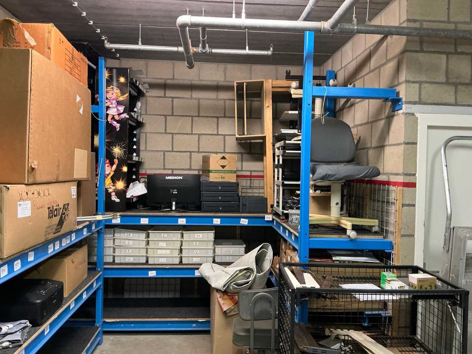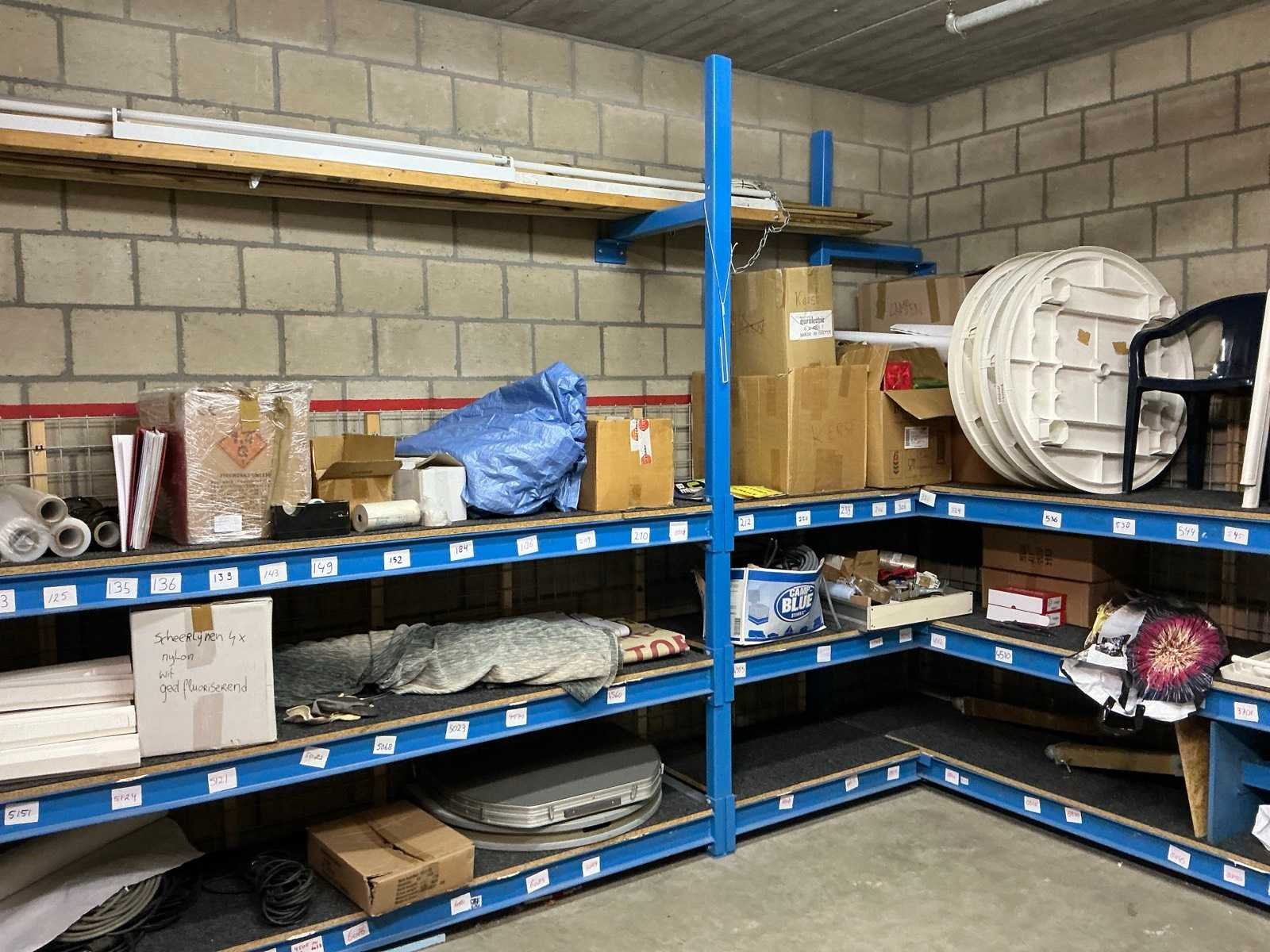 Waarvan 2x met hoek, voorzien van beklede legborden. Koper dient de stelling zelf af te breken. Exclusief alle inhoud! De staanders zijn wandgemonteerd. Aantal secties: 6 Sectie afm. b: 2900mm Sectie diepte: 600mm Sectie afm. h: 2800mm Aantal staanders: 10 Aantal legborden: 15 Demontabel: true