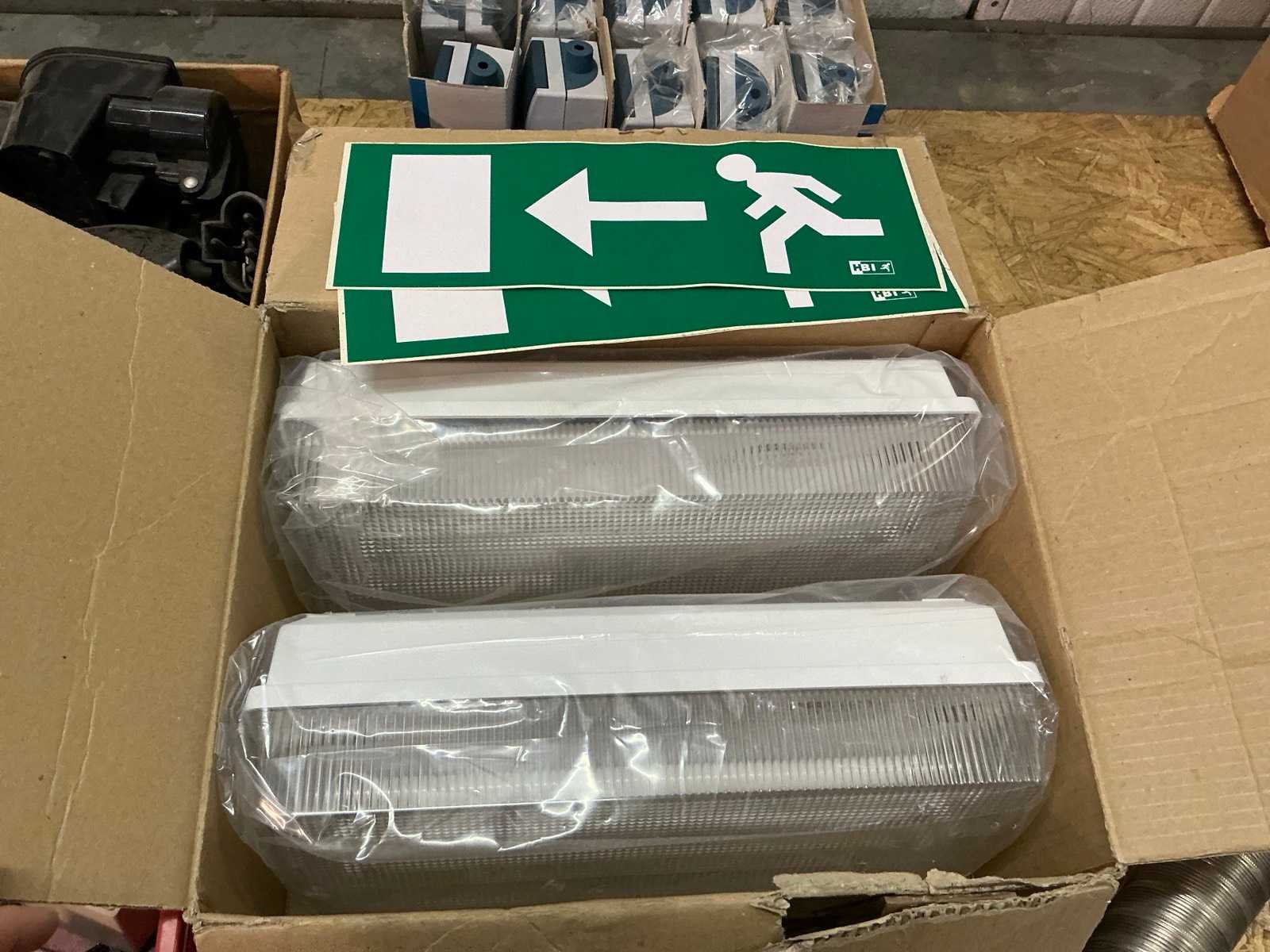 2 noodverlichting armaturen, 10x Busch jaeger stopcontacten en diverse