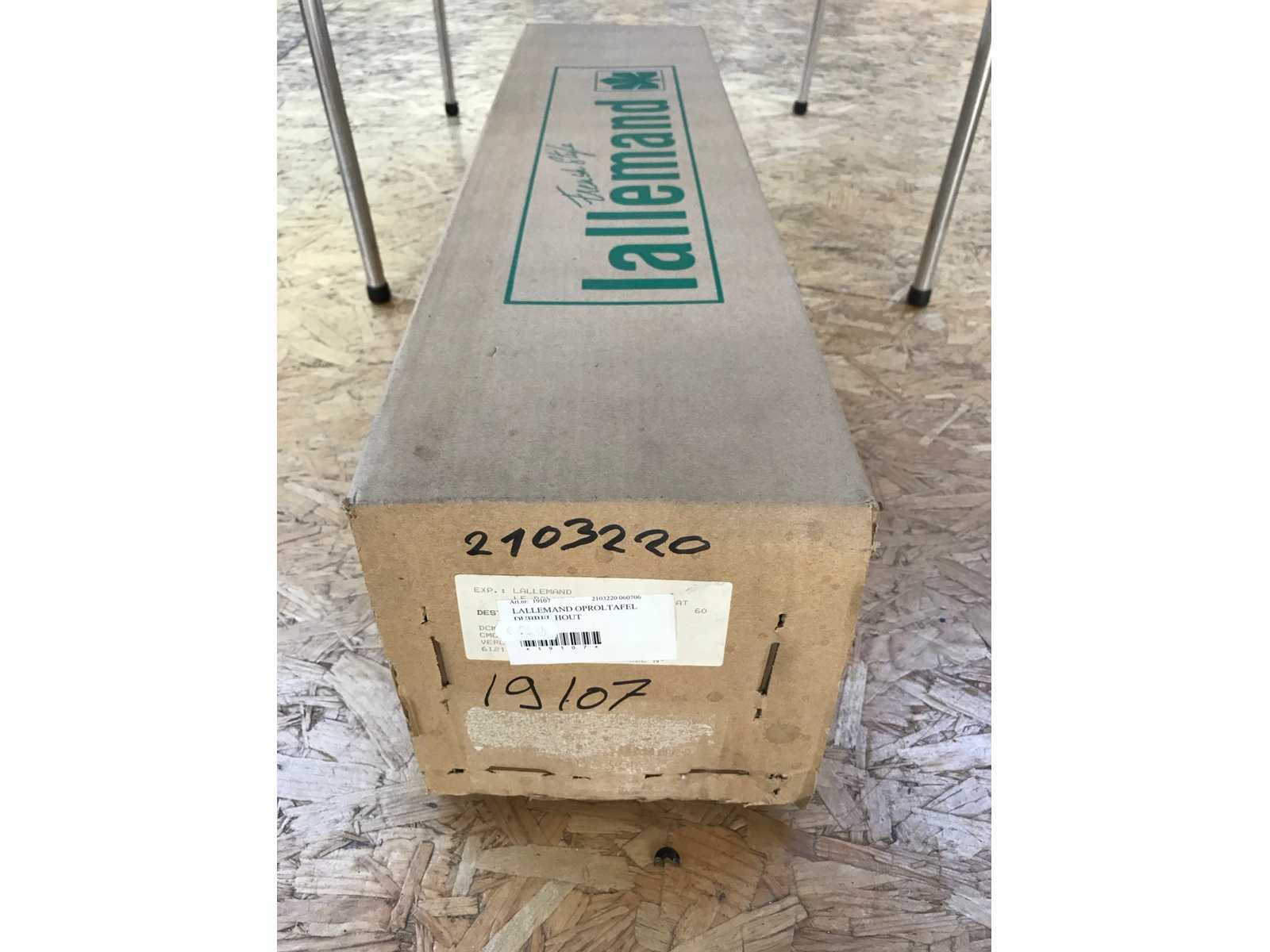 Showroomtafel en 1 in doos Merk: Lallemand Model: Dubbel hout Lengte: 130cm Breedte: 70cm Hoogte: 70cm
