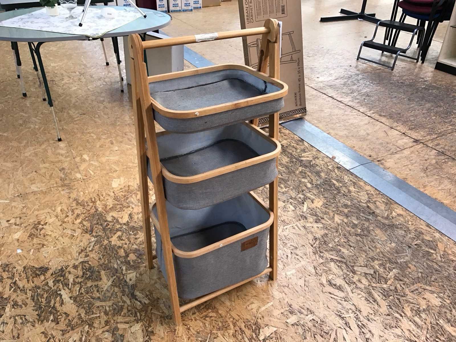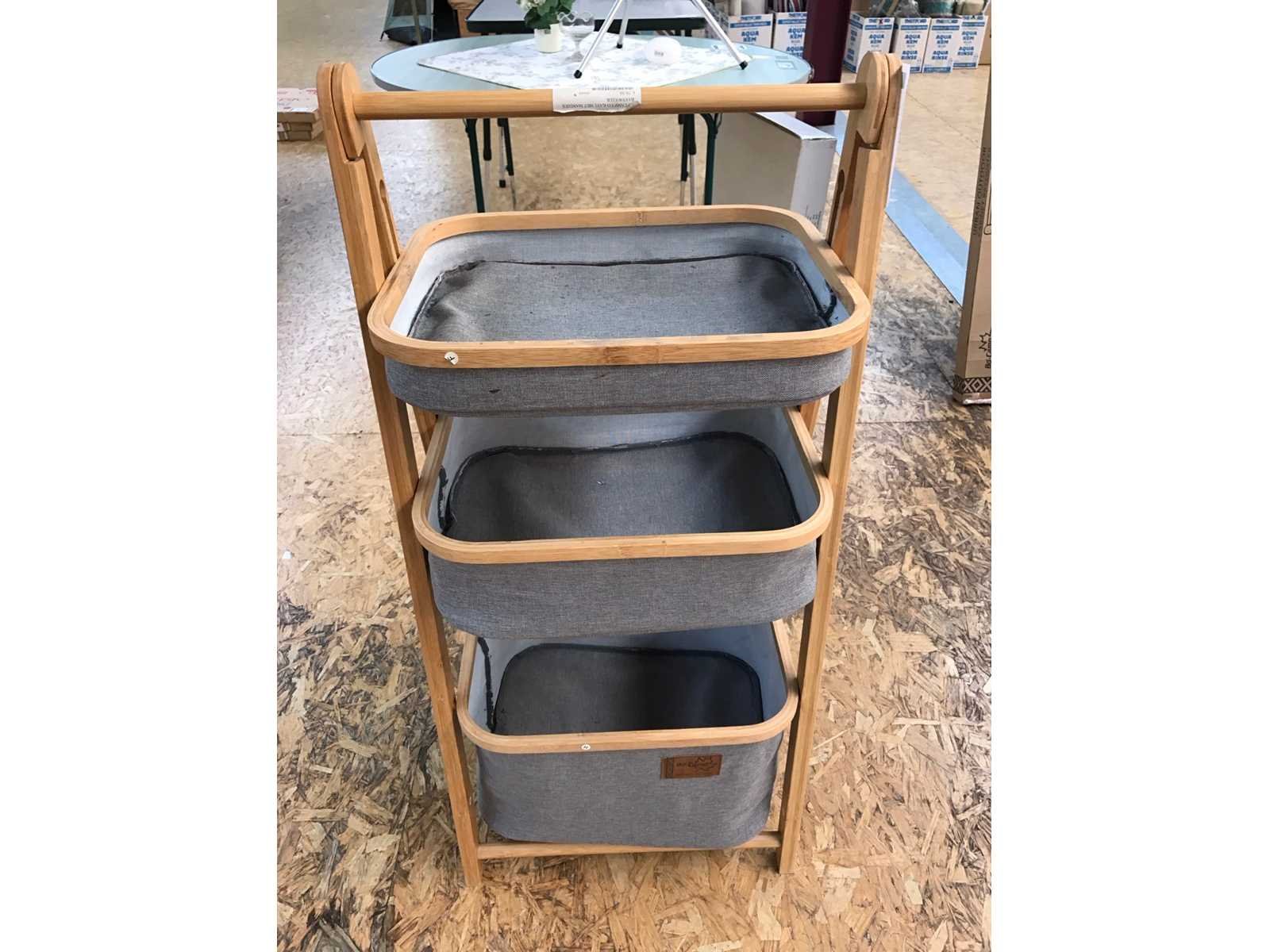 Showroommodel Merk: Bo-Camp Kleur: Grijs Lengte: 45cm Breedte: 35cm Hoogte: 99cm Materiaal: Bamboe en polyester