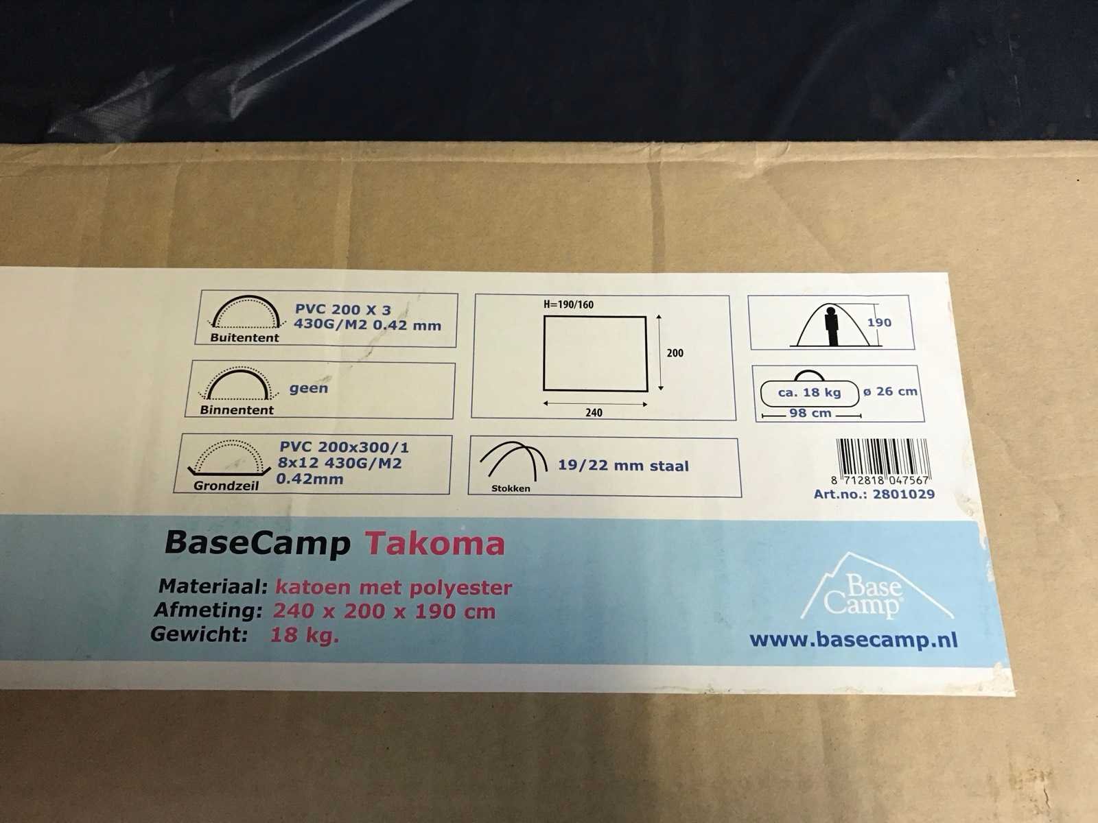 Showroommodel Merk: Base-Camp Model: Takoma Gewicht: 18kg Lengte: 240cm Breedte: 200cm Hoogte: 190cm