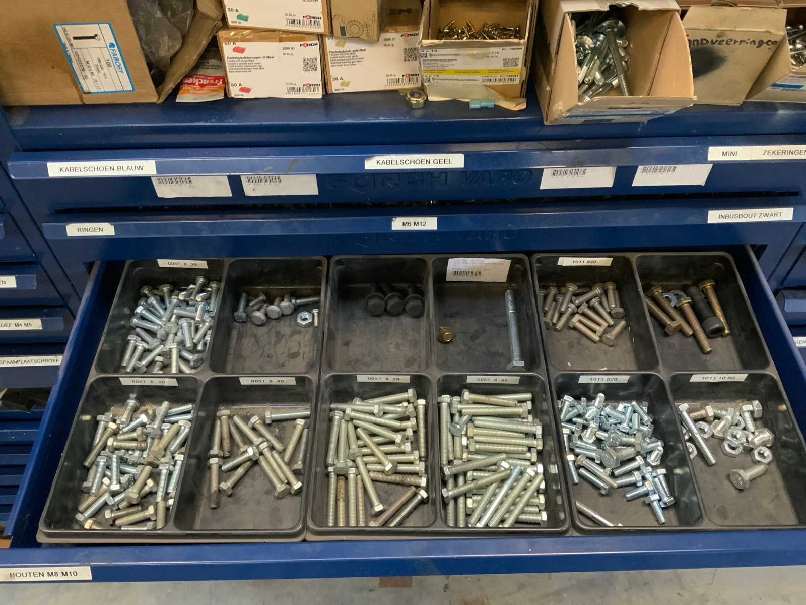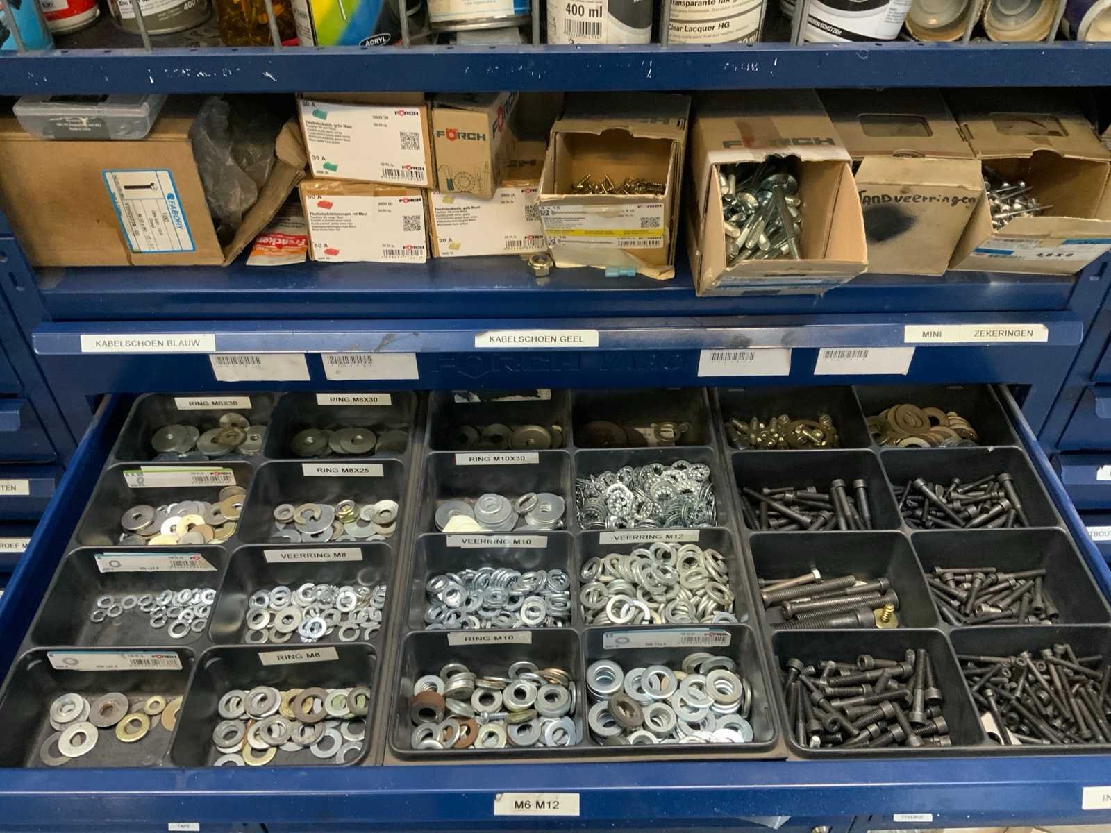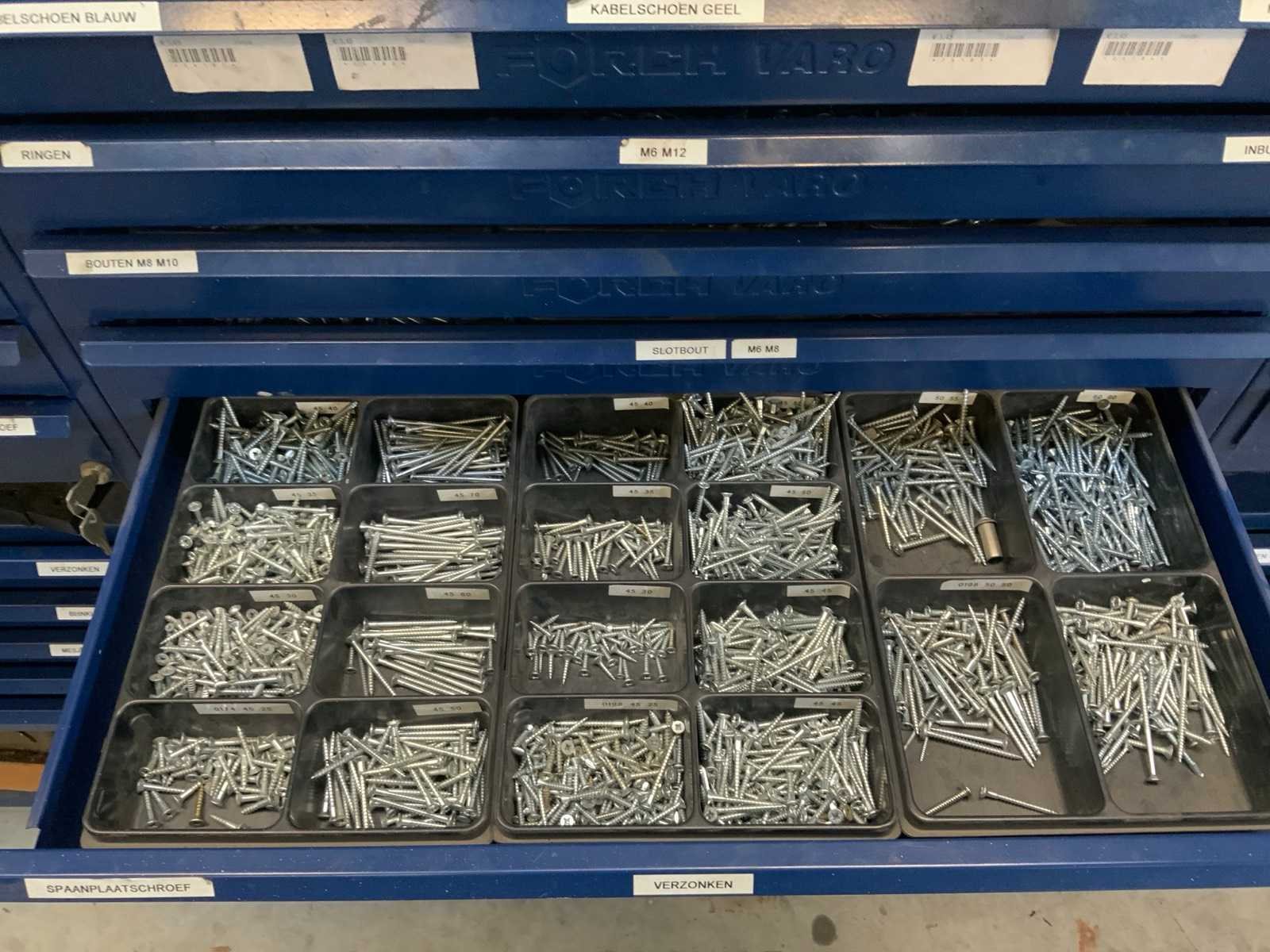 Stelling compleet met inhoud Merk: FÖRCH Type: Varo Aantal secties: 4 Sectie afm. b: 780mm Sectie diepte: 400mm Sectie afm. h: 2160mm Demontabel: true Totale afmeting L: 312cm Totale afmeting Hoogte: 216cm