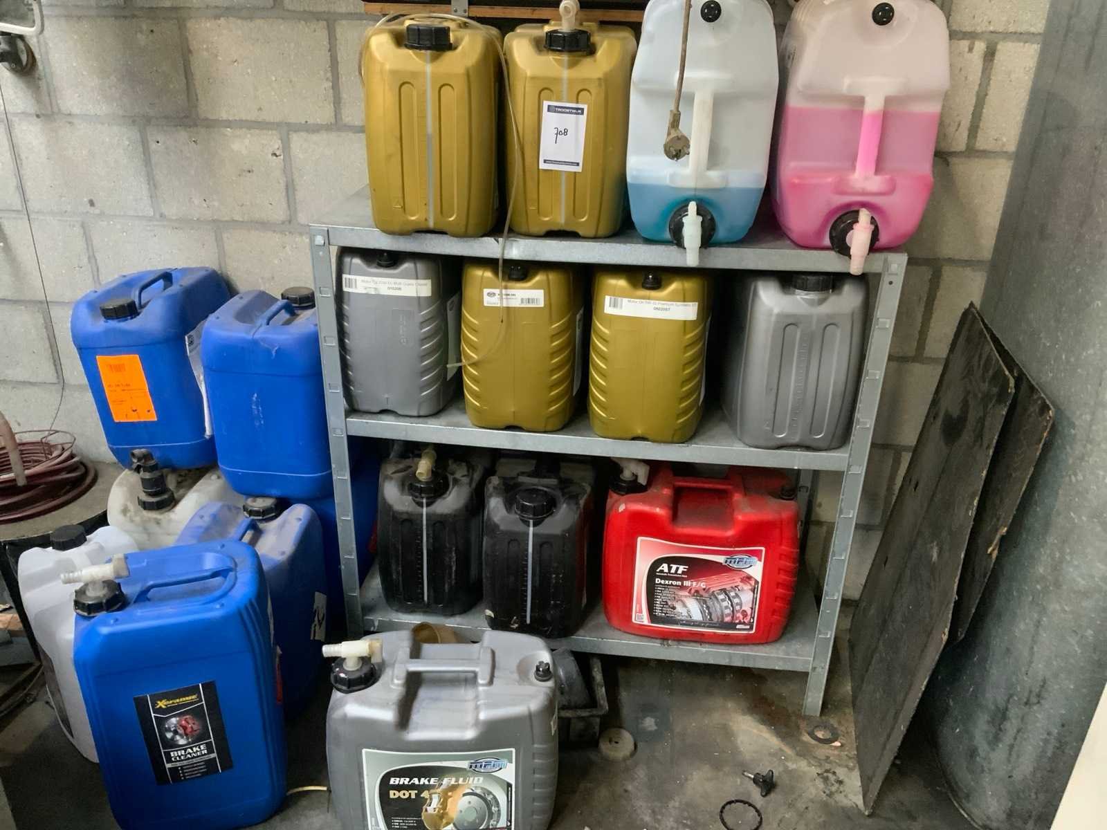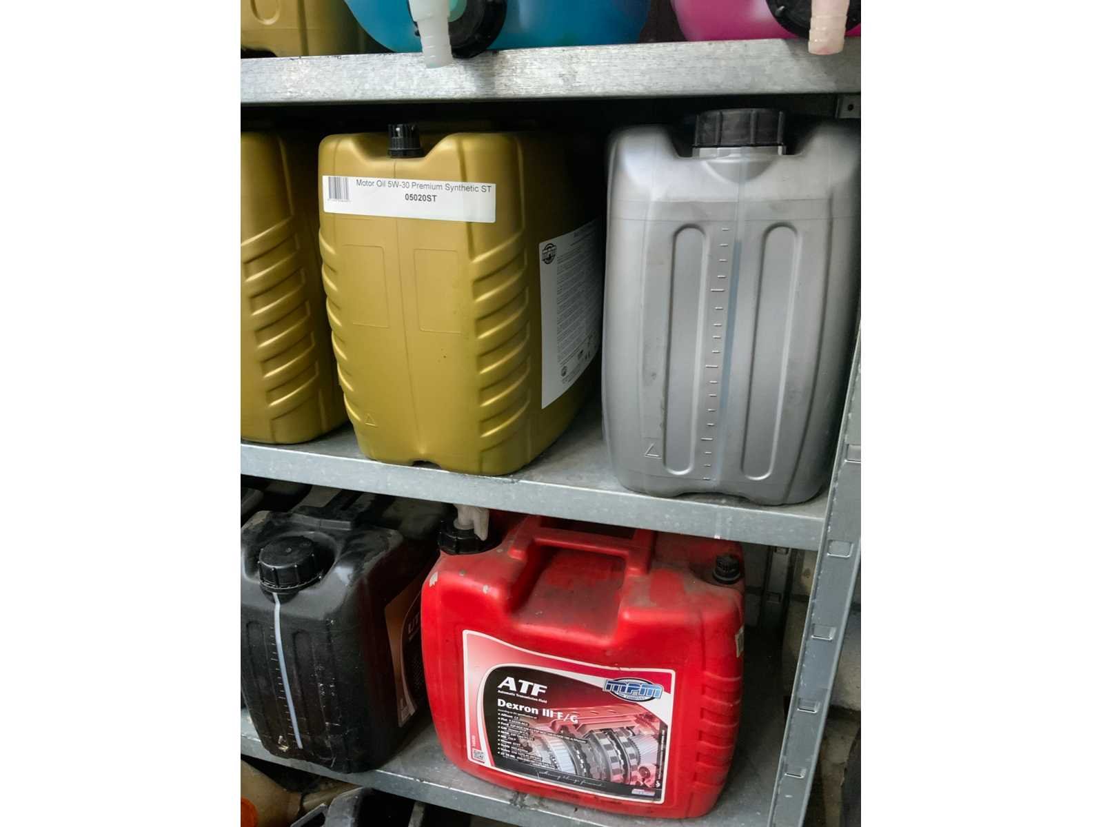 Diverse olieën, ruitenvloeistof, remmenreiniger, remvloeistof, motorolie etc. Alles wat op de foto staat incl inhoud.