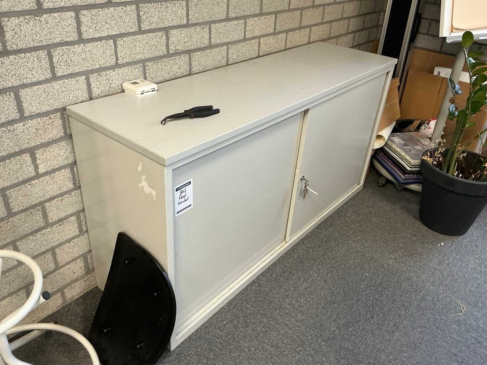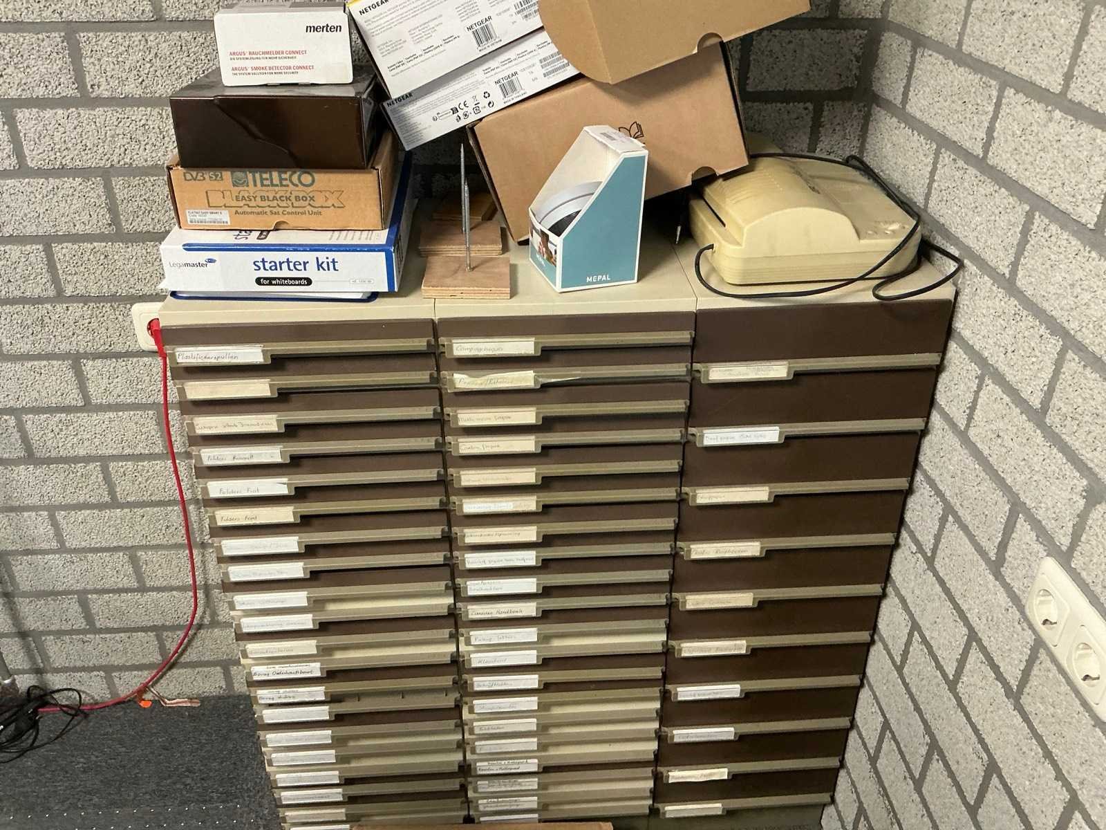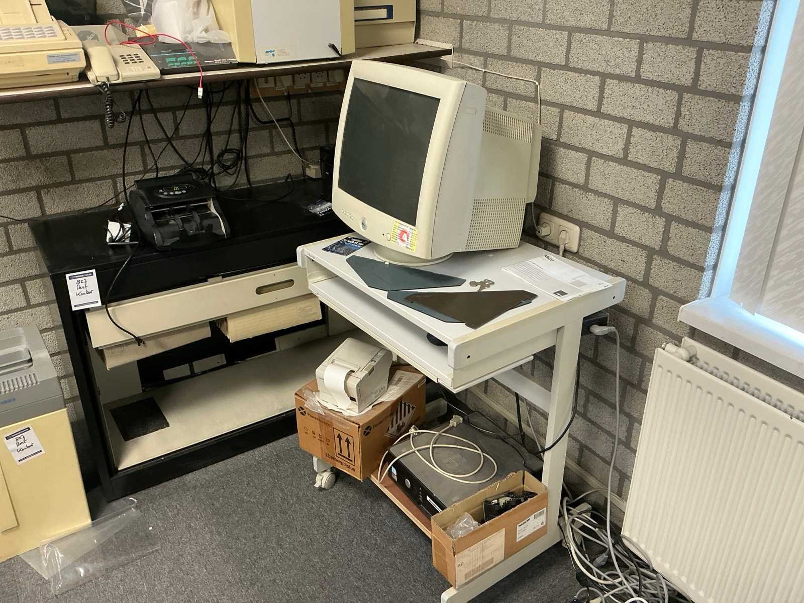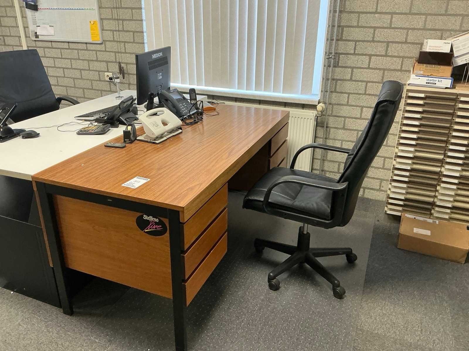 Bestaande uit onder meer: 2 bureaus met stoelen, 1 directiebureau, 1 bezoekerstafel met 5 stoelen, 3 lage schuifdeurkasten, 1 hoge schuifdeurkast, 2 ladekasten, porte-manteaus, papierversnipperaar, geldtelmachine etc.
