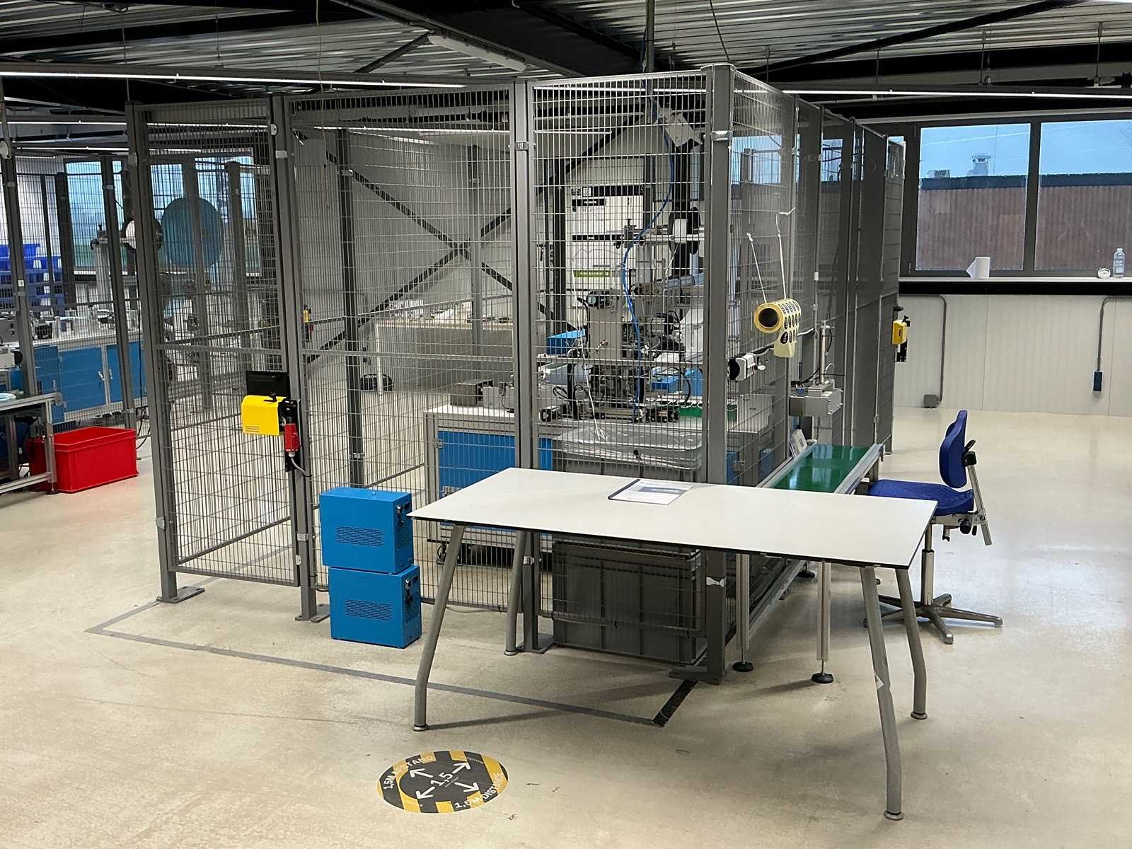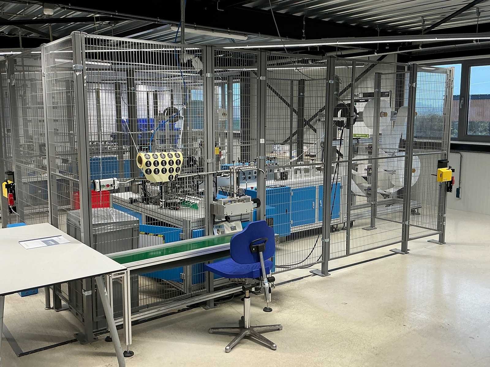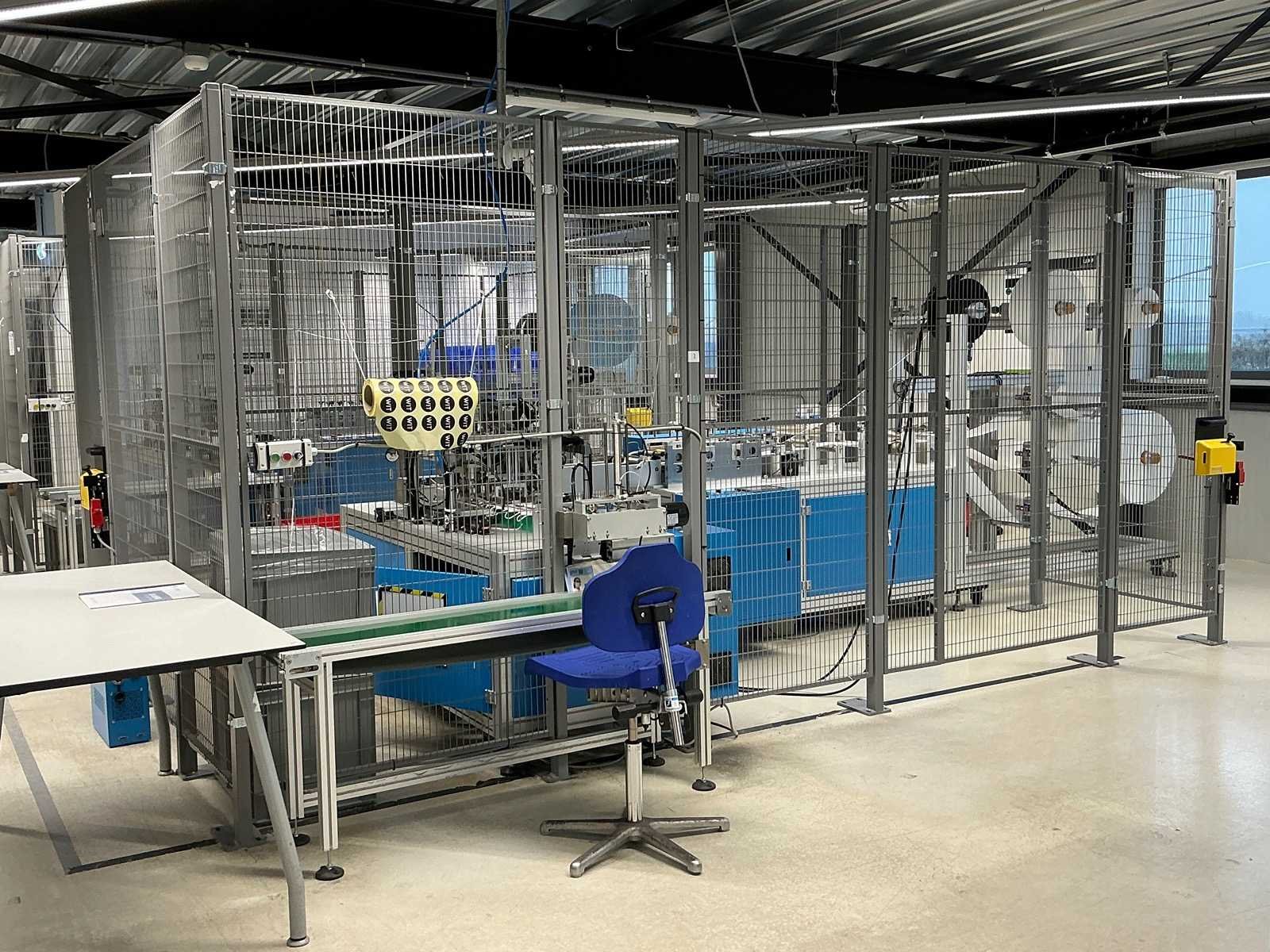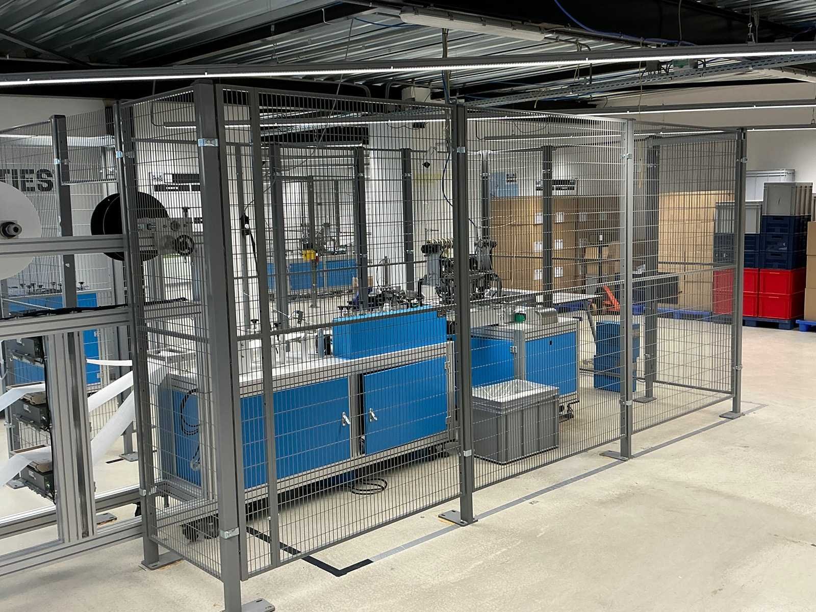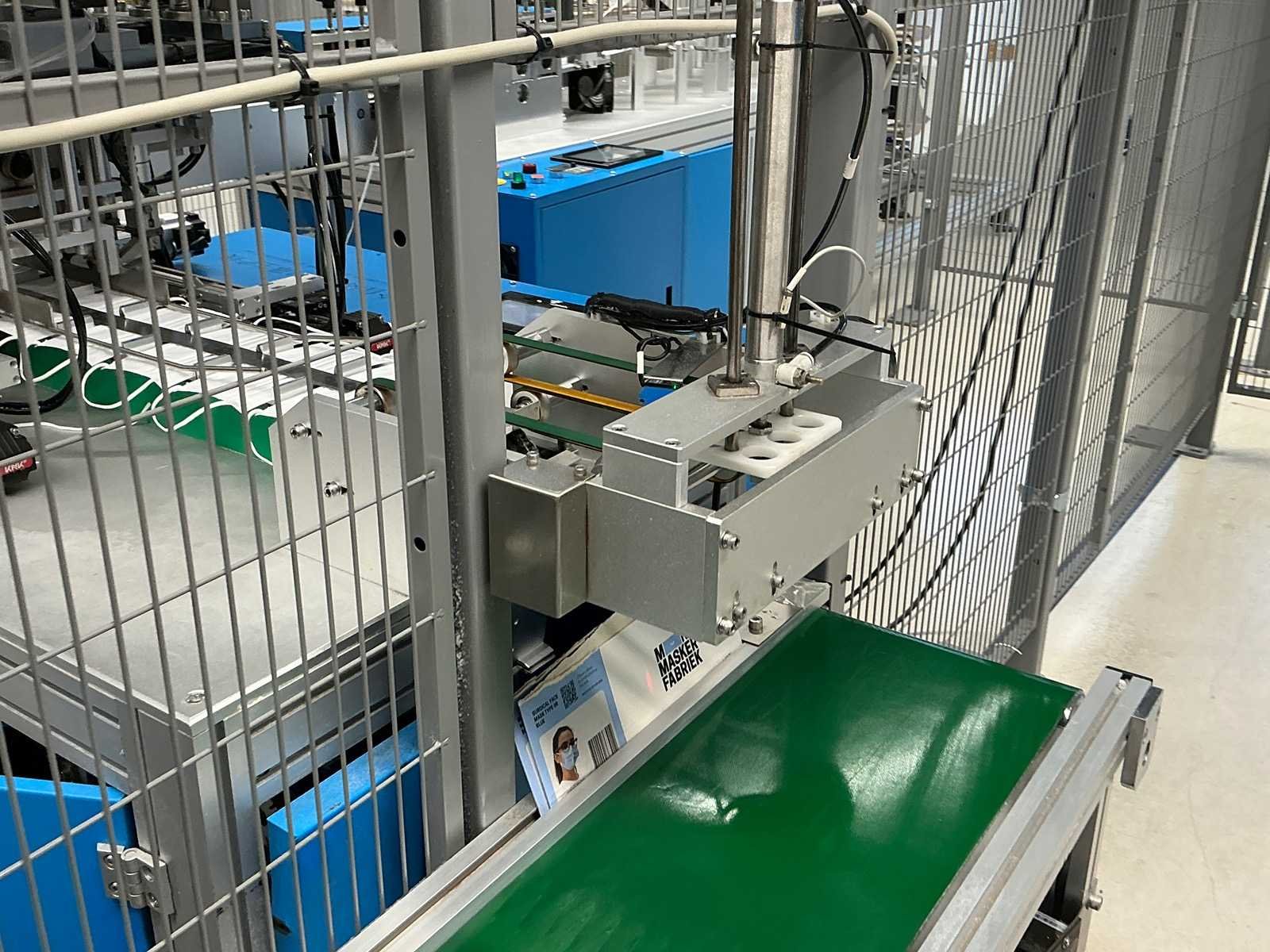 Producent Zhengye Technology; Chirurgisch mondmasker type llR, blauw, elastiek; power 6,5kw; reële capaciteit 3.000 per uur; mask size LxW 175mmx95mm; voorzien van Troax Smartfix veiligheidskooi Merk: Mask Machine Type: MM-A-K-1003 Bouwjaar: 2020 Aansluiting: 220V Totale afmeting L: 4600mm Totale afmeting Breedte: 3300mm Totale afmeting Hoogte: 2050mm