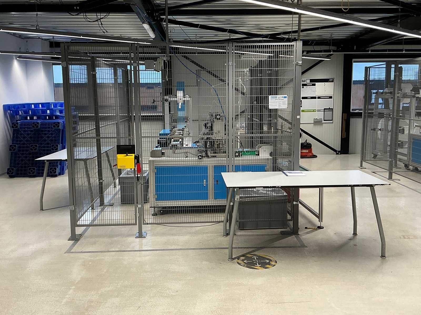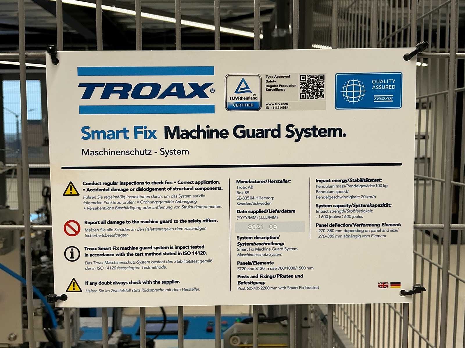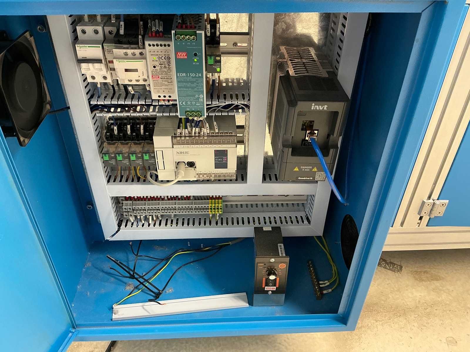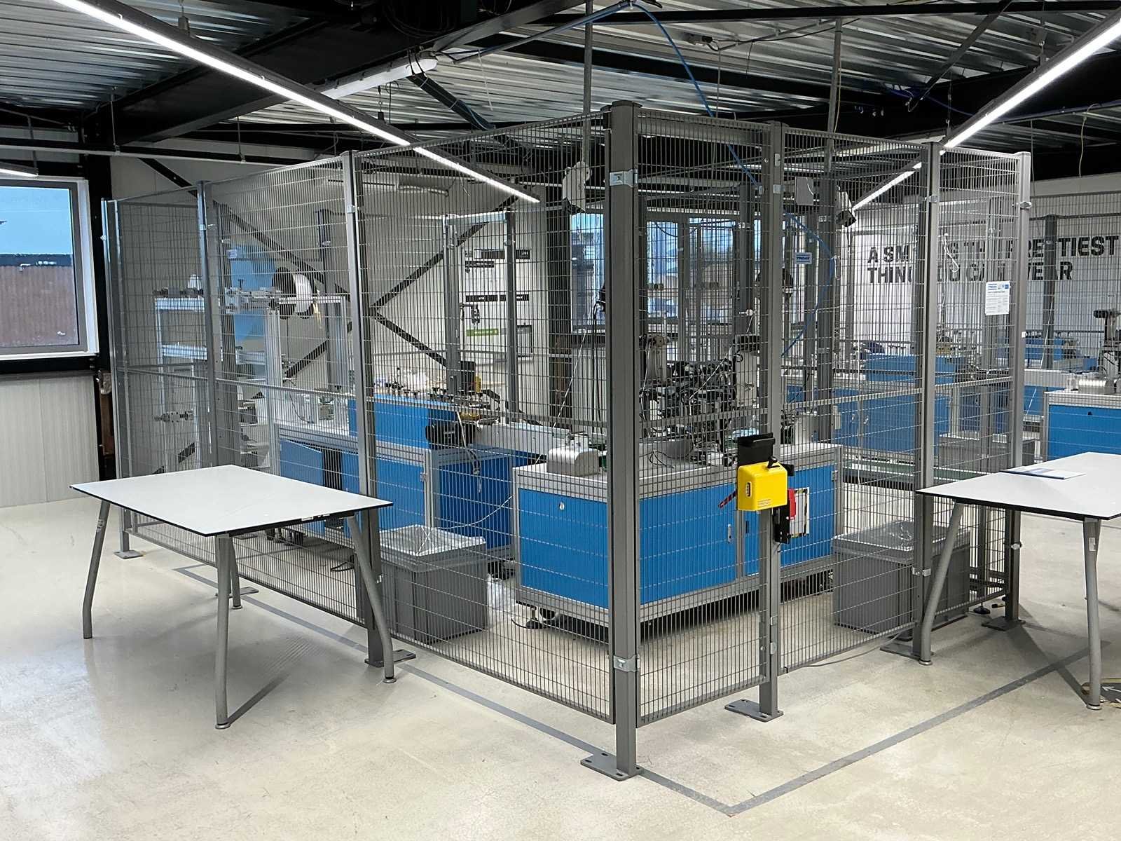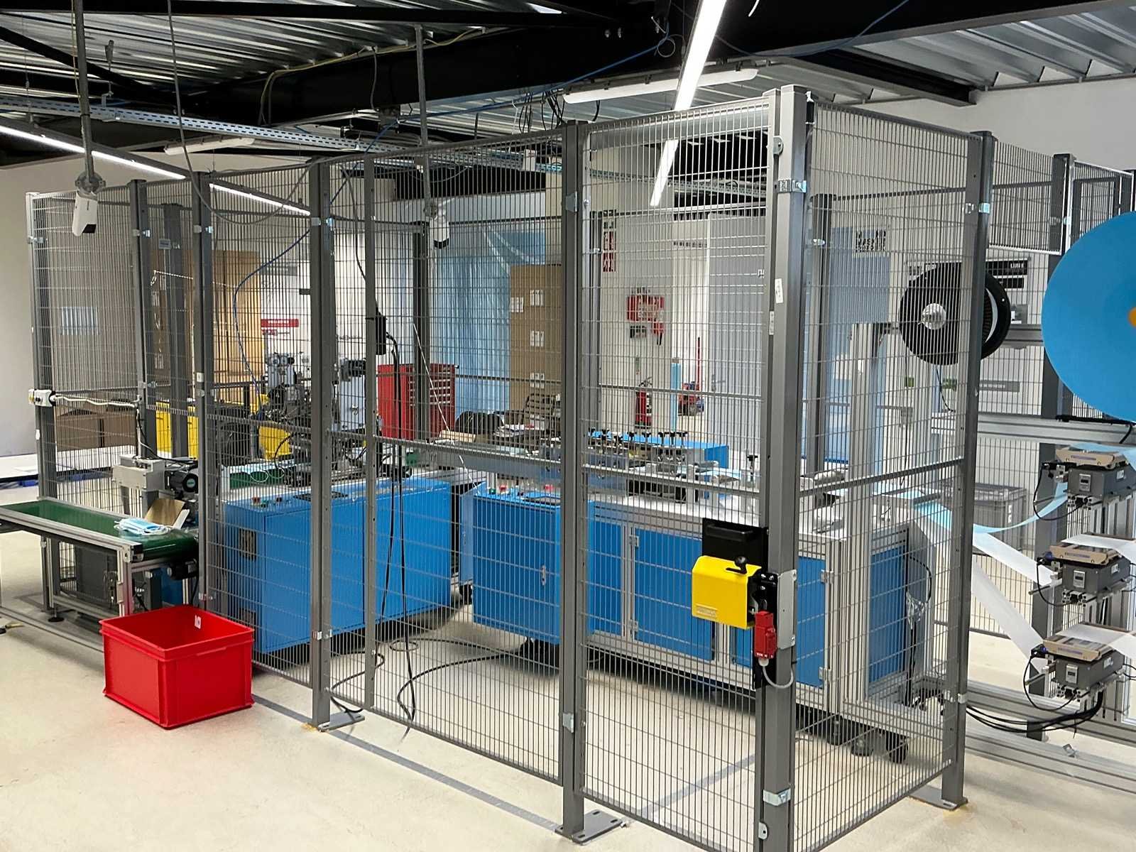 Producent Zhengye Technology; Chirurgisch mondmasker type llR, blauw, elastiek; power 6,5kw; reële capaciteit 3.000 per uur; mask size LxW 175mmx95mm; voorzien van Troax Smartfix veiligheidskooi Merk: Mask Machine Type: MM-A-K-1003 Bouwjaar: 2020 Aansluiting: 220V Totale afmeting L: 4600mm Totale afmeting Breedte: 3300mm Totale afmeting Hoogte: 2050mm