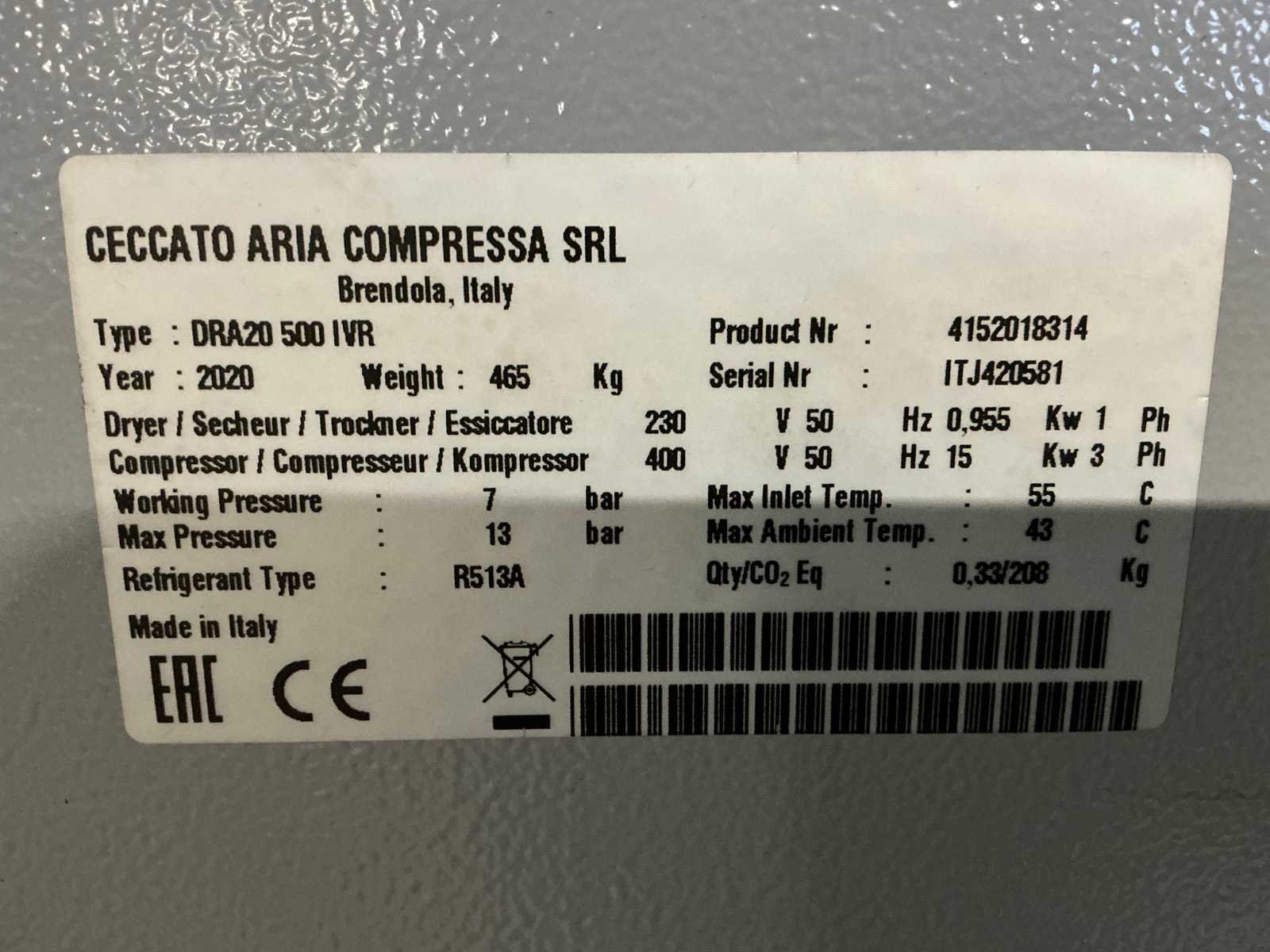 Merk: Airpress Type: DRA 20 IVR Bouwjaar: 2020 Capaciteit.: 13bar Vermogen: 3kW Buffertank inhoud: 500l Luchtdroger: true Aansluiting: 400V