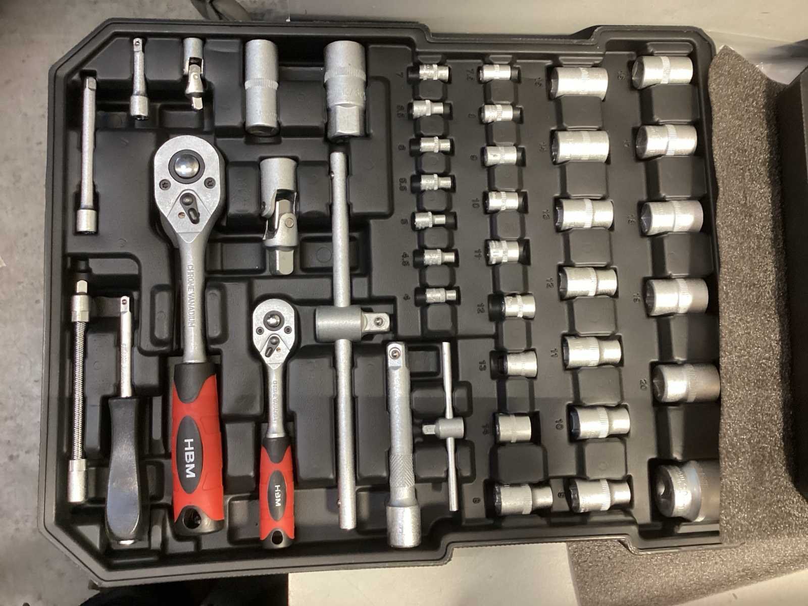 Gereedschapstrolly 599-delig gevuld. De koffer beschikt over 4 vakken. Door middel van 2 slotklemmen is de koffer afsluitbaar. Bezorgtermijn 14 dagen Merk: HBM Model: Gereedschapstrolly 599-delig Type: 599-delig