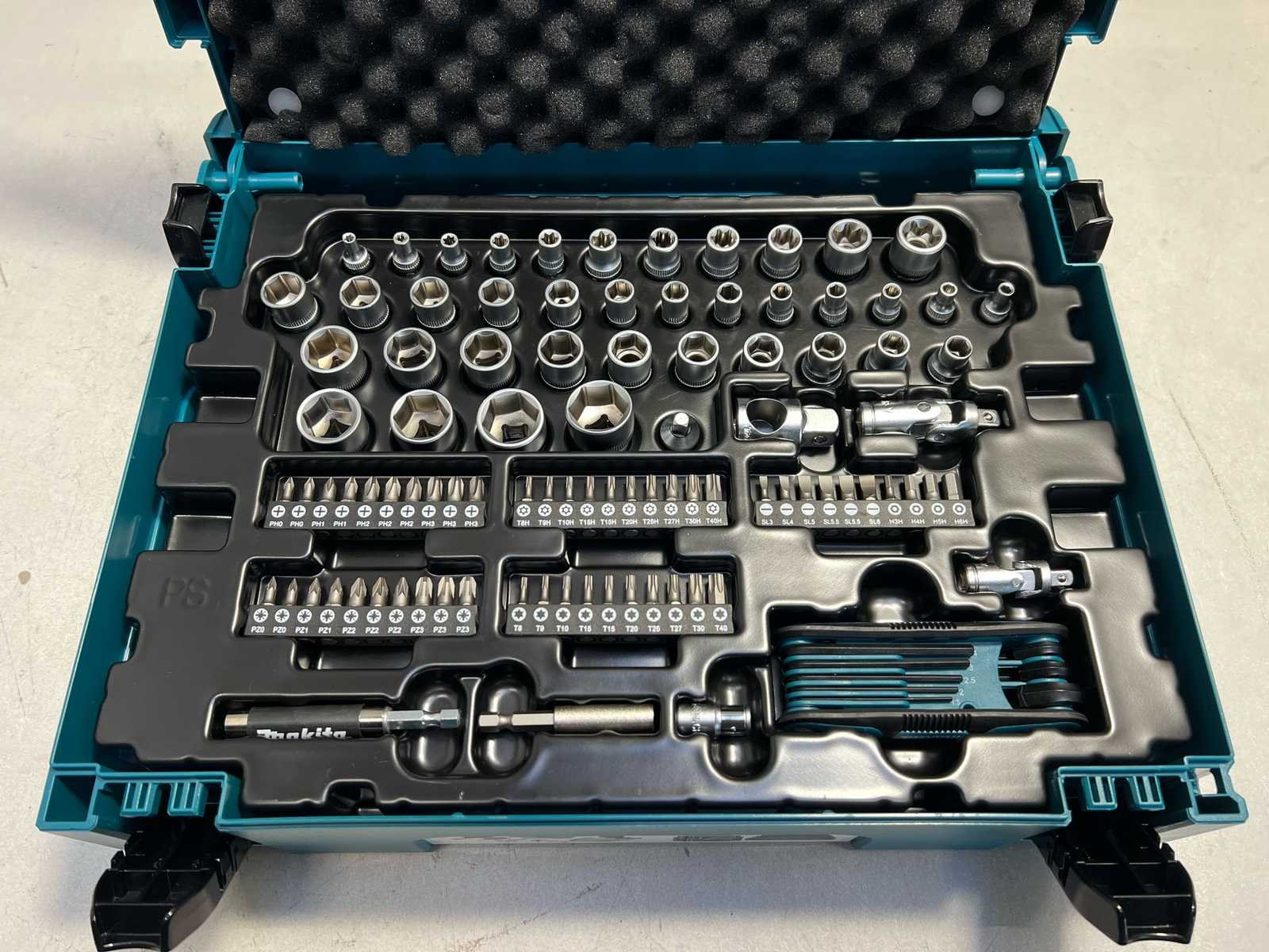 Handgereedschapset 120-delig in Mbox nummer 1 bestaande uit: 50-delige schroefbitset 25mm 1/4" vorm C: 6x Sleuf-bits: [S3 / S4 / S5 / S5.5 x2/ S6 ] 10x Phillips-bits: [PH0 x2 / PH1 x2 / PH2 x3 / PH3 x3] 10x Pozidriv-bits: [PZ0 x2 / PZ1 x2 / PZ2 x3 / PZ3 x3] 10x Torx-bits: [T8 / T9 / T10 / T15 x2 / T20 / T25 / T27 / T30 / T35 / T40] 10x Torx-bits beveiligings/anti-tamper kop; [T8H / T9H / T10H / T15H x2 / T20H / T25H / T27H / T30H / T35H / T40H] 4x Inbus/Hex-bits: [H3 / H4 / H5 / H6] 40-delige doppenset in diverse maten in mm: 13x 1/4" doppen [4 / 4.5 / 5 / 5.5 / 6 / 7 / 8 / 9 / 10 / 11 / 12 / 13 /14] 14x 3/8" doppen [8 / 9 / 10 / 11 / 12 / 13 / 14/ 15 / 16 / 17 / 18 / 19 / 20 / 21] 5x 1/4" E-torx doppen [ 4 / 5 / 6 / 7 / 8] 6x 3/8" E-torx doppen [10 / 11 / 12 / 14 / 16 / 18] 1x 3/8" ratel 1x 1/4" bitschroevendraaier 7x ringsteeksleutels [8 / 10 / 11 / 12 / 13 / 14 / 15 mm] 1x inbussleutelset [ 1.5 / 2 / 2.5 / 3 / 4 / 5 / 6 / 8 mm] 2x bougiedoppen [16 / 21 mm] 1x dopadapters 3/8" vrouwelijk naar 1/4" mannelijk 1x dopadapters 3/8" vrouwelijk naar 1/2" mannelijk 2x cardankoppeling [1/4" en 3/8"] 2x 3/8" extentie in de maten 75 en 150 mm 2x 1/4" extentie in de maten 50 en 100 mm 1x magnetische bithouder 1x uitschuifbare schroefhouder [80 mm] 1x 1/4" vrouwelijke dopopname naar 1/4" bitopname 1x 1/4"dopextentie voor in boor-/schroefmachine 1x 3/8"dopextentie voor in boor-/schroefmachine Deze 120-delige handgereedschapset in Mbox1 bestaat onder andere uit een 50-delige schroefbitset, 7-delige steek-/ringsleutelset, 48-delige doppenset met adapters, inbussleutelset, 3/8" ratel en 1/4" bitschroevendraaier. Bezorgtermijn 14 dagen Merk: makita Type: E08713