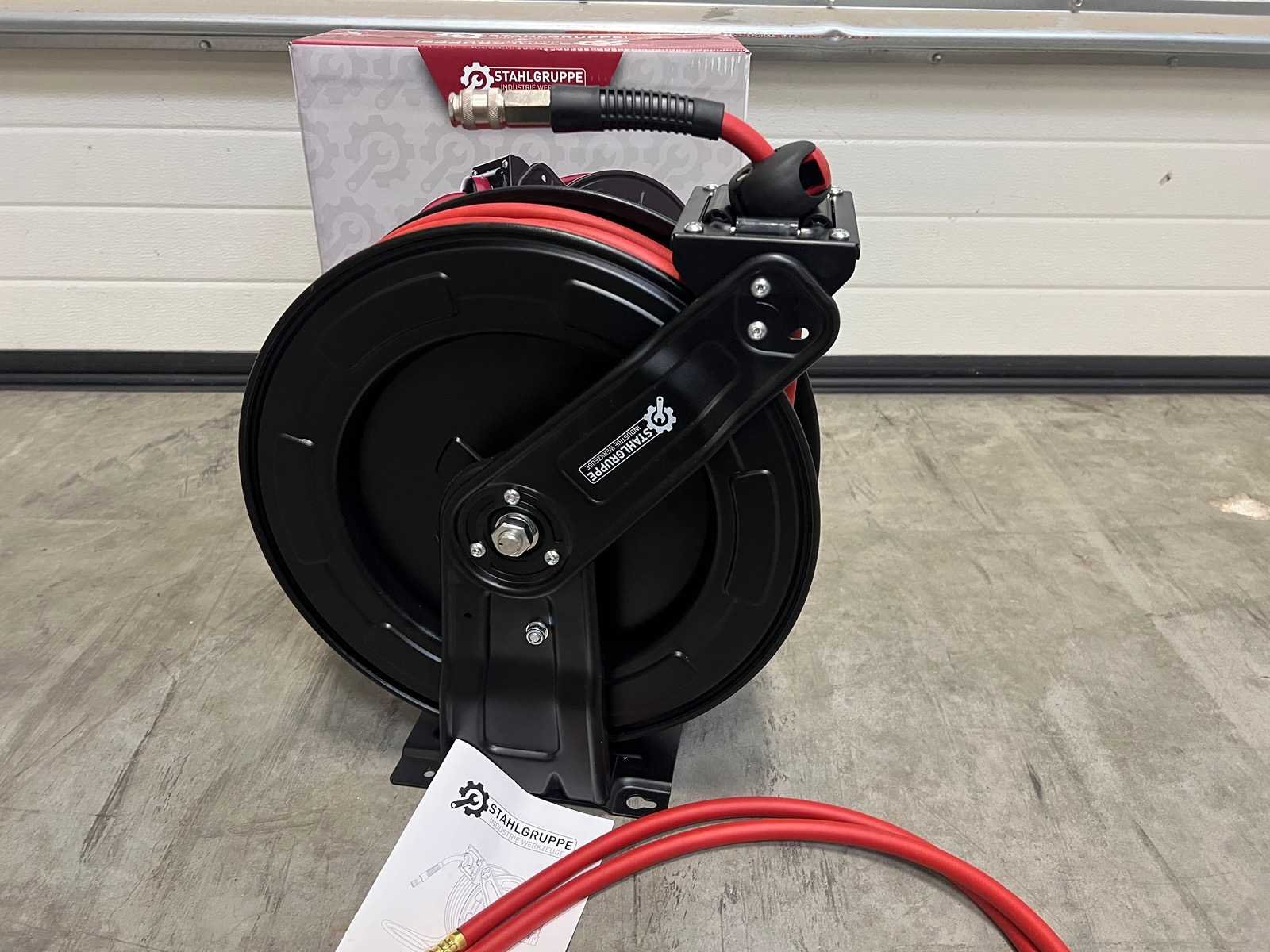 2 M Inlaatslang 20 M uitlaatslang 9,5 MM slangdiameter 20 BAR Max druk Verstelbare stop bal Duurzame materialen Automatisch oprolsysteem Montagemateriaal inbegrepen Bezorgtermijn 14 dagen Merk: Stahlgruppe Type: SGST20M Stalen Luchthaspel