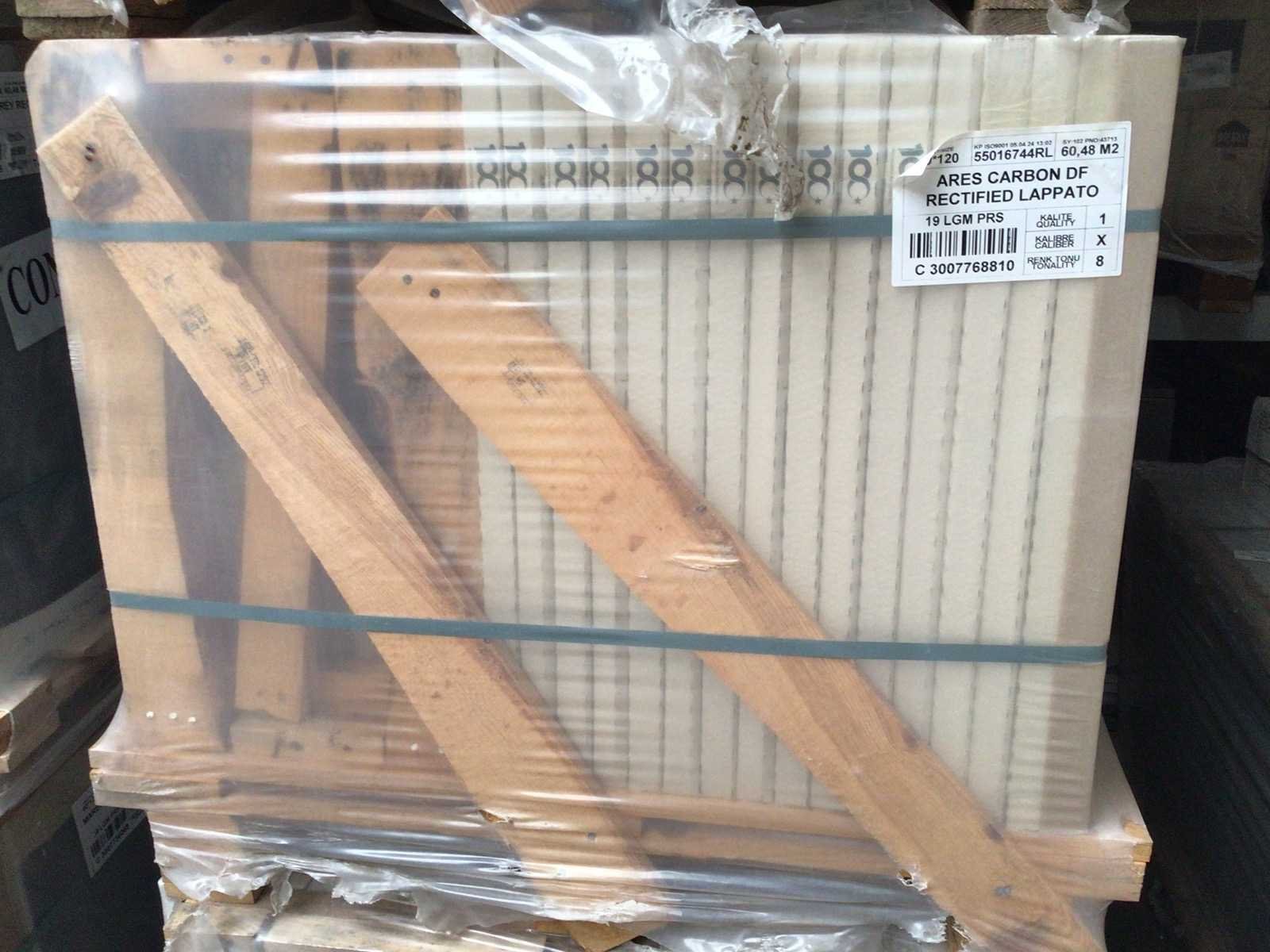 1 pallet Bezorgtermijn 14 dagen Merk: Kutahya Kleur: Ares Karbon Lappato Afwerking: Half Glanzend Lengte: 600mm Breedte: 1200mm Dikte: 8mm Materiaal: Keramiek Type: Vloertegel Aantal m² per verpakking: 2,16m² Aantal pakken: 28 Totaal oppervlakte: 60,48m² Totaal gewicht: 1200kg