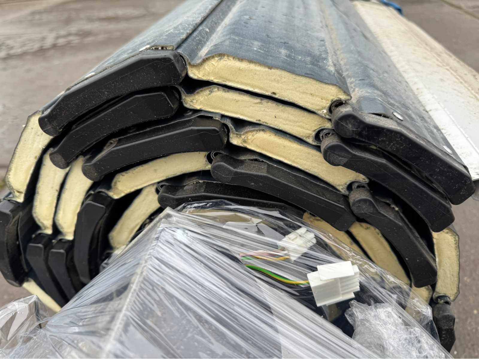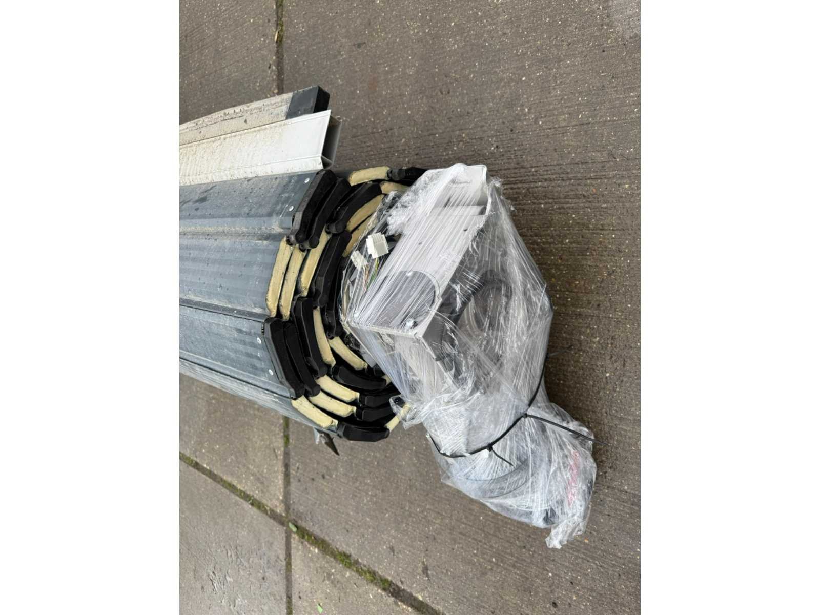 Deur bestaande uit de deur; aandrijfmotor; railsen; bedieningspaneel; 2 afdicht montage hoeken; reeds gedemonteerd; Merk: Alpha Deuren Binnendeur: true Buitendeur: true Afmeting h: 4240mm Afmeting b: 4500mm Bouwjaar: 2025 Type: RPU20-95 Aluminium: true