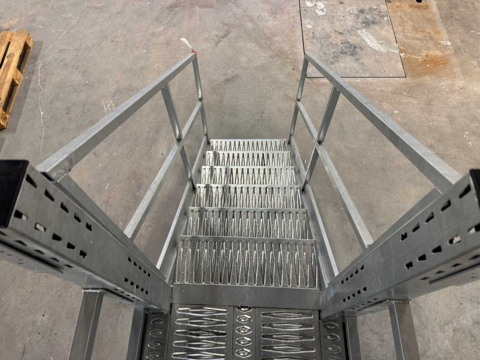 Loophoogte 1160 mm; 1 trappen met 6 tredes; wordt door verkoper gedemonteerd en transport klaar gemaakt; Bouwjaar: 2023 Met leuningen: true Totale afmeting L: 15300mm Totale afmeting Breedte: 800mm Totale afmeting Hoogte: 2260mm