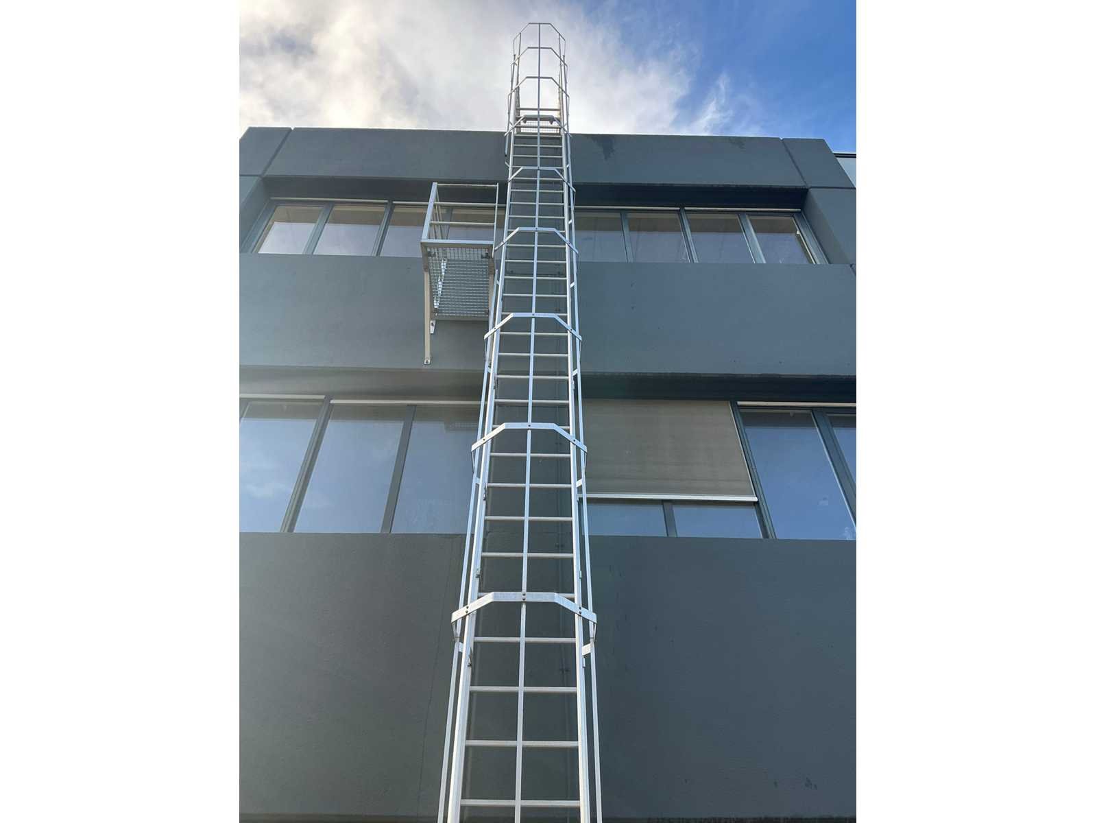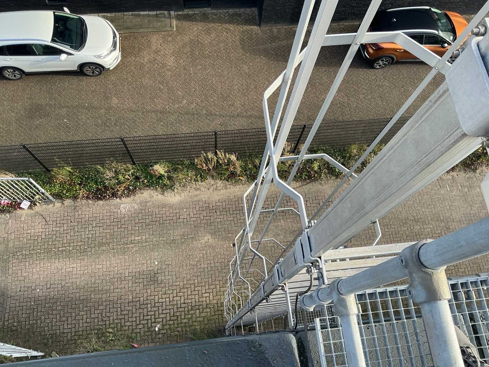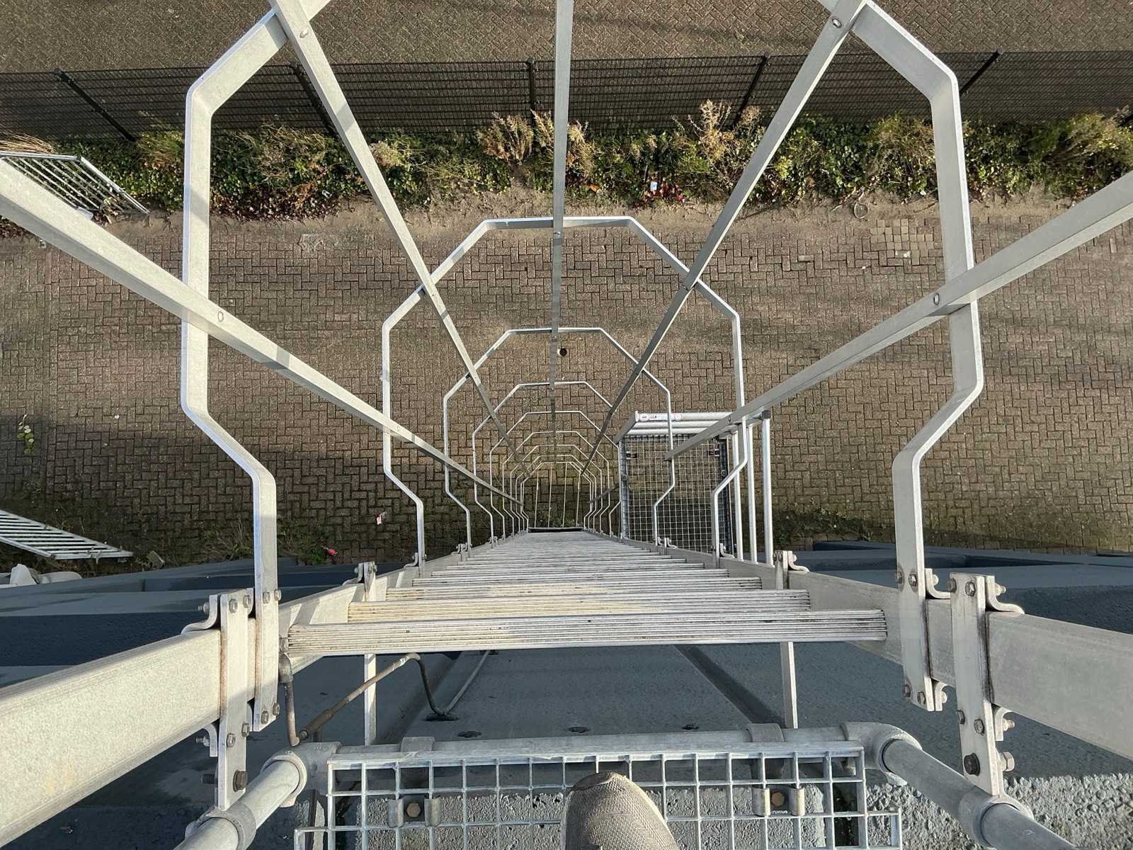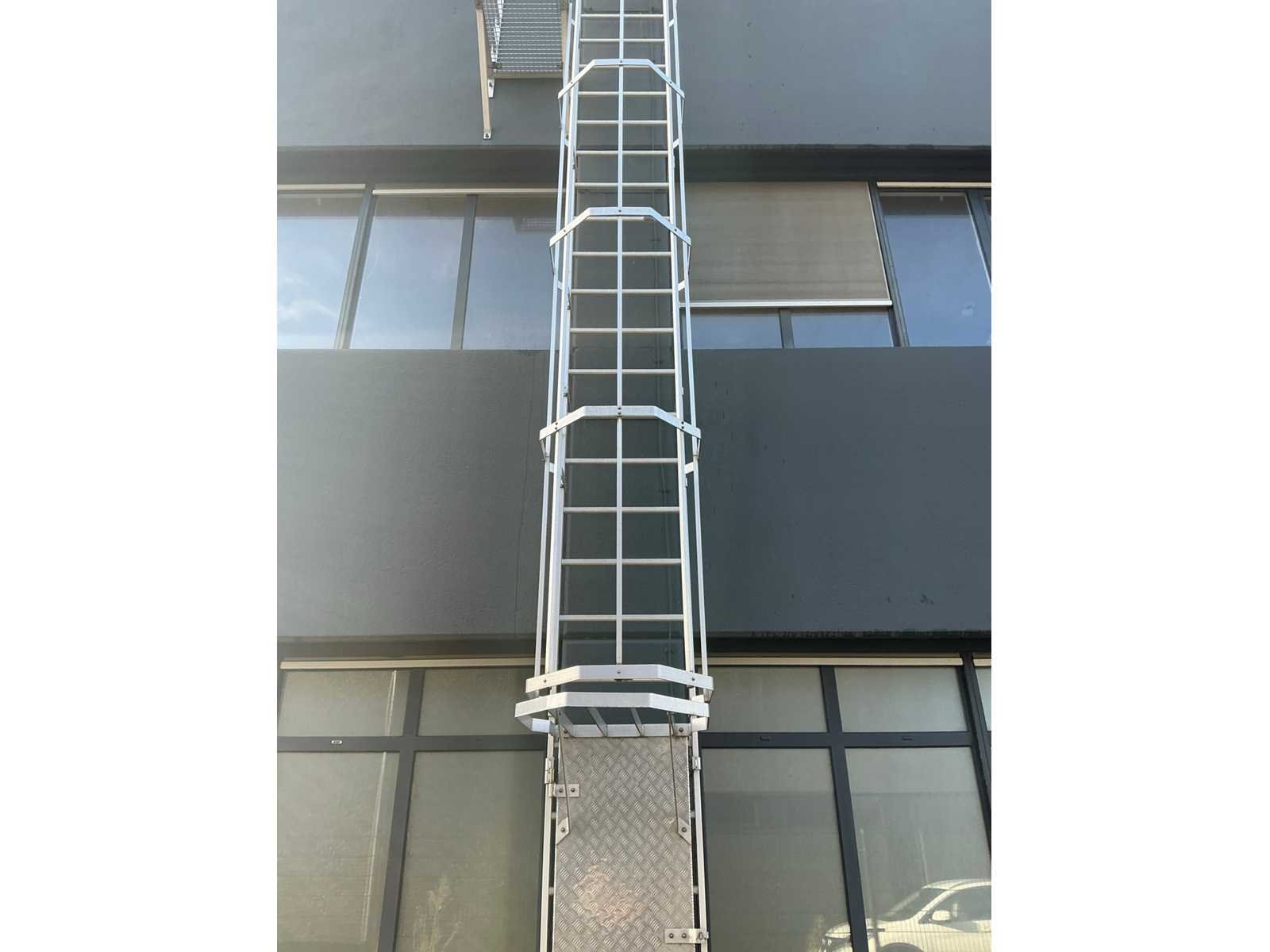 Hoogte trap is ca 11000 mm; met klim beveiliging en tussen plateau; Aluminium: true Oplooptrap: true Totale afmeting Breedte: 730mm