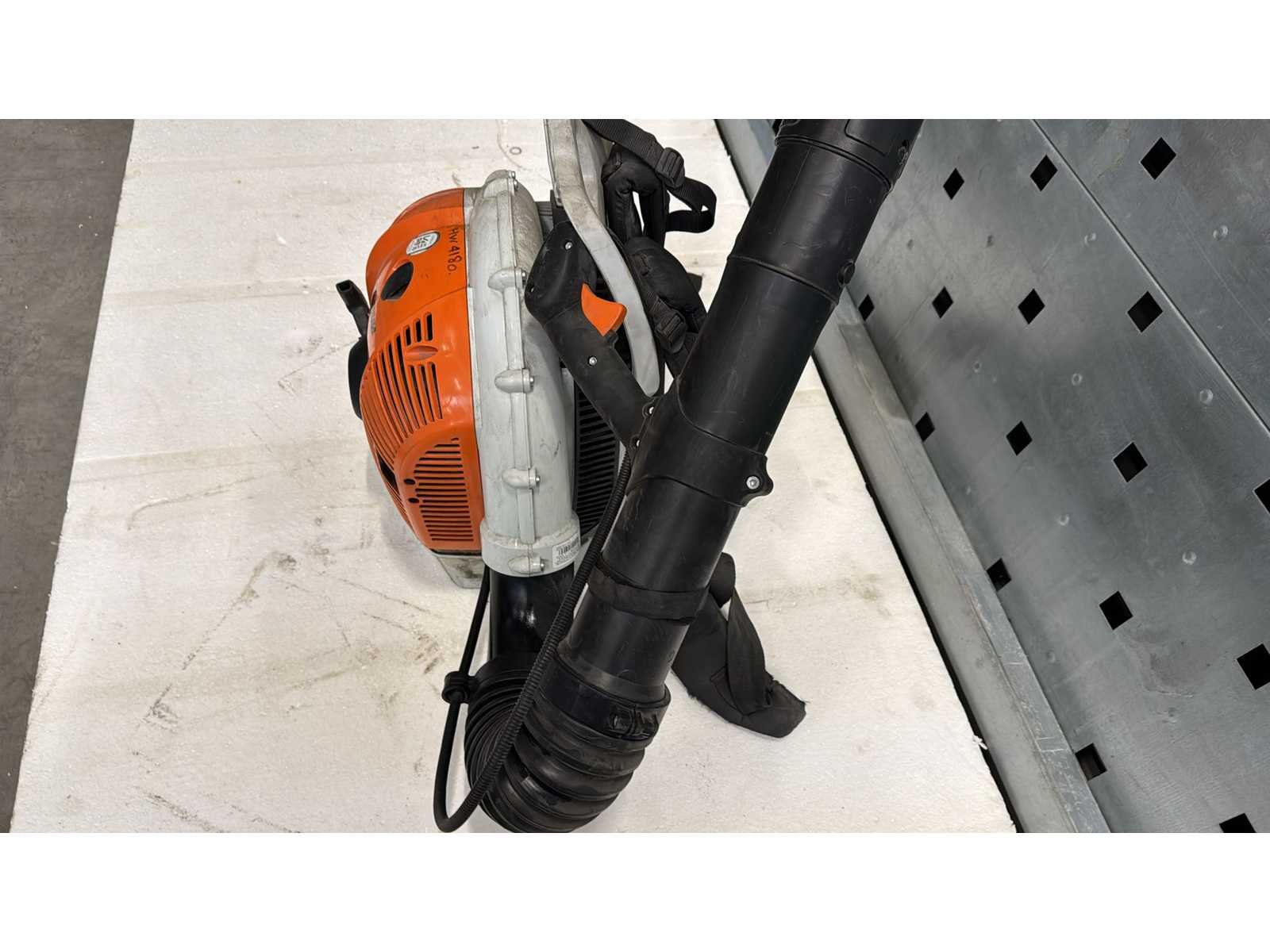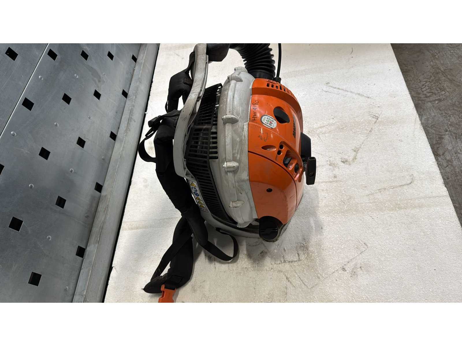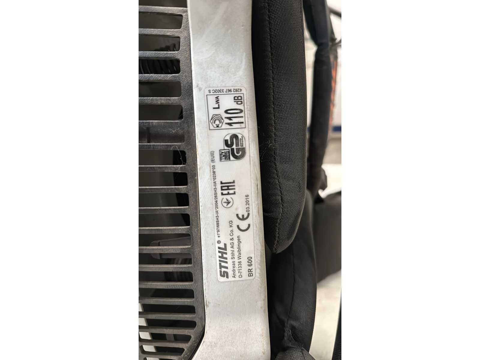 STIHL BR 600 Rugbladblazer; Professionele benzine-aangedreven bladblazer (rugmodel); Voorzien van ergonomisch draagharnas; robuuste behuizing en hoog luchtvermogen; LWA-geluidswaarde 110 dB(A); CE-gemarkeerd; Gebruikte staat met normale slijtage en visuele gebruikssporen; Geschikt voor intensieve inzet op terrein; groenonderhoud en bouwplaats; Merk: Stihl Type: BR 600 Brandstofmotor aangedreven: true Brandstof: Benzine