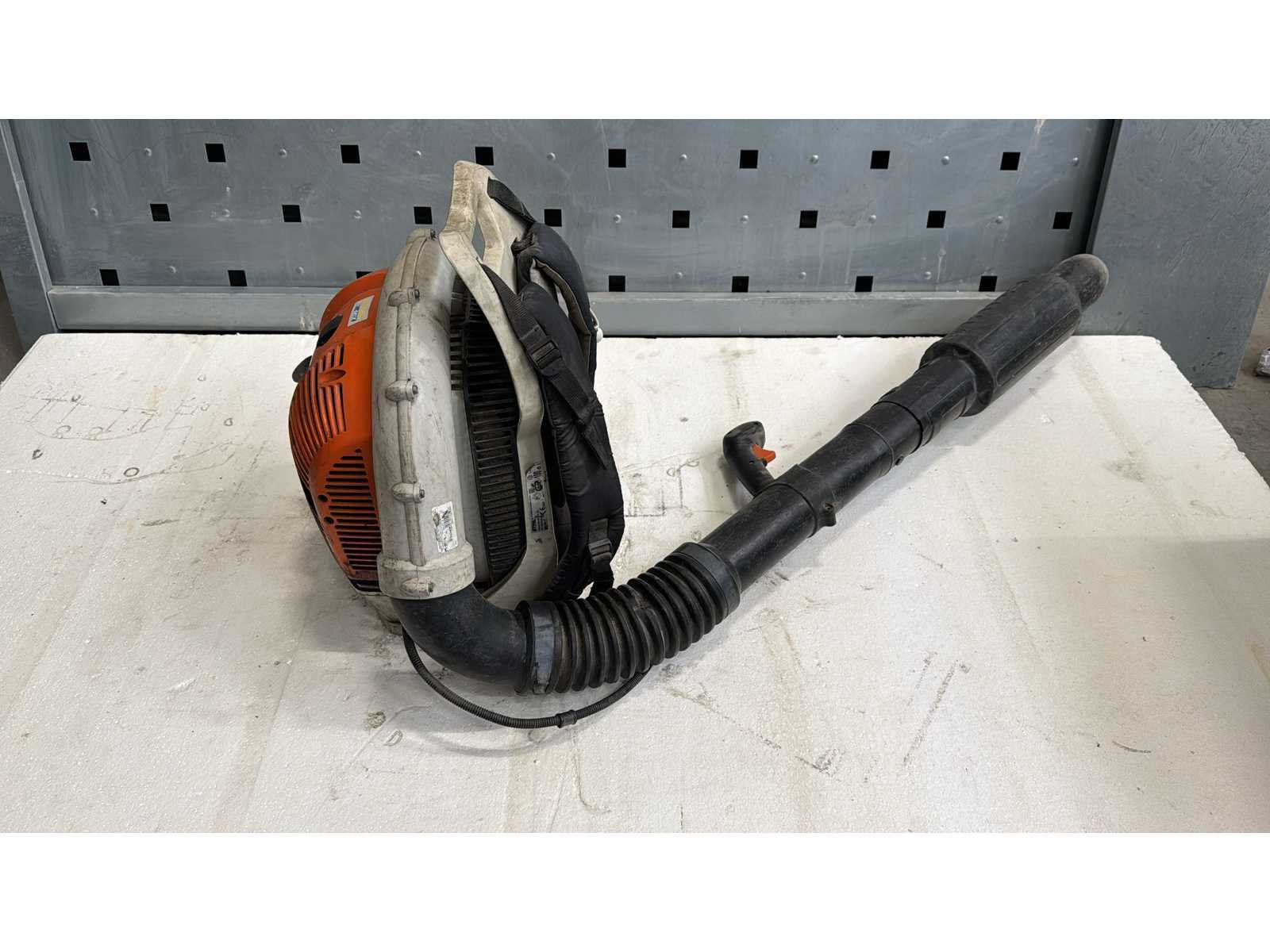 STIHL BR 500 Rugbladblazer; Benzine-aangedreven professionele rugbladblazer; CE-gemarkeerd (2007); Geluidsvermogen LWA 100–109 dB(A); Voorzien van draagharnas en stevige kunststof behuizing; Gebruikte staat met normale slijtage en vervuiling op frame/behuizing; Geschikt voor intensief groen- en terreinonderhoud; Merk: Stihl Type: BR 500 Brandstofmotor aangedreven: true Brandstof: Benzine