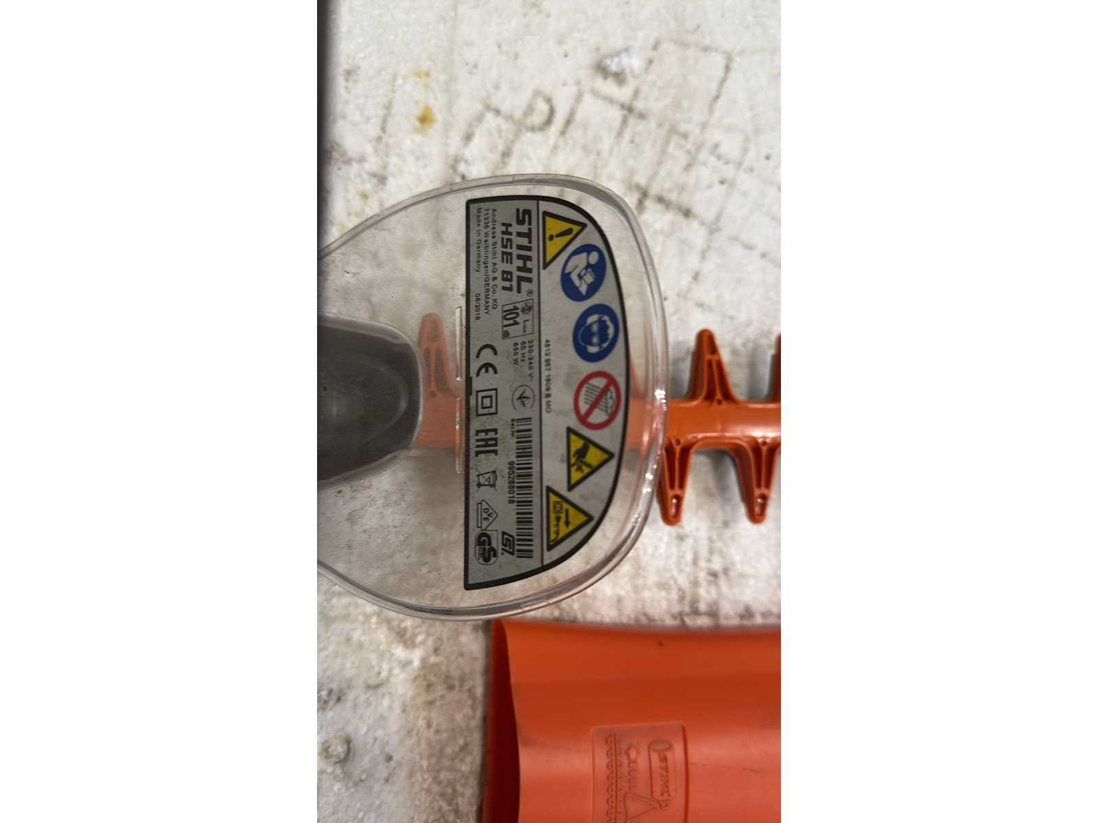 STIHL HSE 81 Elektrische Heggenschaar; Elektrische heggenschaar; model HSE 81; Voorzien van dubbelzijdig snijblad en handgreep; 230 V uitvoering, CE-gemarkeerd; Gebruikte staat met normale gebruiks- en slijtagesporen op behuizing en frame; Geschikt voor professioneel groenonderhoud en terreinbeheer; Merk: Stihl Type: HSE 18 Elektrisch aangedreven: true