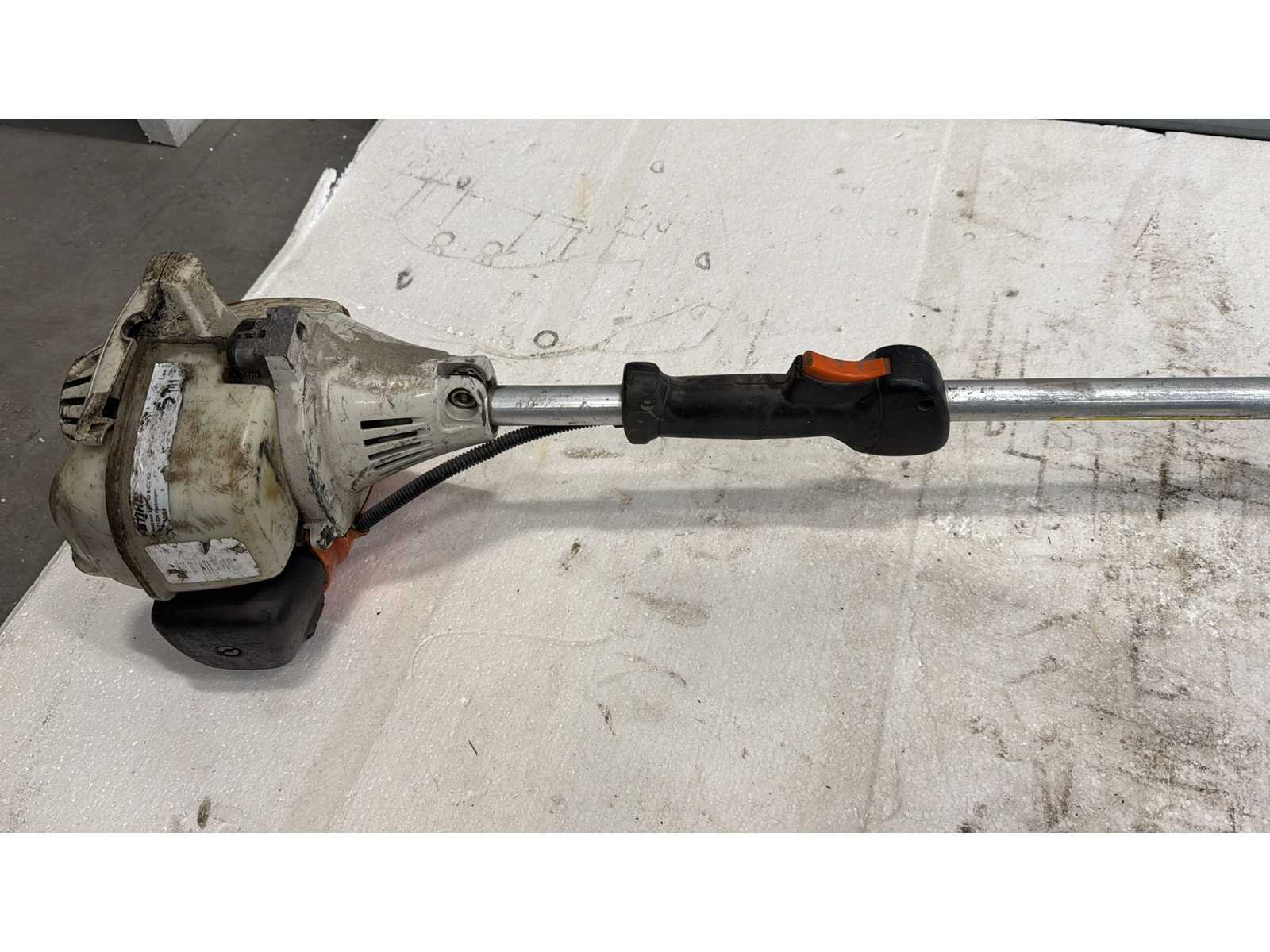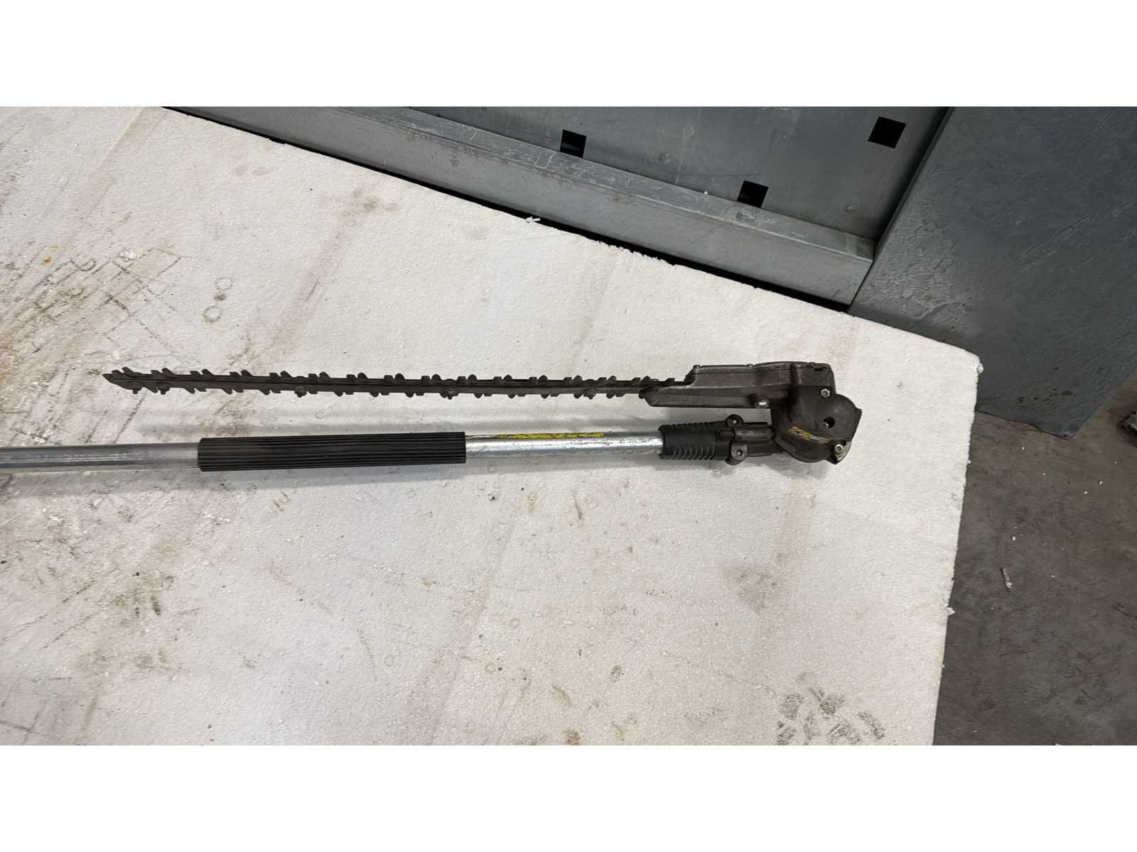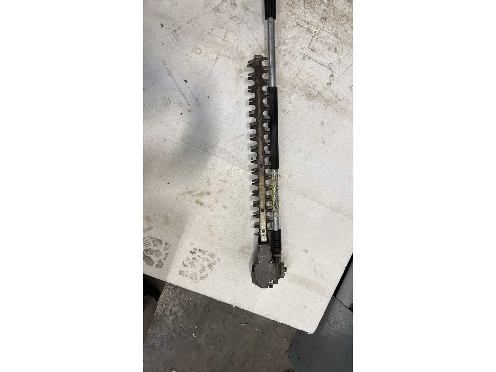 STIHL benzine Stok-heggenschaar; Snoerloze stok-heggenschaar met lang; dubbelzijdig snijblad en verstelbare kop; aluminium steel met bedieningshandgreep; Gebruikte staat met normale gebruiks- en slijtsporen CE-gemarkeerd; geschikt voor professioneel groenonderhoud; Merk: Stihl
