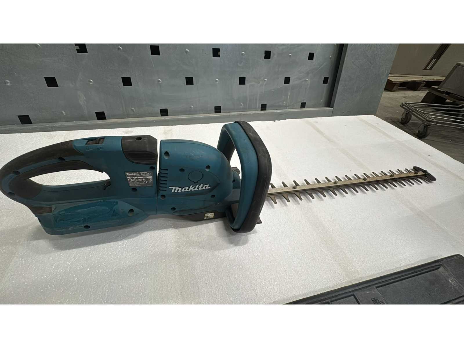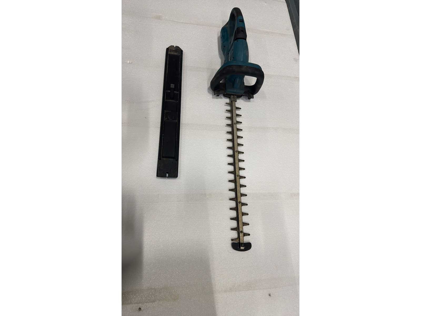 Accu Heggenschaar (zonder accu); Snoerloze heggenschaar op Li-ion accuplatform; Voorzien van dubbelzijdig snijblad; ergonomische handgreep en beschermbeugel; Geleverd zonder accu en lader; Gebruikte staat met normale visuele slijtage en vervuiling; Functioneel – inzetbaar voor groen- en terreinonderhoud; CE-markering en typeplaat aanwezig; Merk: Makita Type: DUH551 Elektrisch aangedreven: true