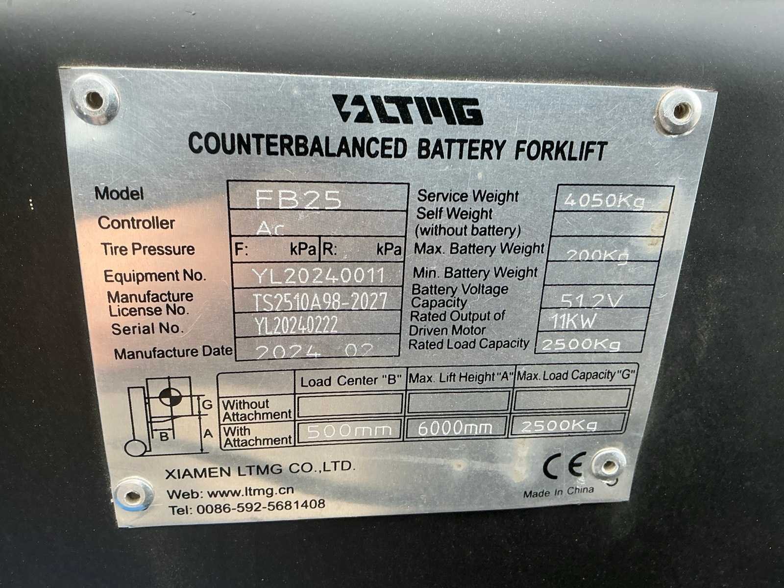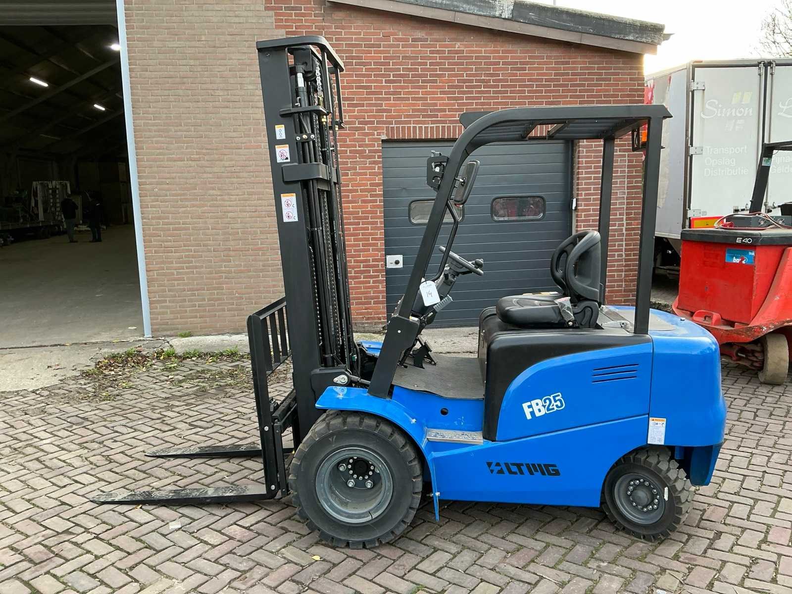 11Kw- 51.2V Merk: LTMG Type: FB25 Bouwjaar: 2024 Serienummer: YL20240222 Soort band: Volrubber banden Aantal wielen: 4 Accu lader: true Side-shift: true Triple mast: true Eigen gewicht: 4300kg Hefvermogen: 2500kg Lepellengte: 1070mm Max. hefhoogte: 6030mm Vol rubber banden: true Minimale doorrijhoogte: 2550mm Totale afmeting Breedte: 1600mm Totale afmeting Hoogte: 2550mm