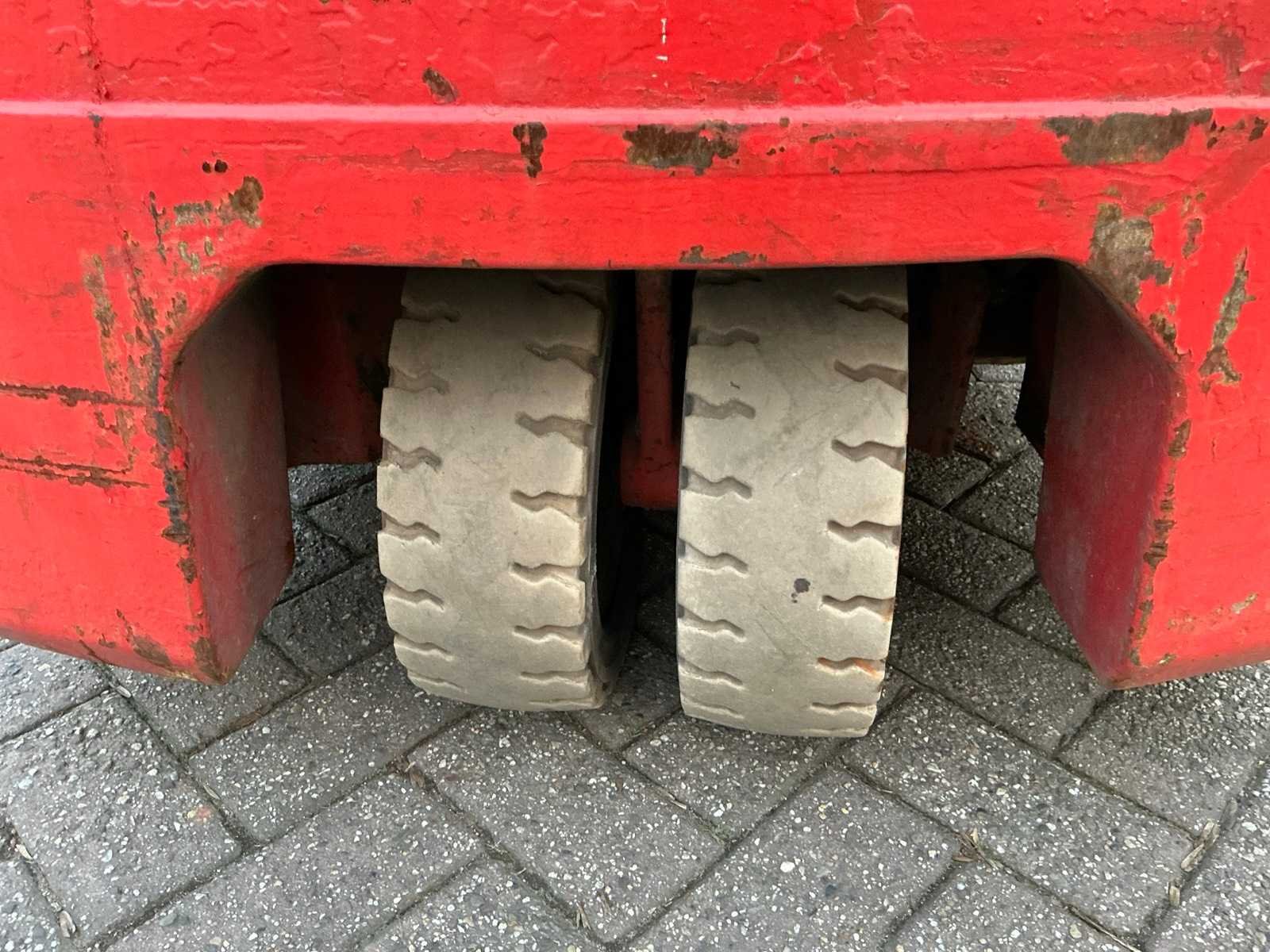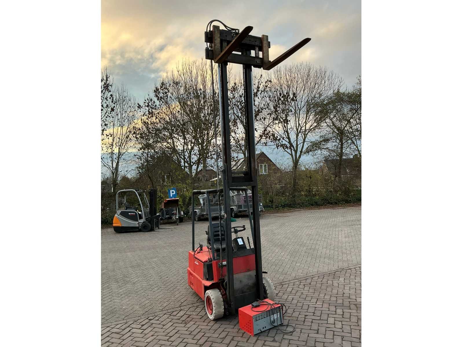 24V, incl lader Merk: LINDE Type: E15 Bouwjaar: 1991 Soort band: Volrubber banden Aantal wielen: 3 Afgelezen urenstand: 34377 Accu lader: true Side-shift: true Duplex mast: true Hefvermogen: 1500kg Lepellengte: 1100mm Max. hefhoogte: 3750mm Vol rubber banden: true Minimale doorrijhoogte: 2300mm Totale afmeting Hoogte: 2300mm