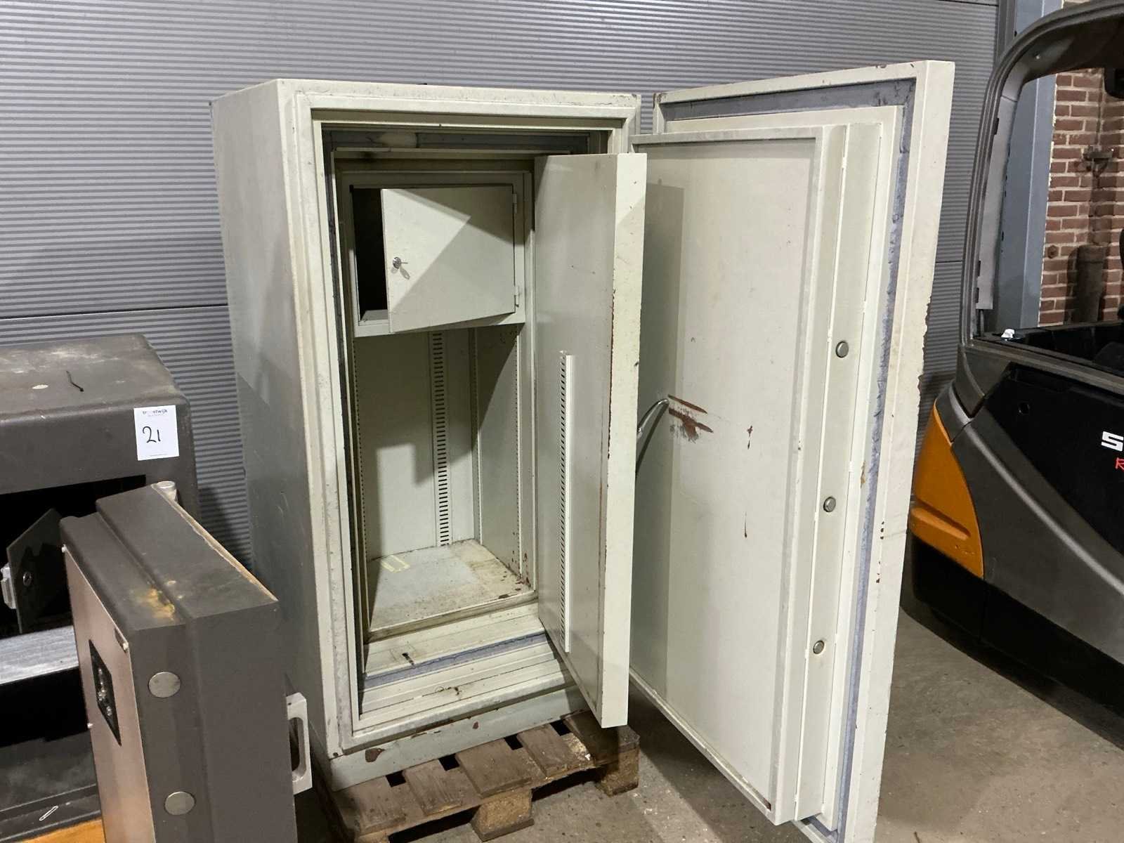 Voorzien van sleutel, wanddikte 16cm Lengte: 90cm Breedte: 87cm Hoogte: 167cm