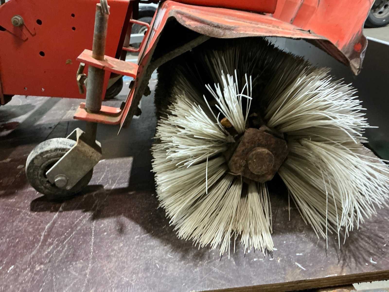 Voorzien van 3 instelbare snelheden en een achteruit Merk: GUTBROD Type: PUMA600 Diameterborstel: 350mm Eigen gewicht: 200kg Totale afmeting L: 2000mm Totale afmeting Breedte: 800mm Totale afmeting Hoogte: 1200mm