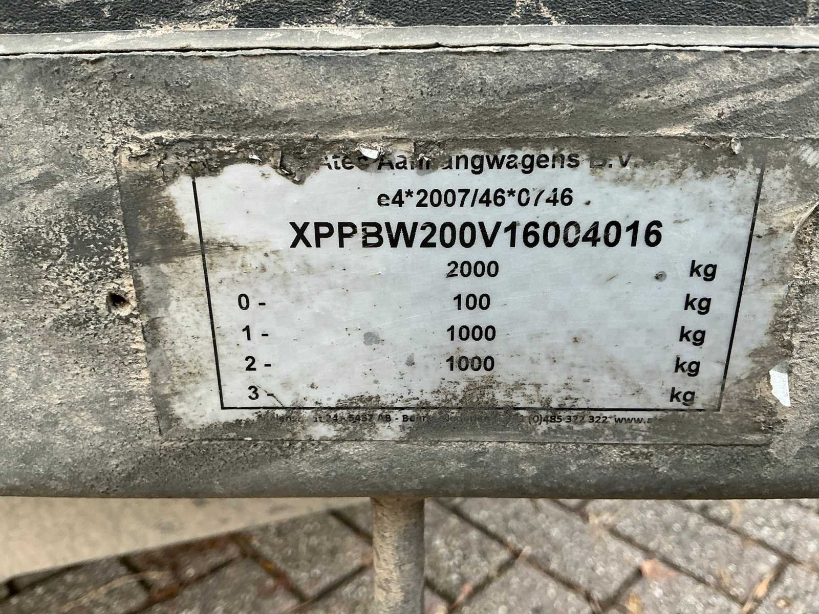 Merk: Atec Bouwjaar: 2016 Chassisnummer: XPPBW200V16004016 Aantal assen: 2 Laadbak afmeting l: 300cm Laadbak afmeting b: 128cm Ledig gewicht: 460kg Laadvermogen: 1540kg Datum eerste toelating: 2016-07-29 Datum eerste toelating (NL): 2016-07-29 Kenteken: 86-WP-GS Hoogte: 145cm Lengte: 460cm Breedte: 180cm Nationaliteit documenten: Nederland Zelf rijdend exporteren: Mogelijk