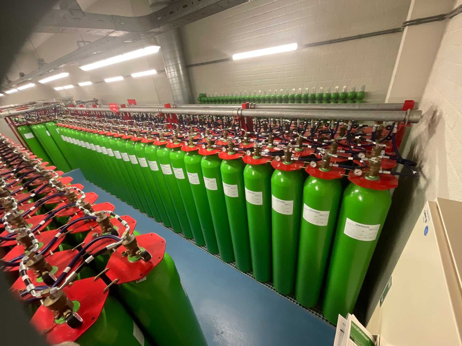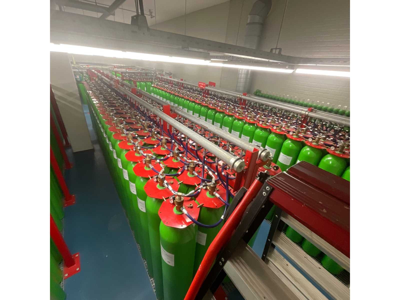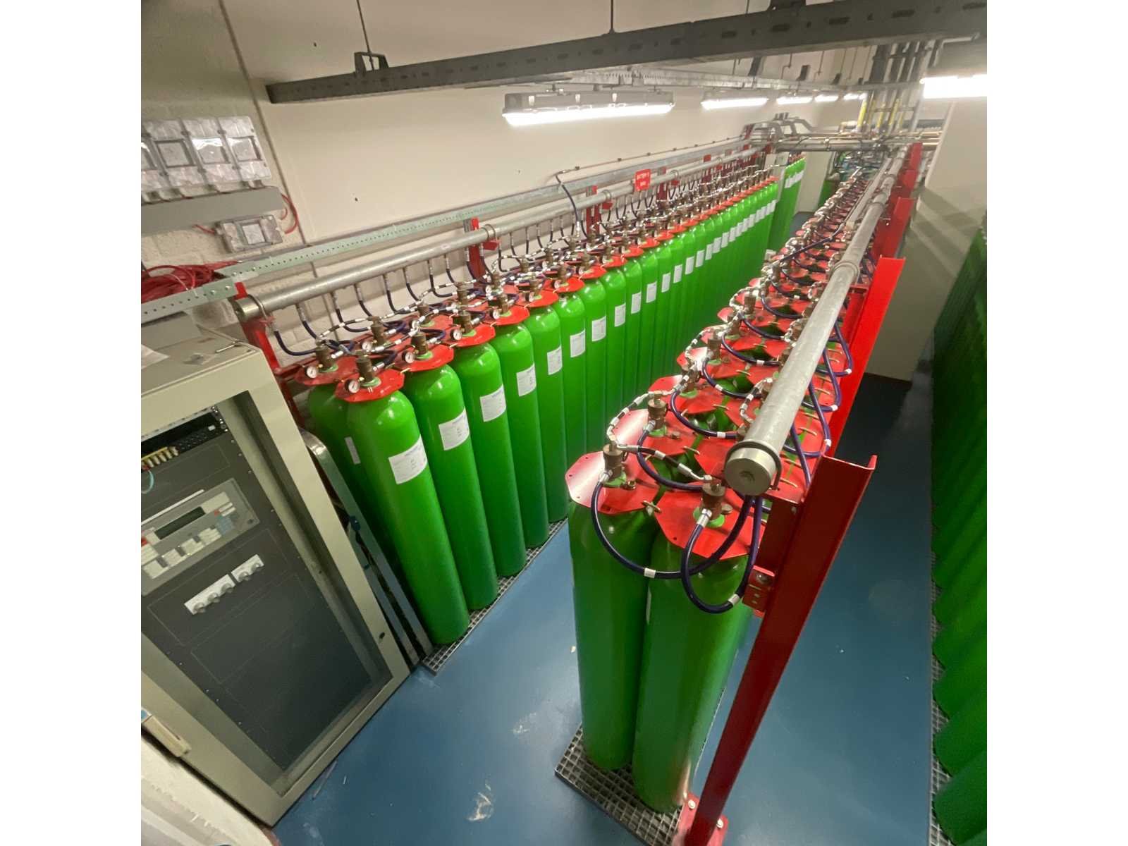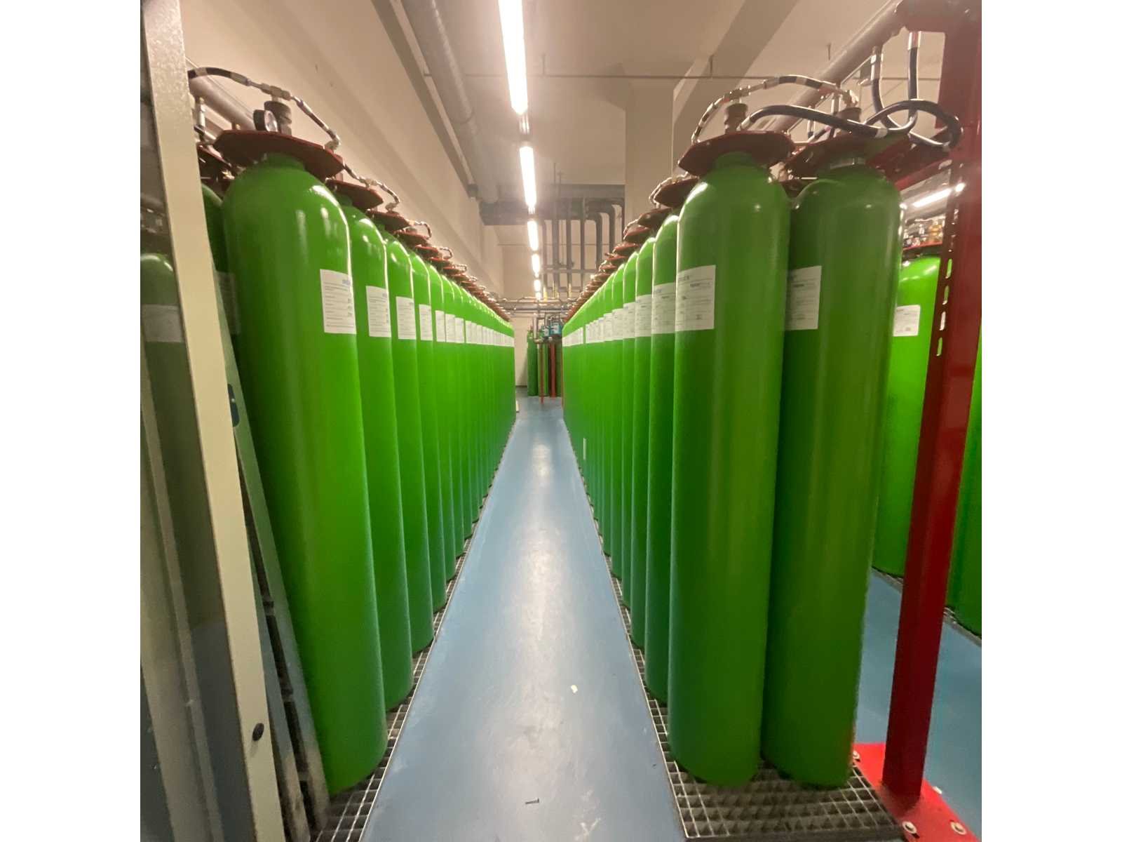 516 stuks cylinders met een volume van 80 ltr.; 103 kg. Leeg gewicht per fles; alles in ruimte SK2 MT15 technical room is inclusief; demontage en laden is voor rekening koper. Merk: Siemens Model: Cerberus CT11