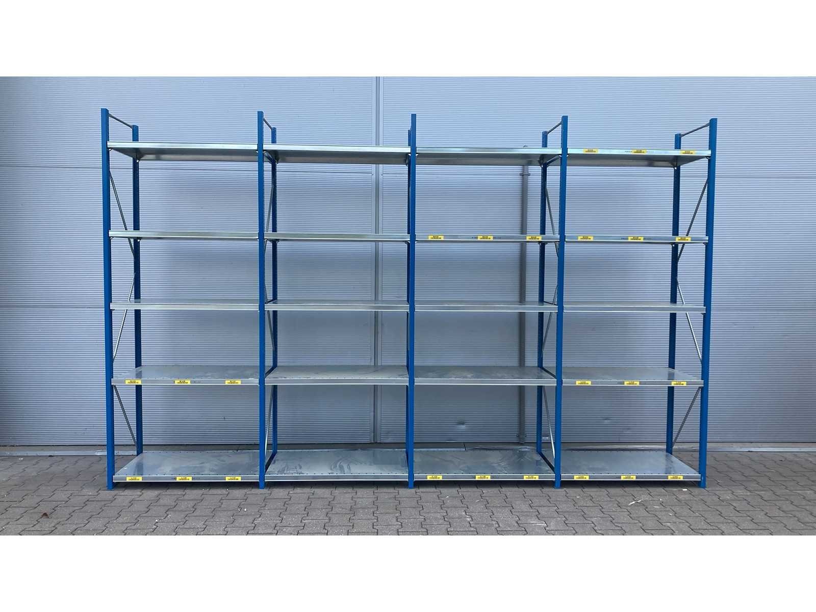 5x staander 2000x600mm; 32x legbord 1200x600mm; gebundeld; gebruikt; staanders kunnen blauw of gegalvaniseerd zijn; staanders kunnen open of dicht zijn; Merk: Nedcon Aantal secties: 4 Sectie afm. b: 1200mm Sectie diepte: 600mm Sectie afm. h: 2000mm Aantal staanders: 5 Aantal legborden: 32 Demontabel: true