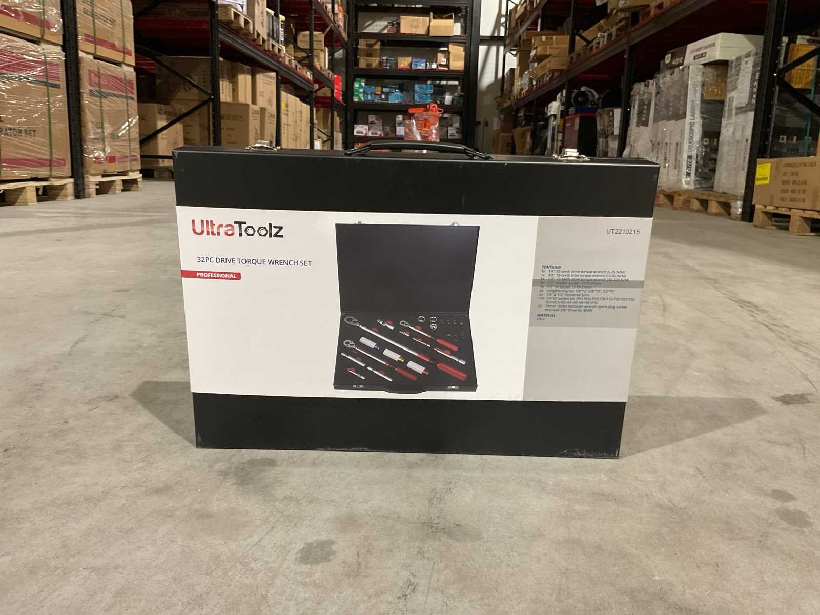 Voorzien van 3 verschillende momentsleutels; inclusief diverse hulpstukken, doppen en bitjes; ongebruikt in doos (transport afmetingen 50x40x10 cm, gewicht 7 kg) Merk: UltraToolz Type: 32 pcs Bouwjaar: 2025 Opname: 1/2, 3/8, 1/4'' Draaimoment van: 5N Draaimoment tot: 220N