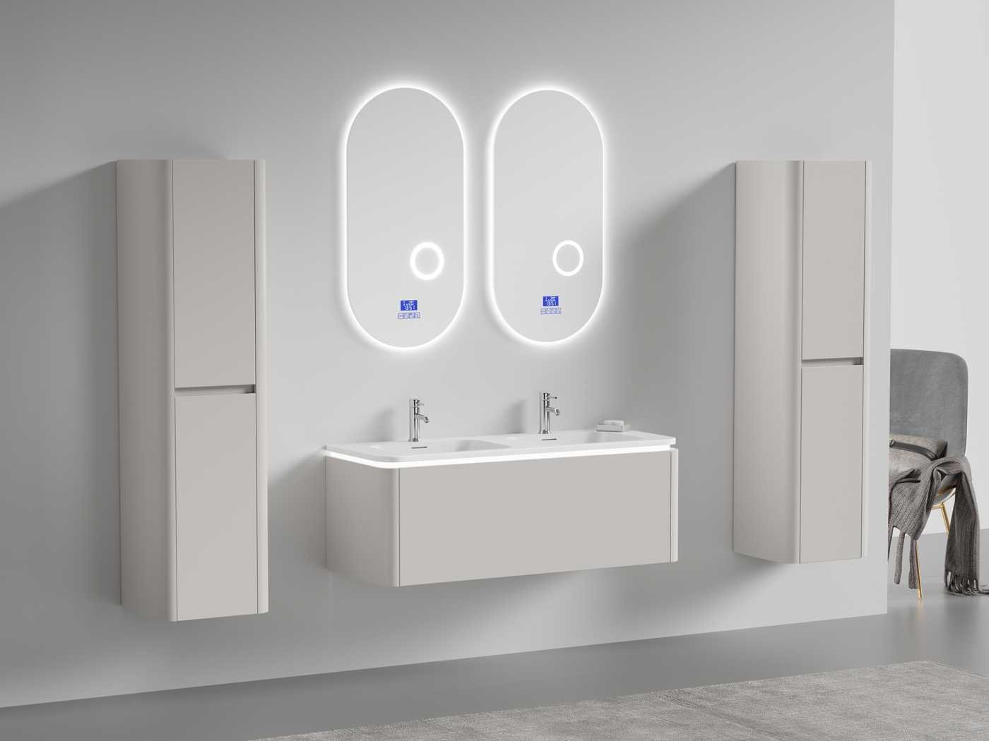 Type: BOSTON1202-TA. Afmetingen Complete set: 1 * Wastafelmeubel - 1200x455x400mm, 1 * Dubbele wasbak - 1205x460x190mm, 2 * Zijkast - 1500x350x350mm, 2* Spiegel- 450x900mm. Voorzien van: LED verlichting in onderkast - 2 kranen inclusief pop-up afvoer – 1 lade met 2 opbergvakken - Softclose lade systeem - LED spiegels met anti-fog systeem - Voorgemonteerde zijkasten en wastafelmeubel. Bezorgtermijn 14 dagen Merk: Vonato Model: Tilda 120 Product type: 2-Persoons 120 cm Hoogte: 40cm Lengte: 46cm Materiaal: Melamine, MDF, metaal Kleur: Taupe Kraan: Inclusief 2 kranen Wastafel: Inclusief dubbele wastafel Waskom: 0 Spiegelkast: Nee Spiegel: Ja Spiegel met verlichting: Ja Verlichting: Ja Onderkast: Ja Lades: 1 Bevestigingsmateriaal: Ja