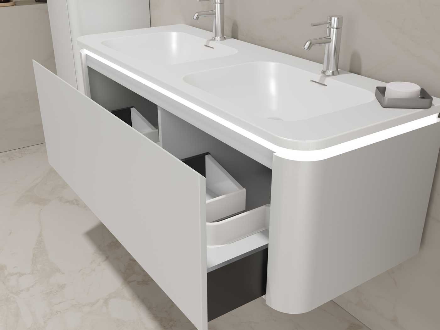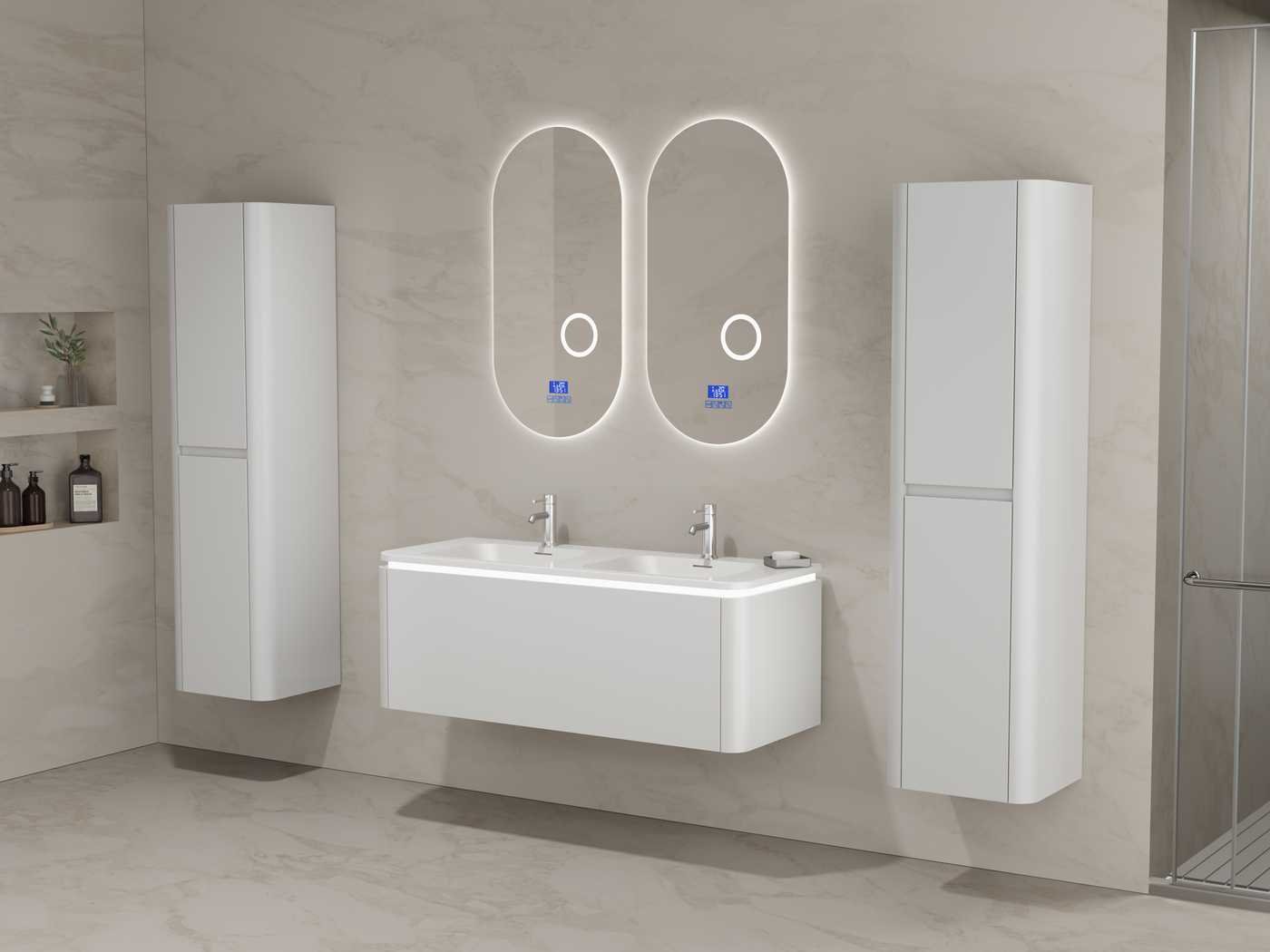 Type: BOSTON1202-WH. Afmetingen Complete set: 1 * Wastafelmeubel - 1200x455x400mm, 1 * Dubbele wasbak - 1205x460x190mm, 2 * Zijkast - 1500x350x350mm, 2* Spiegel- 450x900mm. Voorzien van: LED verlichting in onderkast - 2 kranen inclusief pop-up afvoer – 1 lade met 2 opbergvakken - Softclose lade systeem - LED spiegels met anti-fog systeem - Voorgemonteerde zijkasten en wastafelmeubel. Bezorgtermijn 14 dagen Merk: Vonato Model: Lumi 120 Product type: 2-Persoons 120 cm Hoogte: 40cm Lengte: 46cm Materiaal: Melamine, MDF, metaal Kleur: Wit Kraan: Inclusief 2 kranen Wastafel: Inclusief dubbele wastafel Waskom: 0 Spiegelkast: Nee Spiegel: Ja Spiegel met verlichting: Ja Verlichting: Ja Onderkast: Ja Lades: 1 Bevestigingsmateriaal: Ja