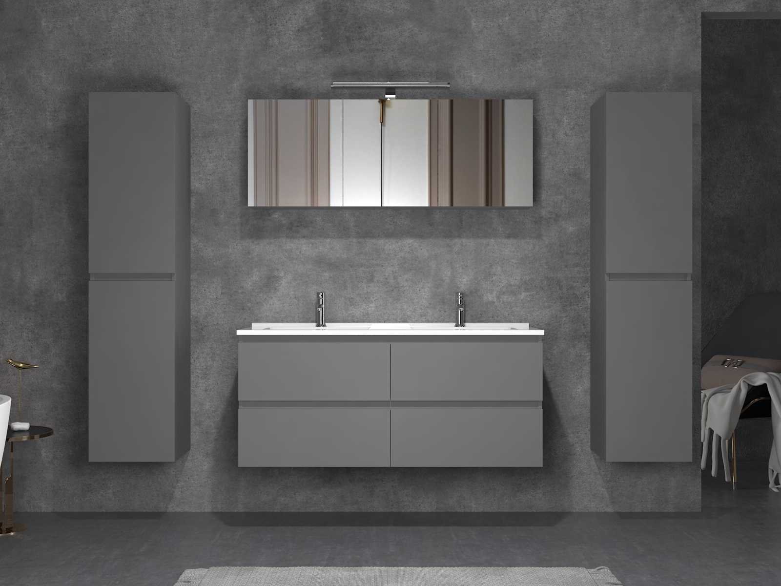 Type: HAVIKLUXWM-2-120-ANT. Model: 2-persoons badkamermeubel 120 cm - hoogglans antraciet met witte wasbak. Afmeting: 2-persoons set: 1 * Wastafelmeubel - 1200x455x520mm, 1 * Dubbele wasbak – 1200x460x160mm (rand 2 cm), 2 * Zijkasten - 1500x350x350mm, 1 * Spiegelkast - 1200x450x180mm. Voorzien van: Kranen inclusief pop-up drain – 4 lades - Softclose systeem op deurtjes en lades - Giethars wasbakken – LED verlichting boven de spiegel – Spiegelkast met 3 deurtjes en 2 planken - Voorgemonteerde zijkasten en wastafelmeubel. Bezorgtermijn 14 dagen Merk: Vonato Model: Modular 3 Product type: 2-Persoons 120 cm Hoogte: 45cm Lengte: 52cm Materiaal: 18 mm MFC Kleur: Hoogglans antraciet Kraan: Inclusief 2 kranen Wastafel: Inclusief dubbele wastafel Waskom: 0 Spiegelkast: Ja Spiegel: Ja Spiegel met verlichting: 0 Verlichting: Ja Onderkast: Ja Lades: 4 Bevestigingsmateriaal: Ja