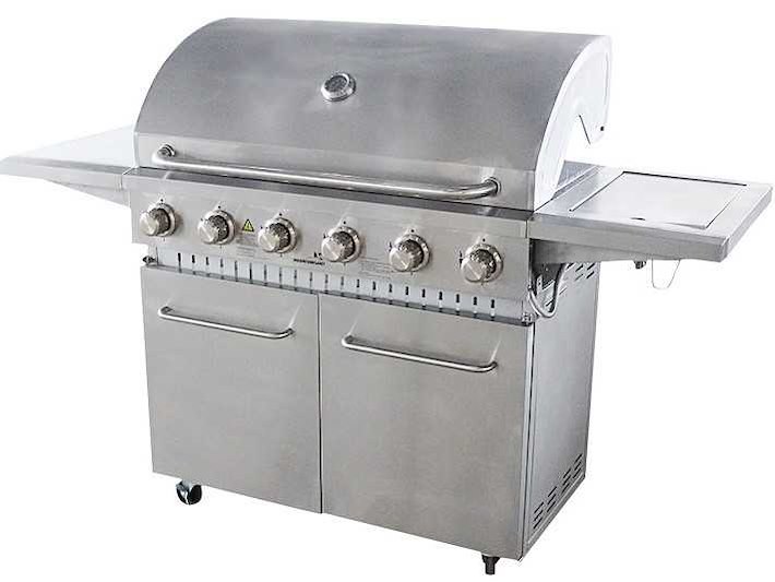 Type: JF006. Model: RVS Gasbarbecue - 6 branders. Voorzien van: 6 Hoofdbranders en 1 zijbrander - Gietijzeren rooster met warmhoudrek en leklade - Elektrische ontsteking - Opbergruimte met deurtjes - Plankje - Deksel voorzien van thermometer - Verrijdbaar. Bezorgtermijn 14 dagen Merk: Vonato Model: RVS Traditionele Grill Elite 6 Product type: 6 branders Kleur: Zilverkleurig, RVS (mat) Lengte: 175cm Hoogte: 120cm Materiaal: RVS