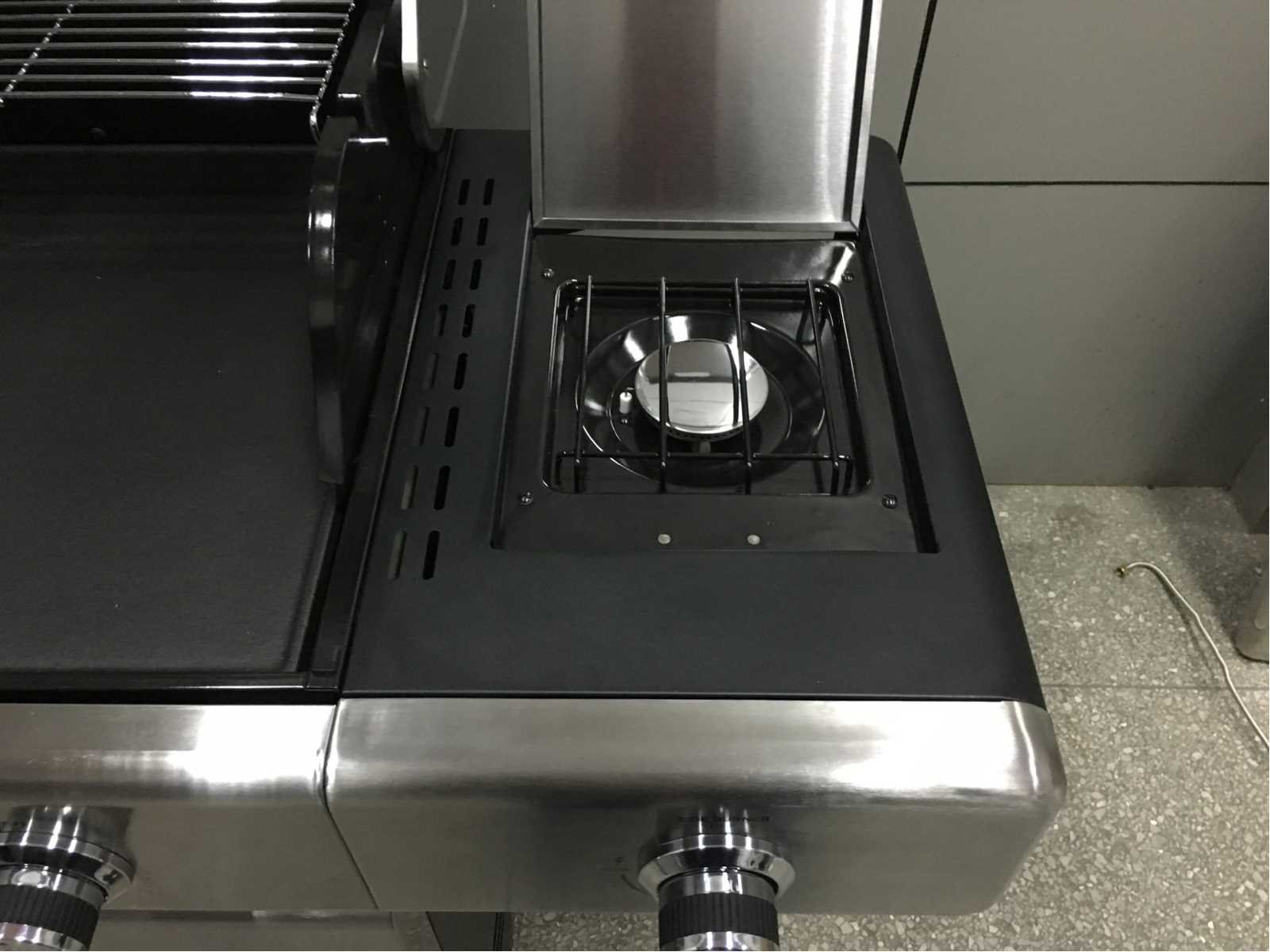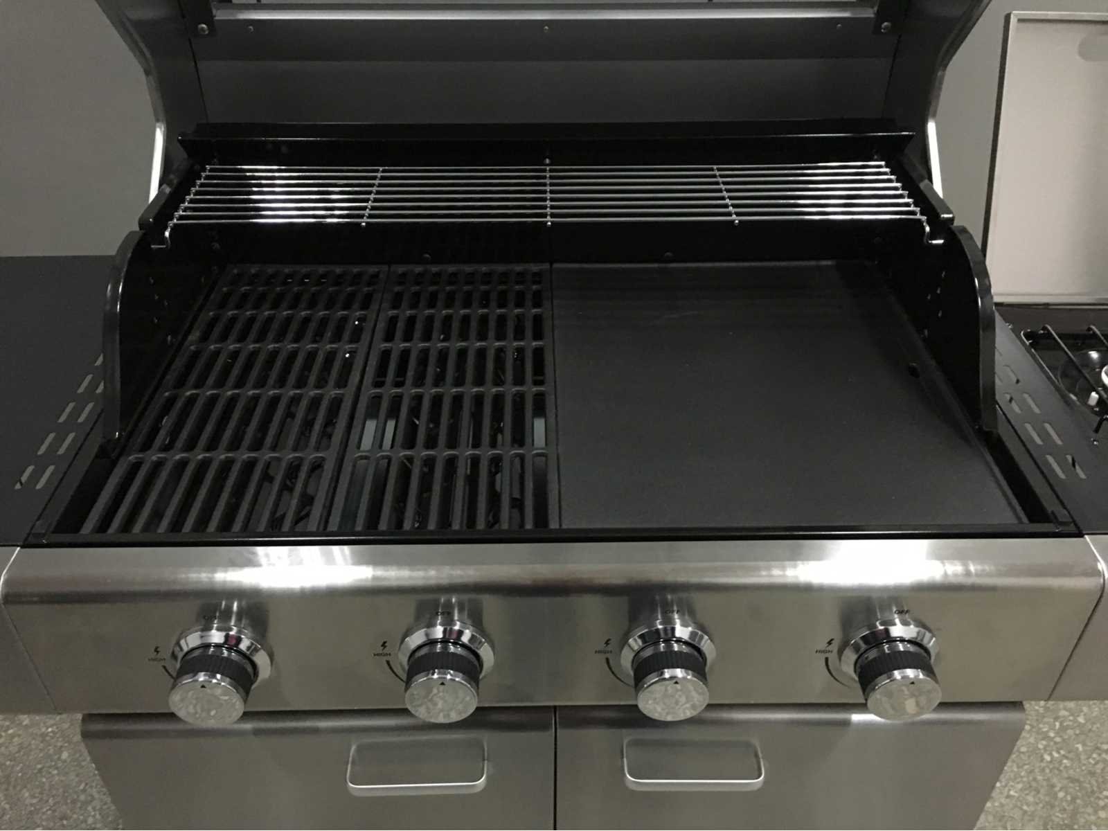 Type: SYDNEY-4B. Model: RVS Gasbarbecue - 4 branders met zijbrander. Grilloppervlak: 805x485mm. Voorzien van: 4 Hoofdbranders en 1 zijbrander - Gietijzeren rooster - Gietijzeren kookplaat - Elektrische ontsteking - Deksel voorzien van thermometer en glazen venster - Wieltjes waarvan 2 met rem - Twee deuren. Bezorgtermijn 14 dagen Merk: Vonato Model: RVS Sydney Grill Deluxe 4 Product type: 4 branders Kleur: Zilverkleurig Lengte: 625cm Hoogte: 120cm Materiaal: RVS BBQ, Gietijzeren rooster, Gehard glas in deksel