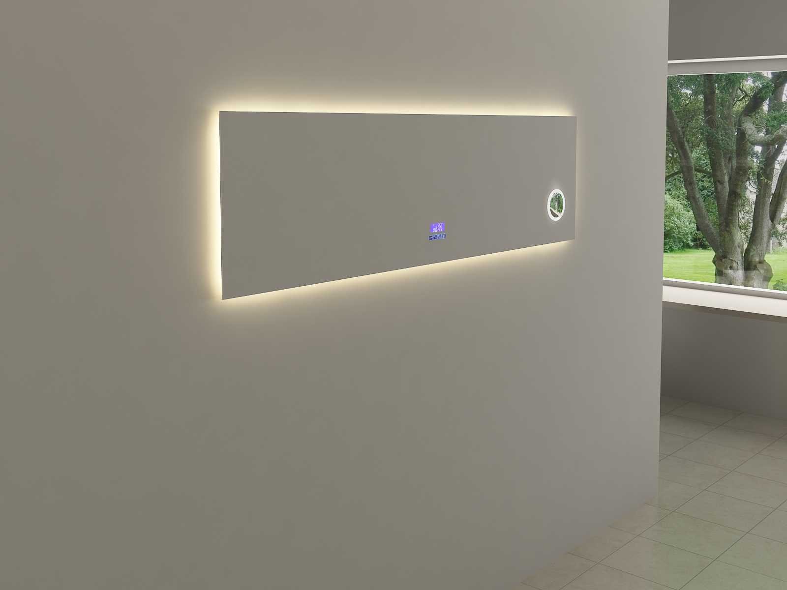 Type: RALM-180 Voorzien van: Touch bediening via digitaal display – LED verlichting in 3 kleuren, dimbaar – Bluetooth & speakers – Digitale klok – Digitale temperatuurmeter – 220 volt aansluiting – Anti-fog technologie door verwarming in de spiegel – Vergrootglas (vergroot 3x) in de spiegel Ø10 cm - Kopervrije spiegel - 1,5mm explosieveilige laag aan de achterkant. Bezorgtermijn 14 dagen Merk: Vonato Model: Lorenta Product type: met LED verlichting Kleur: LED verlichting in 3 kleuren; geel, blauw en wit Lengte: 0cm Hoogte: 50cm Materiaal: 0