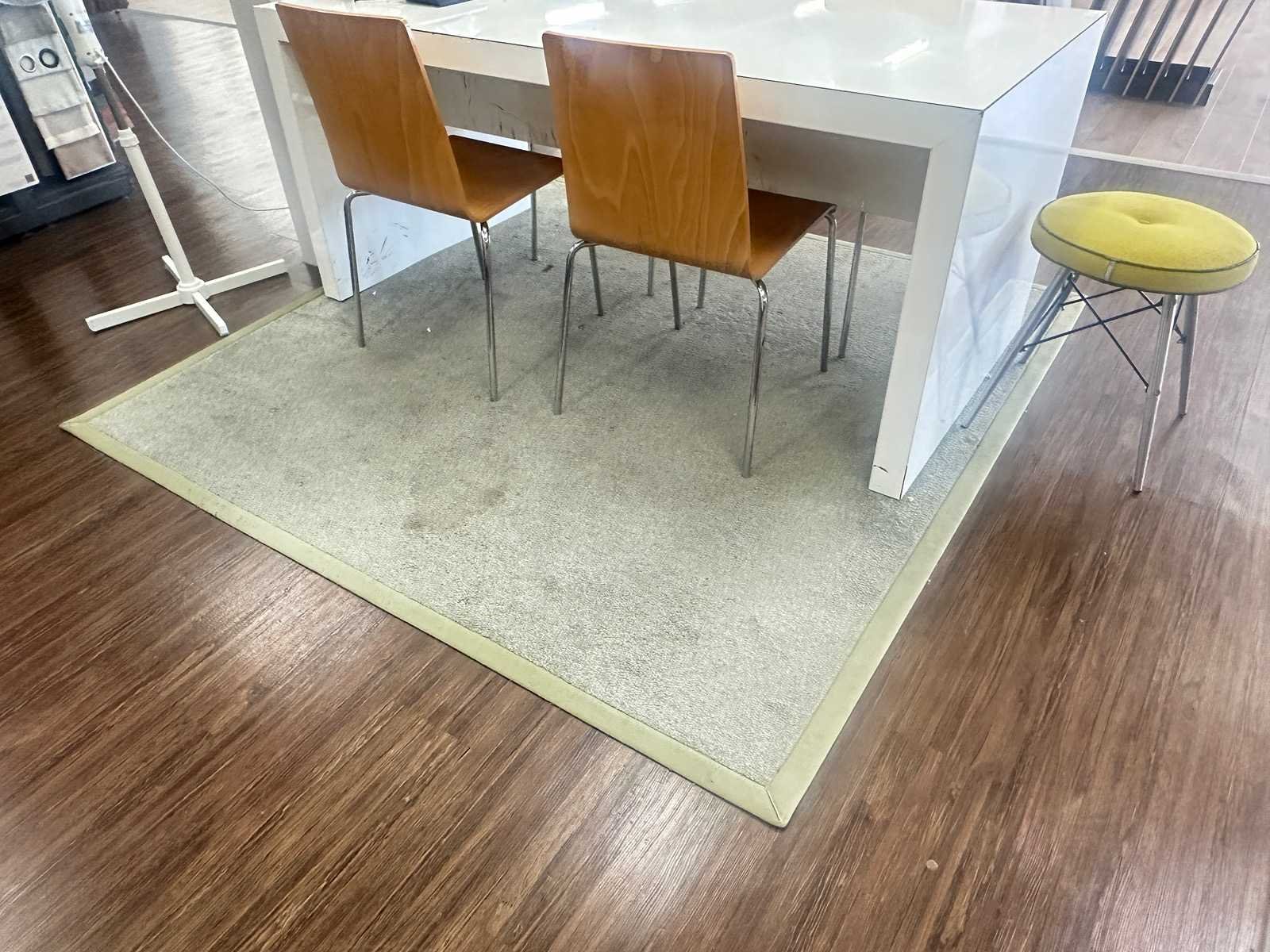 Dit kavel bestaat uit een gefineerde witte tafel met 4 houten stoelen en een kruk van Xooon. De zithoogte van de stoel is 41 cm. Inclusief vloerkleed. Totale afmeting L: 1800mm Totale afmeting Breedte: 900mm Totale afmeting Hoogte: 780mm