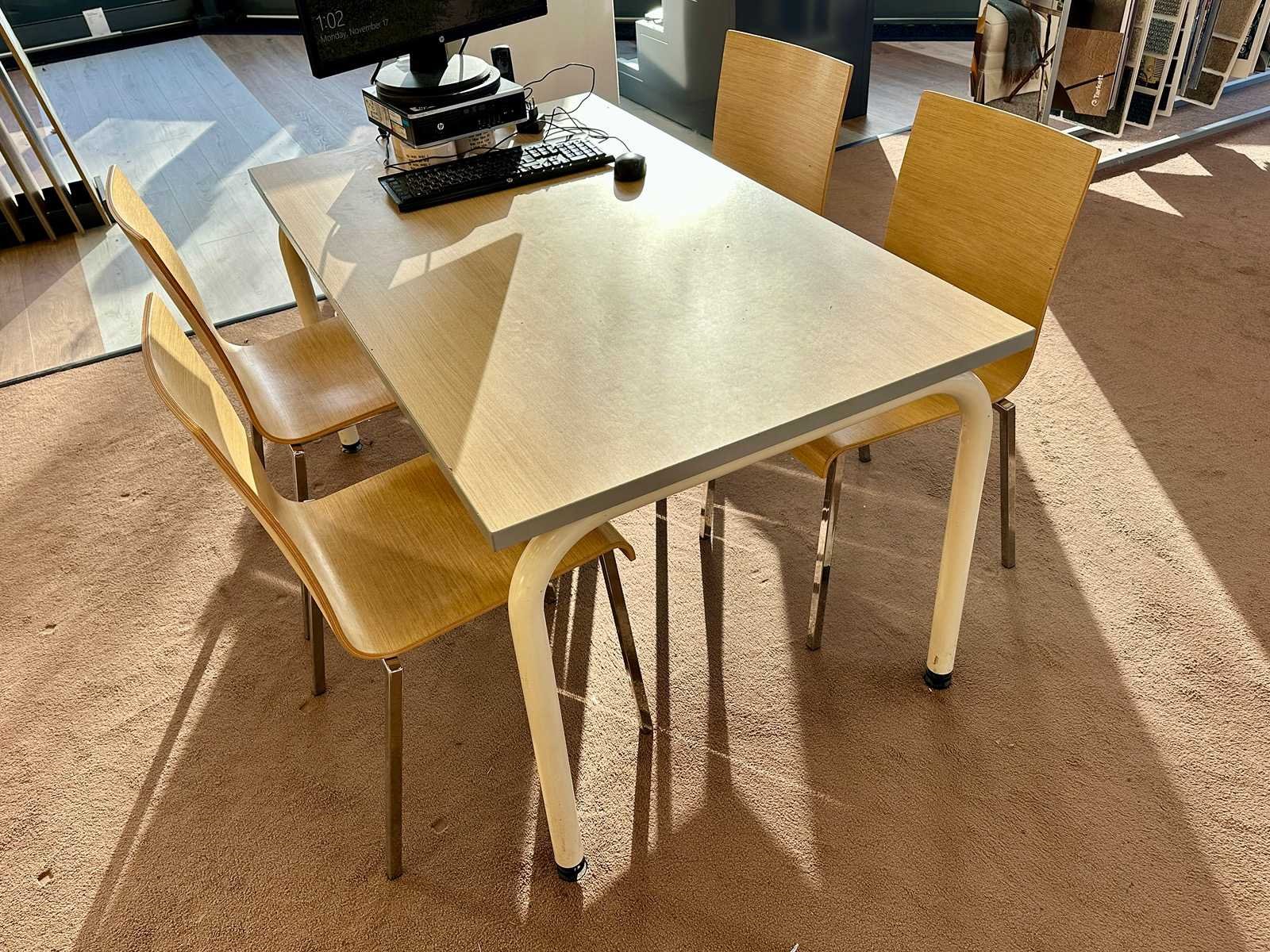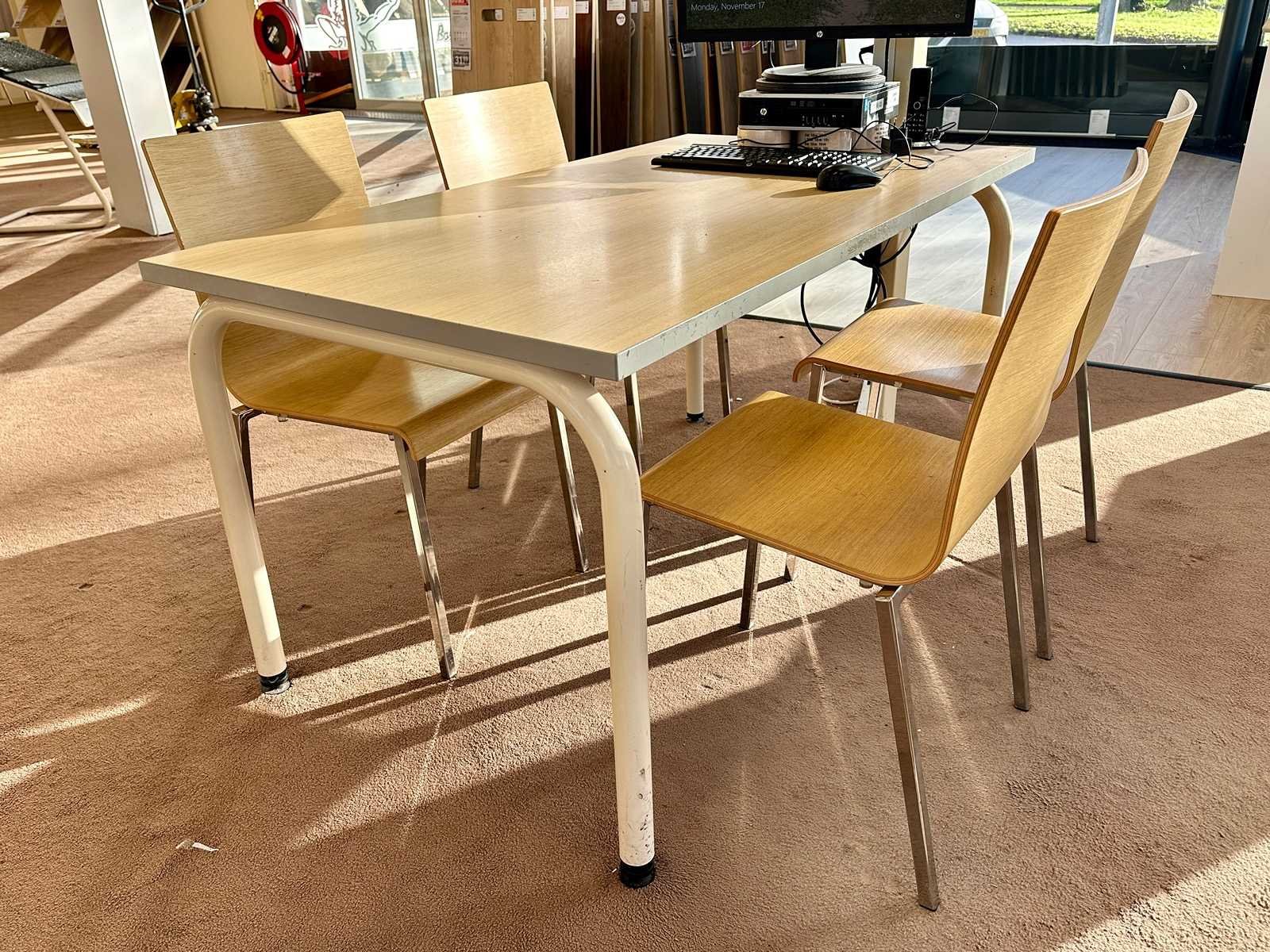 Deze stoelen van Pedrali met houten zitting hebben een zithoogte van 44 cm. Exclusief Monitor en toetsenbord. Afmeting l: 1400mm Afmeting b: 800mm Afmeting h: 720mm