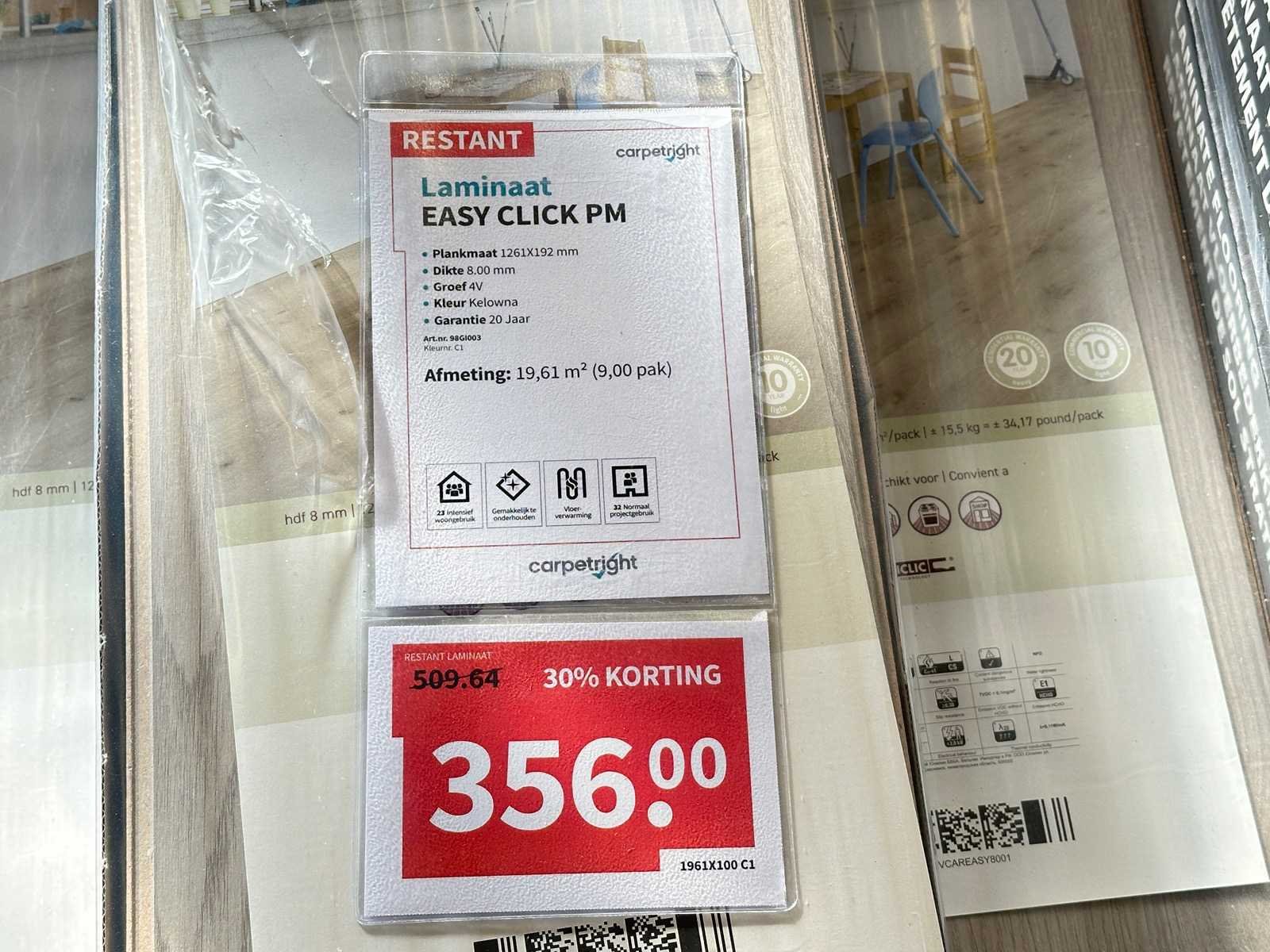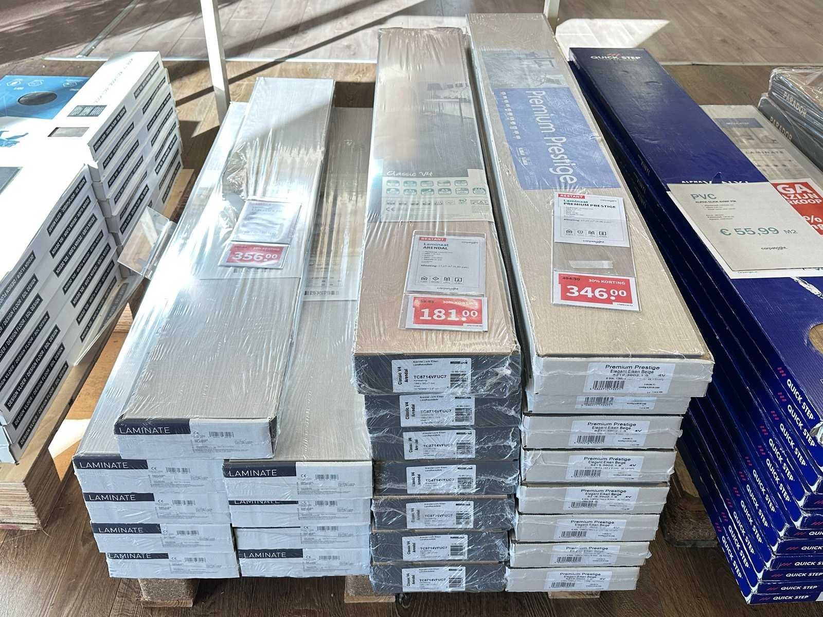Deze partij bestaat uit circa 62 verpakkingen met verschillende soorten laminaat en diverse kleuren.