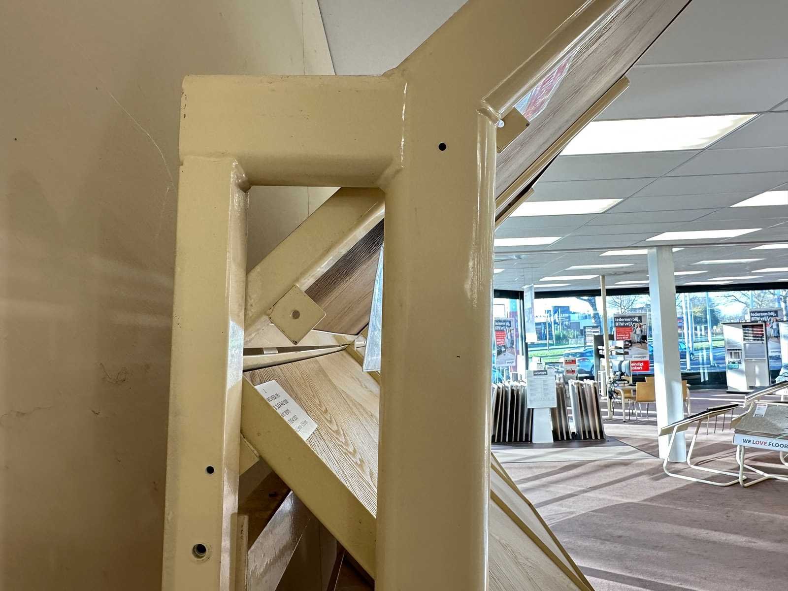 Lengte: 2560cm Breedte: 560cm Hoogte: 2470cm Materiaal: Staal en hout