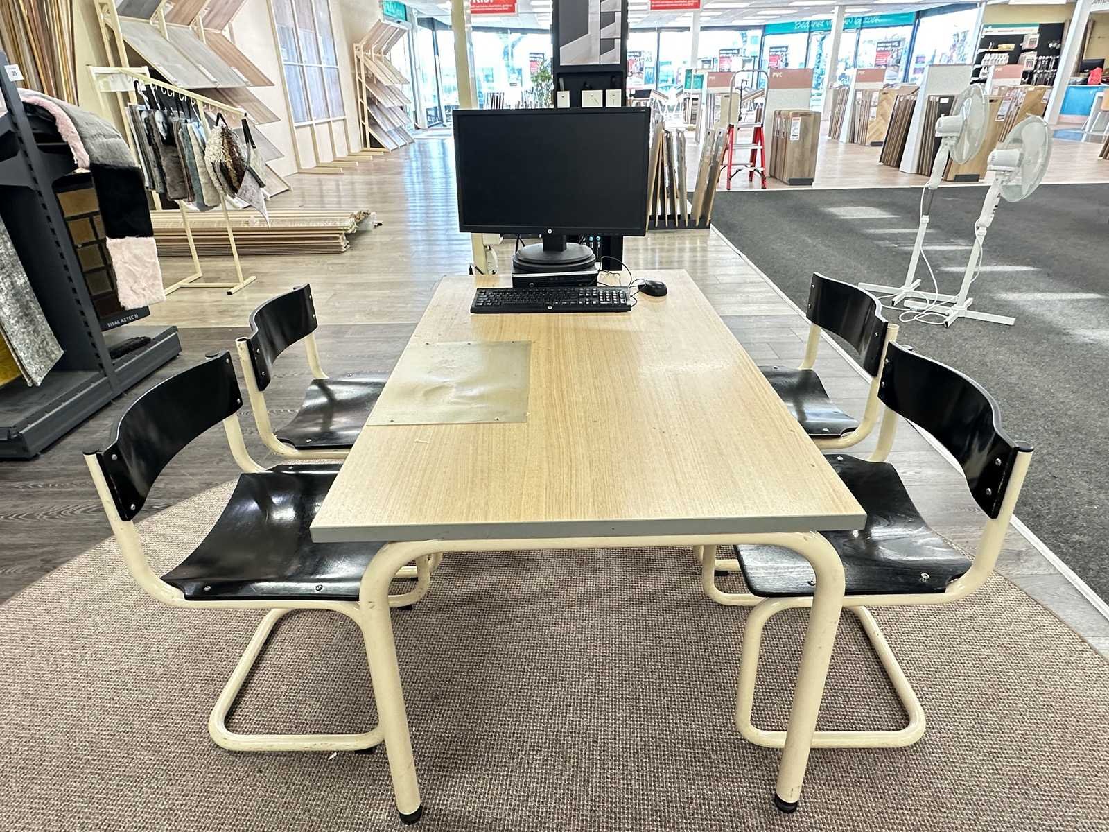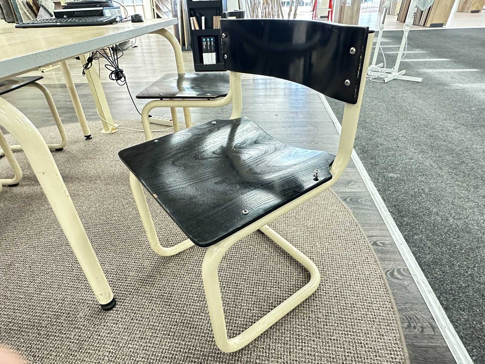 Zithoogte van deze stoelen is 46 cm. Exclusief PC. Lengte: 140cm Breedte: 80cm Hoogte: 72cm
