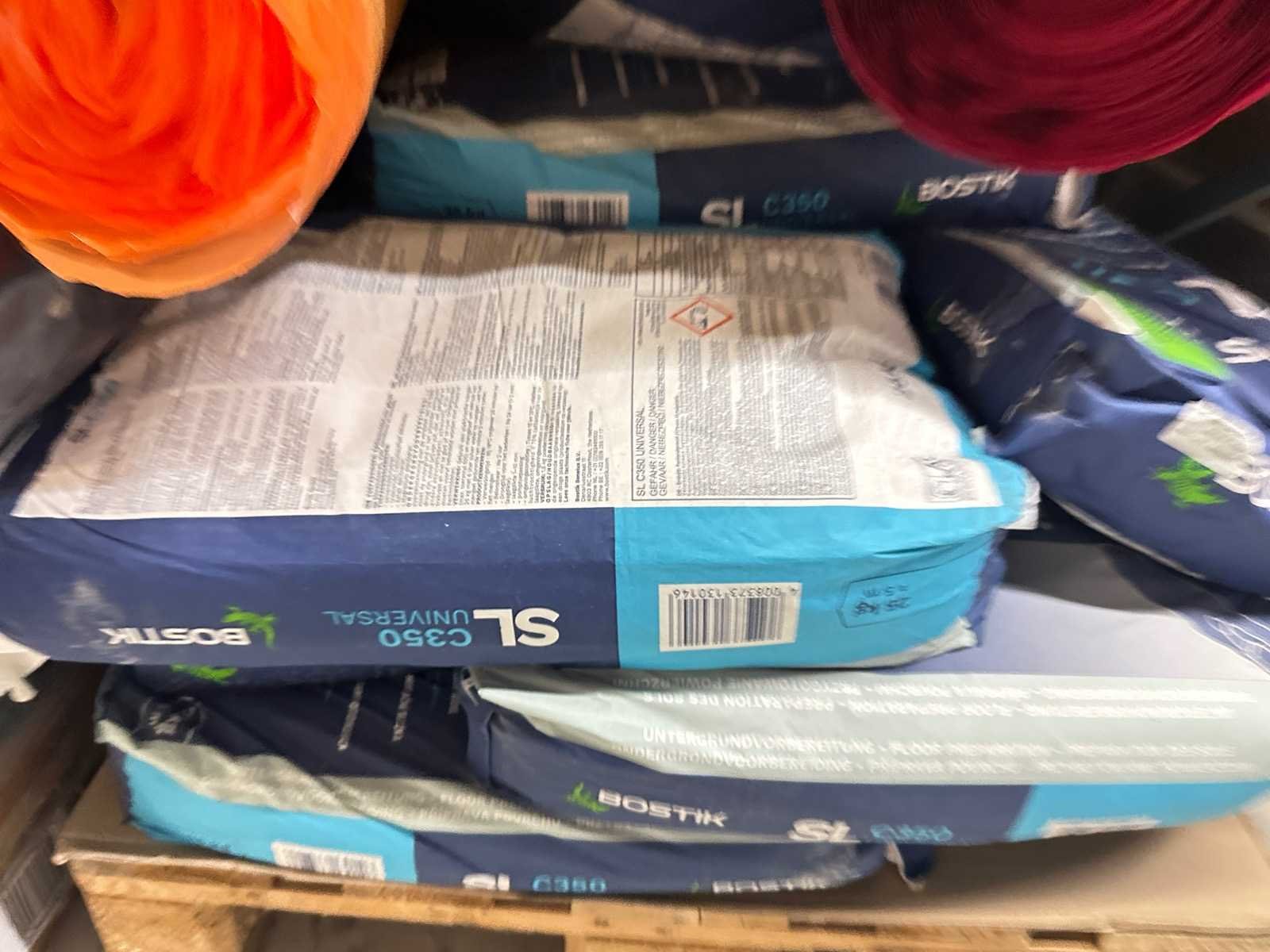 Dit kavel bestaat uit de inhoud van deze stelling, vloerdelen, ondervloeren en zakken Bostik.