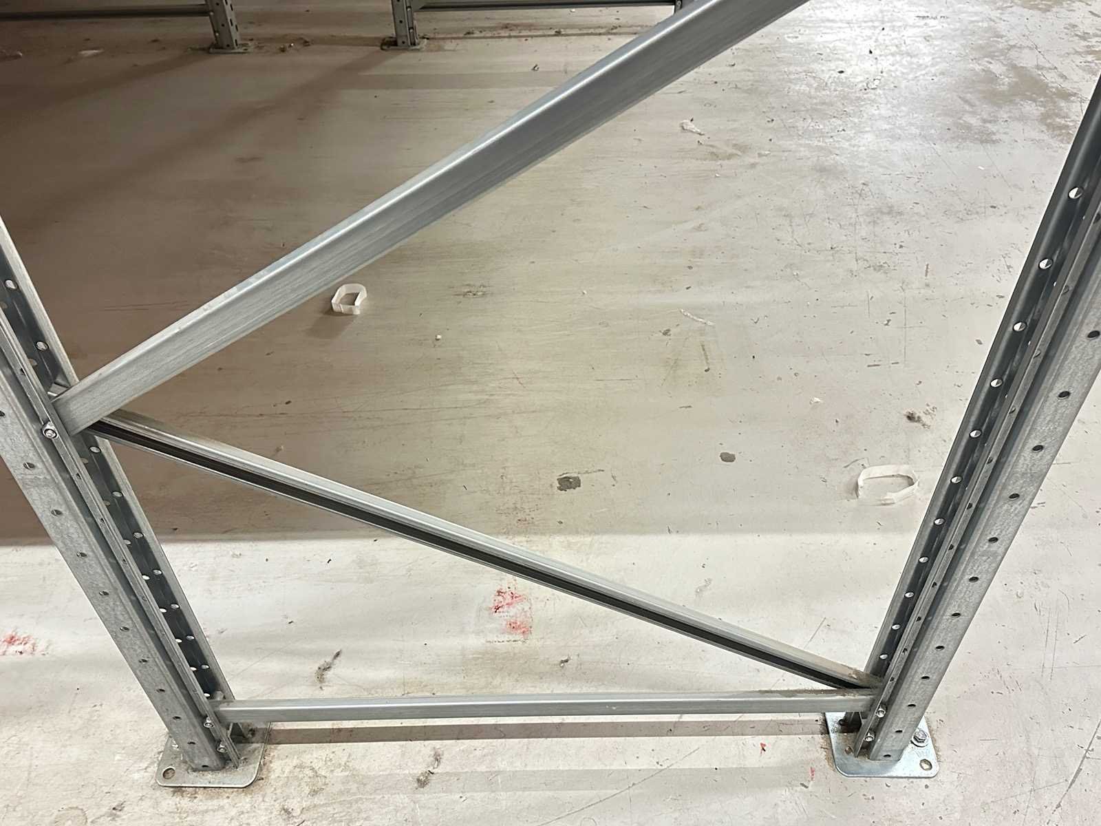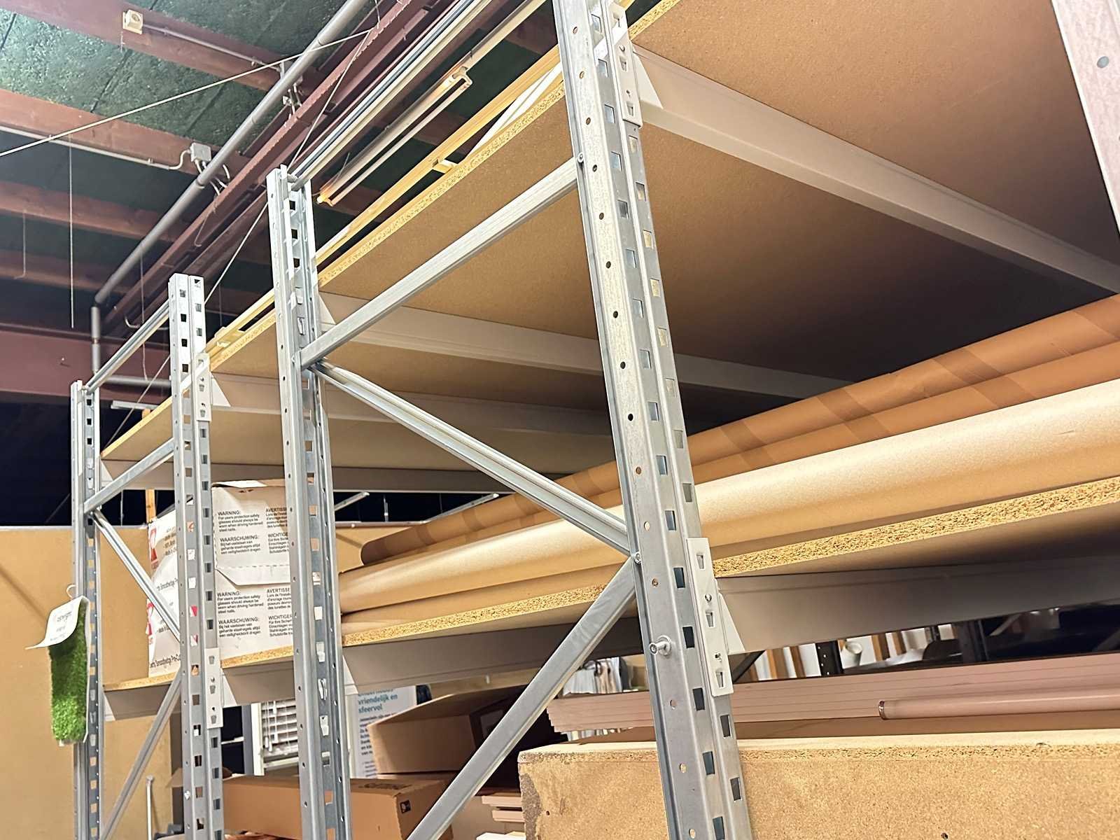 Exclusief inhoud. De staanders hebben een afmeting van 110x300 cm (BxH). De liggers hebben een lengte van 278 cm en het geheel is voorzien van legborden in diverse afmetingen. Aantal staanders: 9 Aantal liggers: 36