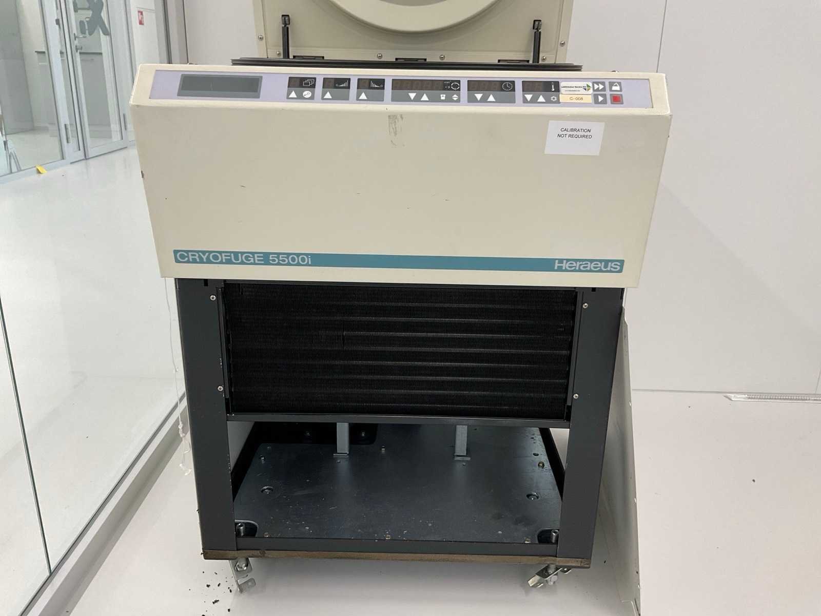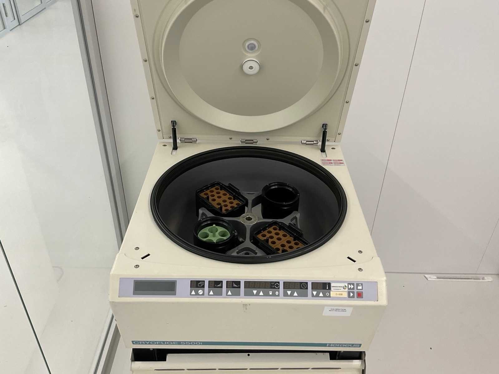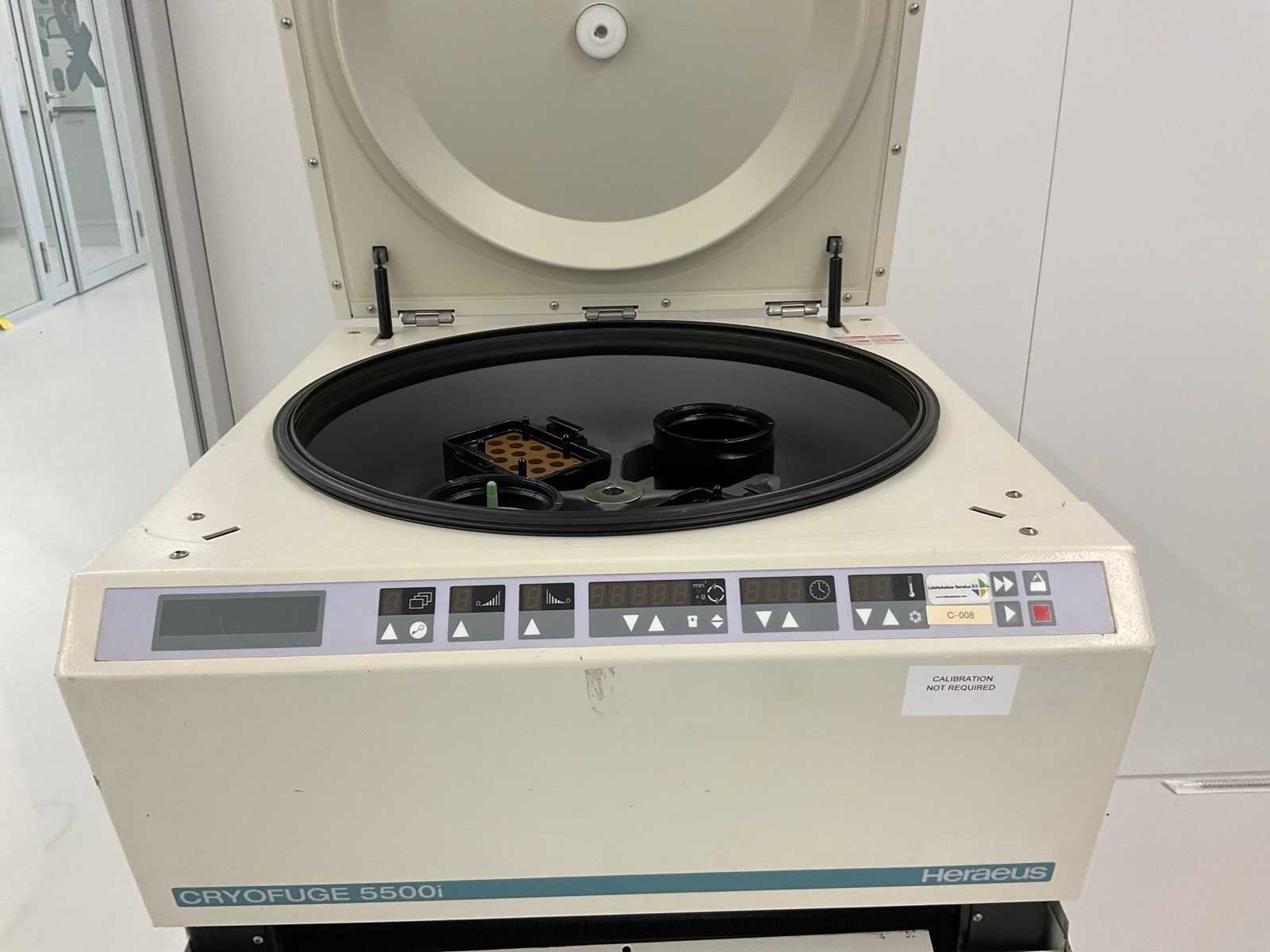 Incl. rotor en diverse toebehoren in krat Merk: Heraeus Type: Cryofuge 5500i Gekoeld: true Temperatuurbereik min.: +40°c Temperatuurbereik max.: -9°c Max. snelheid: 10000rpm Vloermodel: true Timer: true Digitale besturing: true Aansluiting: 230V Totale afmeting L: 700mm Totale afmeting Breedte: 740mm Totale afmeting Hoogte: 1000mm