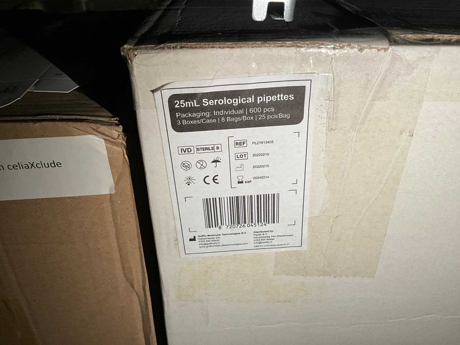 Waaronder swabsticks; pipetten; EHBO-koffers; tips; handschoenen; overalls; micro platen; verzendzakken; inclusief 20-secties legbordtelling