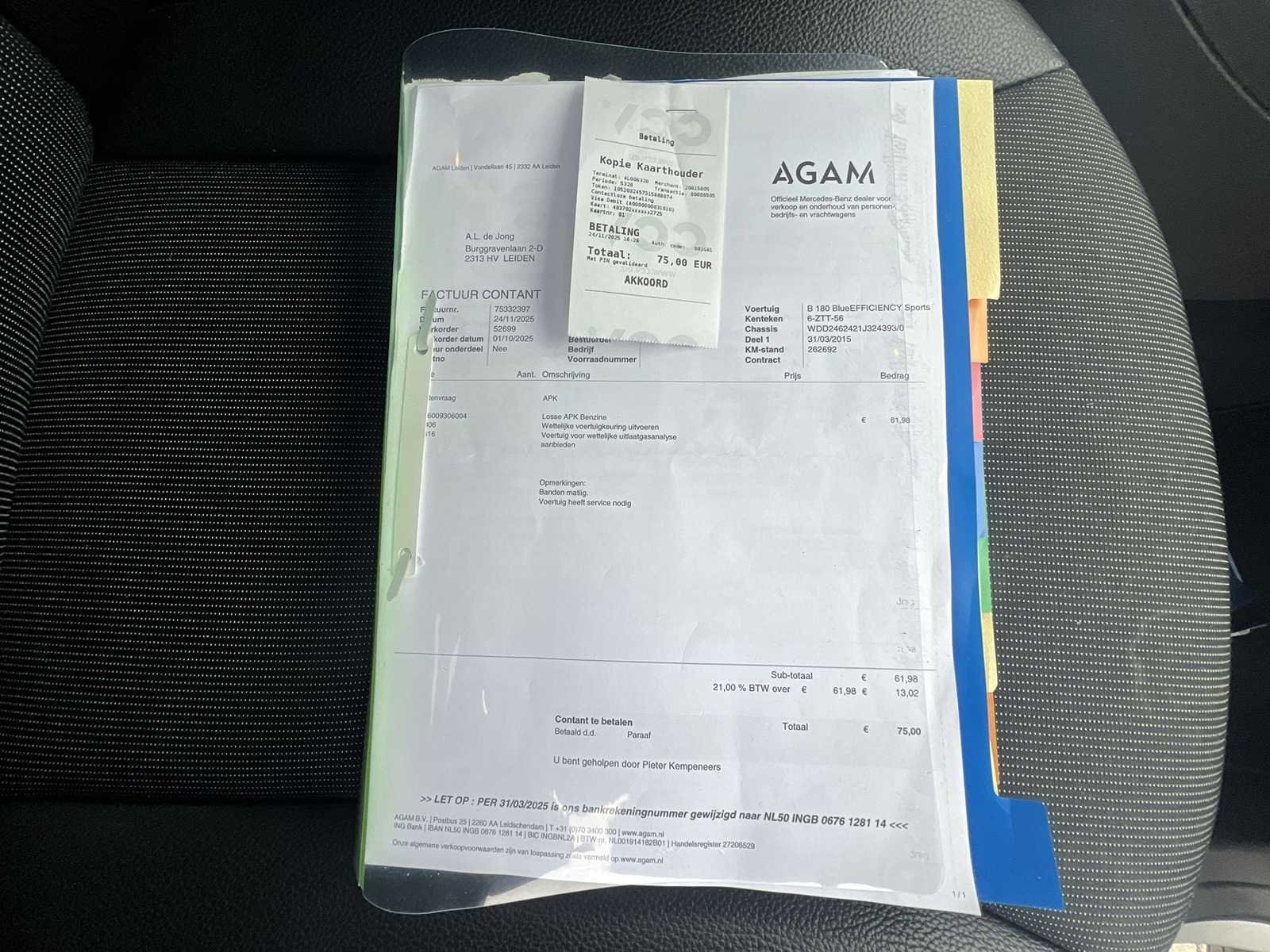 Park assist pakket Urban-pakket 25R : 17 inch tienspaaks lichtmetalen velgen, 225/50 505+818 : Audio 20 CD Multimedia systeem 440 : Cruisecontrol met variabele snelheidsbegrenzing SPEEDTRONIC 632 : LED High Performance koplampen U22 : Lendensteun viervoudig verstelbaar U62 : Lichtpakket U59 : Seat comfort package 280 : Stuurwiel in leder Kenteken: 6-ZTT-56 Merk: Mercedes-Benz Model: B-klasse Type: 180 Ambition Bouwjaar: 2015 Afgelezen kilometerstand: 262832km Cilinderinhoud: 1595cc Vermogen (kW): 90kW Brandstof: Benzine Datum eerste toelating: 2015-03-31 Datum eerste toelating (NL): 2015-03-31 APK vervaldatum: 2026-11-26 Vermogen (pk): 123hp Aandrijving: Start en rijdt Aantal zitplaatsen: 5 Kleur: grijs Transmissie: Automaat Emissieklasse: 6 Aantal deuren: 5 Aantal sleutels: 1 Ledig gewicht: 1325kg Bruto BPM (NL): 4503€ Aantal cilinders: 4 Carrosserie: stationwagen Start en rijdt: Start and drive startinformatie : Start en rijdt