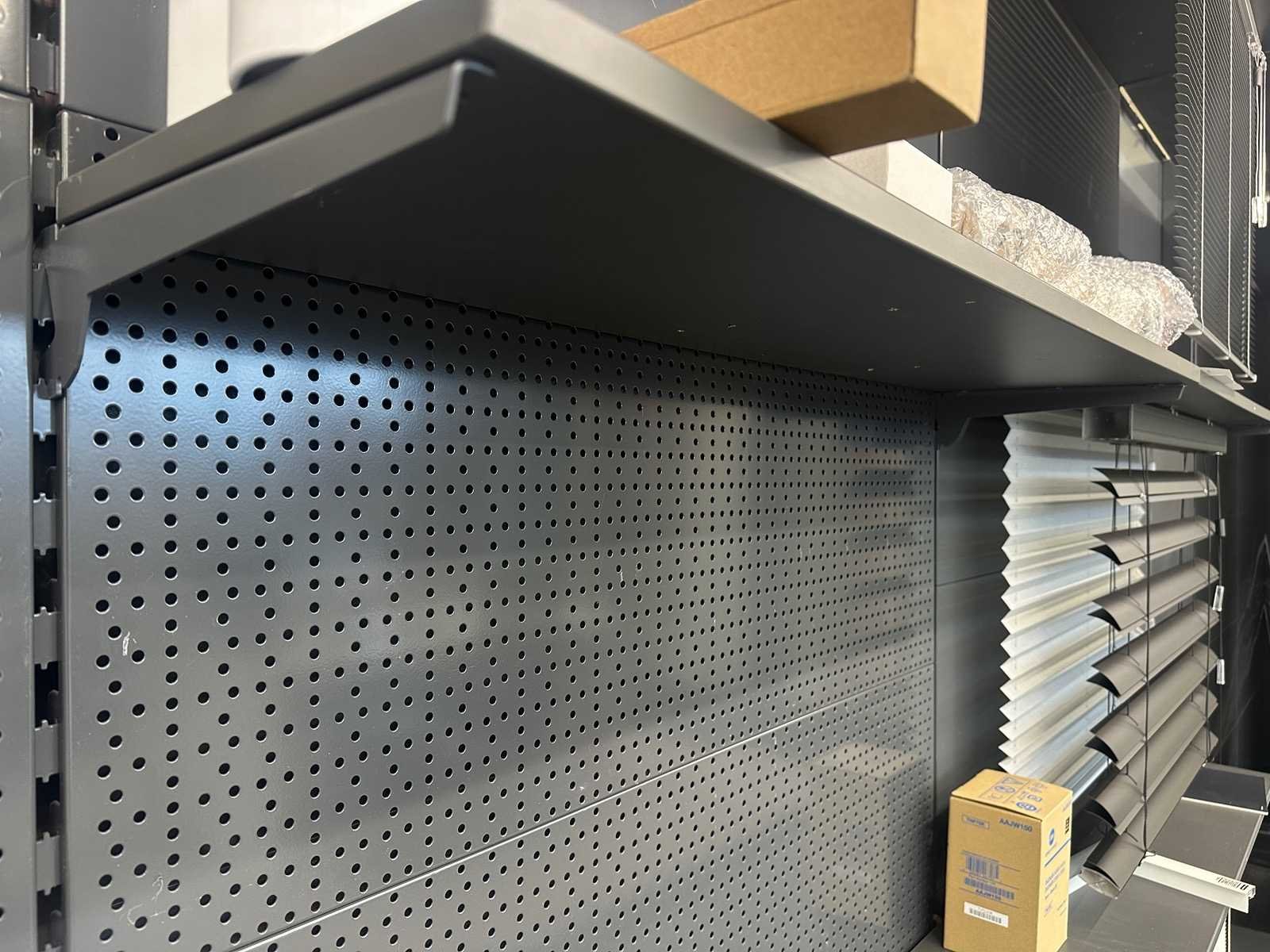 Deze stelling bestaat uit 12 delen van 1 meter en is voorzien van verlichting. Exclusief samples.