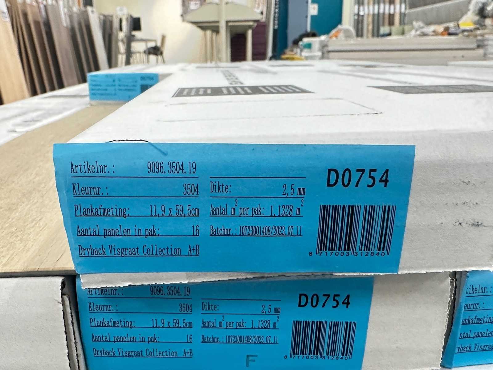 Deze partij bestaat uit 39 verpakkingen. Dikte van de vloer is 2,5 mm. Kleurnummer is 3504. Merk: Design vloer Kleur: 3504